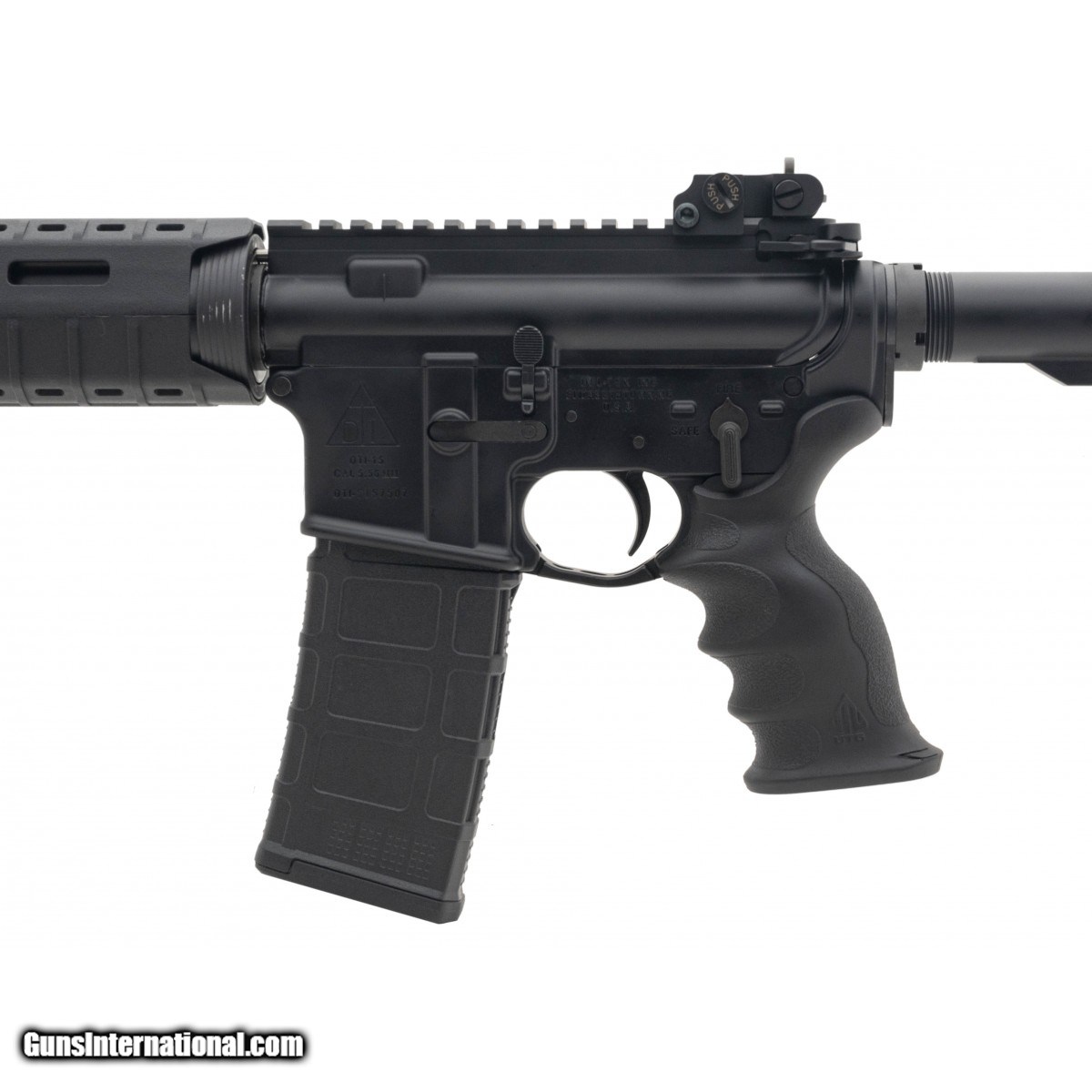Description: " SN:DTI-S157507. Semi-automatic AR-15 pattern rifle with a fixed front sight post, Magpul polymer fore end, UTG pistol grip, flip up irons, &, A2 grip with a fixed sling point. In excellent condition. SOLD |