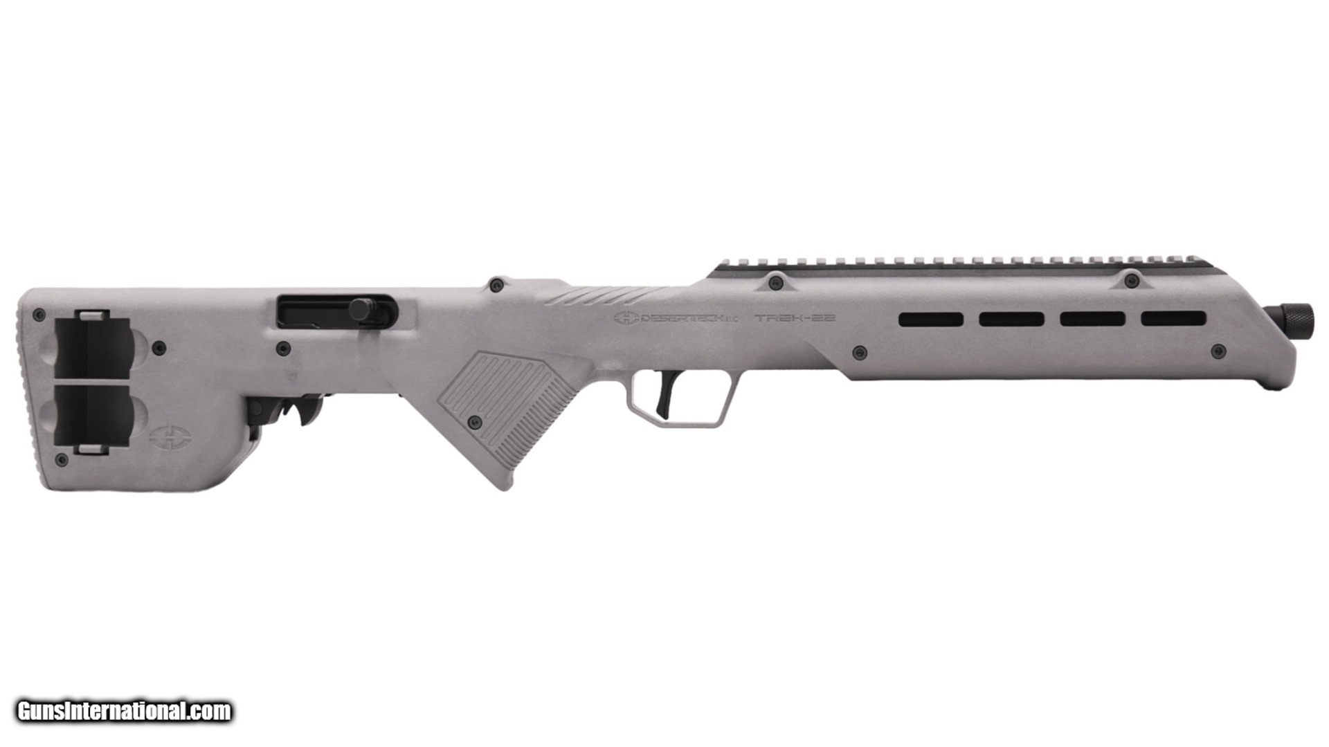 Description: Guns Listing ID: 468327 Introducing the TREK-22, a modern upgrade to an industry classic from Desert Tech. With an overall length of 26.5 inches, this compact rifle is perfect for small game hunters, young shooters, and anyone needing a reliable, portable firearm. It‚‚s the ultimate truck gun, designed for easy handling and transport. The TREK-22 features a free-floated barrel, a straight blade trigger, and a reduced trigger pull weight. These elements work together to provide a crisp, clean break, allowing for tighter groupings and improved precision. The TREK-22 includes integrated M-LOK slots, sling studs, and a MIL-STD-1913 picatinny rail, offering ample options for personalizing rifles. Add optics, grips, and other accessories to build the perfect setup. Plus, the chassis retains all factory controls and is compatible with standard 10/22 rotary magazines and large-capacity magazines. Constructed from impact-resistant Glass Reinforced Polymer, the TREK-22 offers lightweight strength and durability. This model features a gray color scheme and includes one 10-round magazine SOLD Manufacturer: DESERT TECH Model: TREK-22 Caliber Info: .22 LR Condition: new Barrels: 18.0" BARREL Action: BLOWBACK Finish: gray Weight: 4.8 LBS |