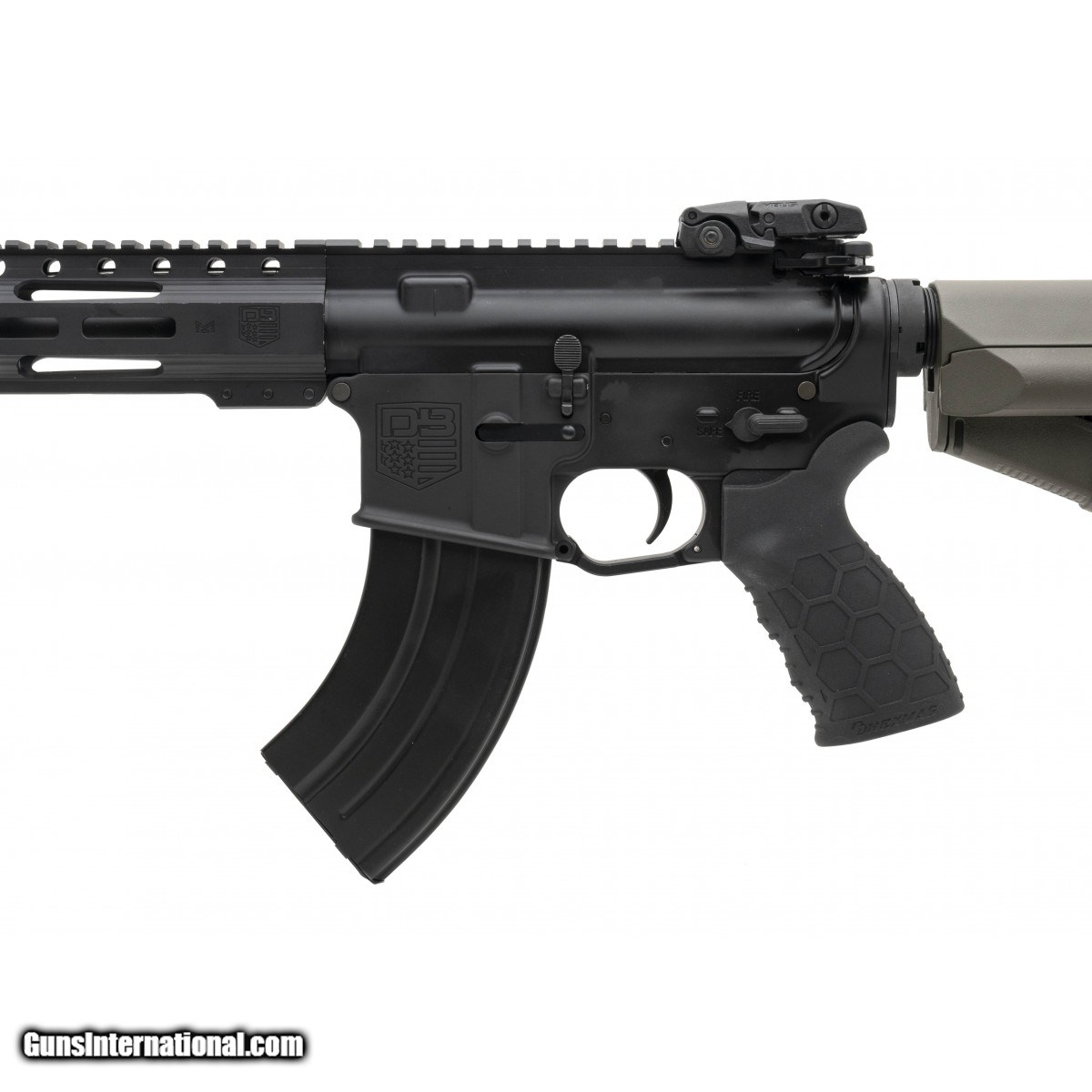 AR-patterned rifle chambered for 7.62x39, with a 16"" barrel and muzzle brake. Has Magpul MBUS sights, stock and vertical grip and Hexmag grip. Overall very good condition.