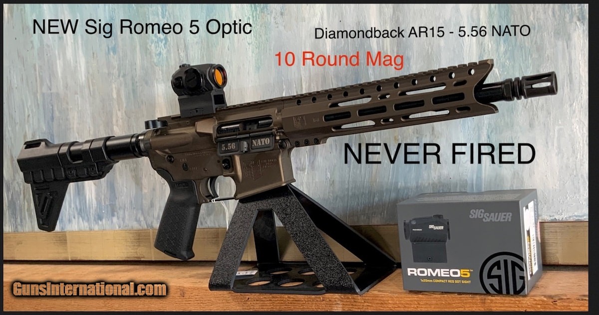 Description: Guns Listing ID: 543459 Upgraded and NEVER FIRED - 10 Round Mag for restricted states. NEW SIG Romeo 5 Optic and a pistol brace. Diamondback awesome Bronze finish…Get it while you can! SOLD Manufacturer: DIAMONDBACK Model: AR 15 pistol Caliber Info: .223 REM/5.56 NATO Condition: Used - Non-Certified Barrels: 10 BARREL Finish: BRONZE |