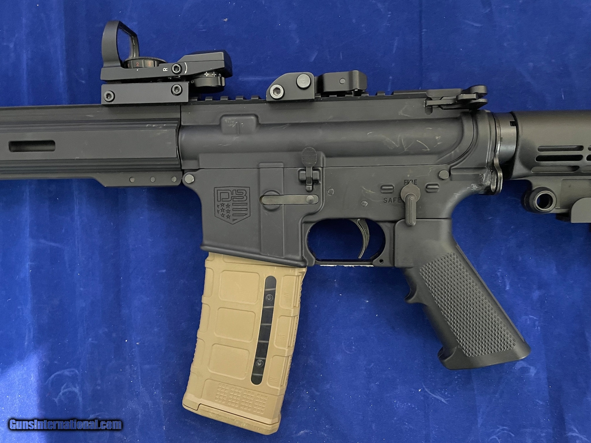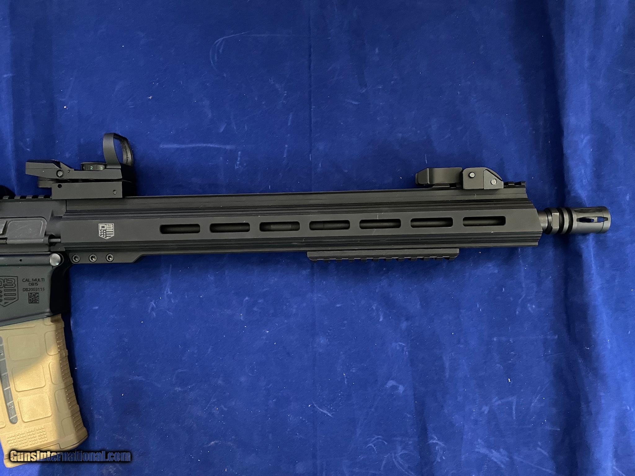 Description: Guns Listing ID: 482100 This listing is for a Diamondback Firearms, LLC - DB15, AR-15 Rifle. This rifle is pre-owned, in good condition. The receiver is stamped \"CAL. MULTI\" and the barrel is stamped \"5.56 NATO 1/8\". Also included is a vertical grip mount, 3 MLok Rails, a sling, and a red dot sight. The shoulder stock does not seem to be adjustable. Please review all photos for exact condition of this firearm before sending offers or purchasing. Thank you very much. SOLD Manufacturer: DIAMONDBACK Model: DB 15 Caliber Info: MULTI Condition: Used - Non-Certified Barrels: 16.5 BARREL Finish: BLACK |