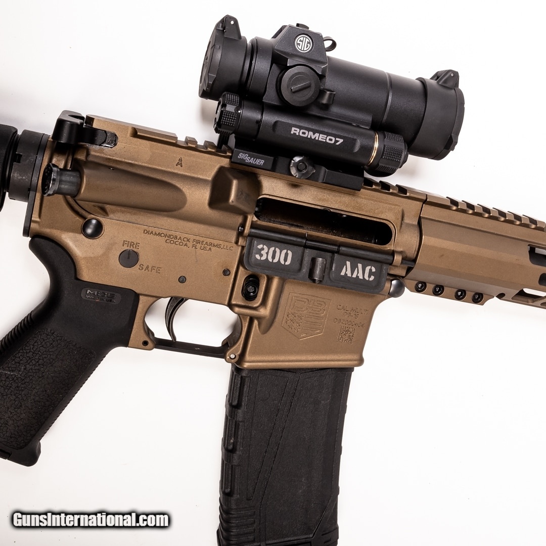 Description: Guns Listing ID: 488808 This Diamondback DB15 is a semi-automatic modern sporting rifle chambered in 300 AAC Blackout. This budget-friendly, general-purpose AR-15 is well-suited for hunting, property defense, range use, or any other task you throw its way. This DB15 carbine has a 16\" barrel with a muzzle brake and comes with one 30-round magazine. SOLD Manufacturer: DIAMONDBACK Model: DB-15 Caliber Info: .300 AAC BLACKOUT Condition: Used - Certified Barrels: 16 BARREL Finish: BRONZE |