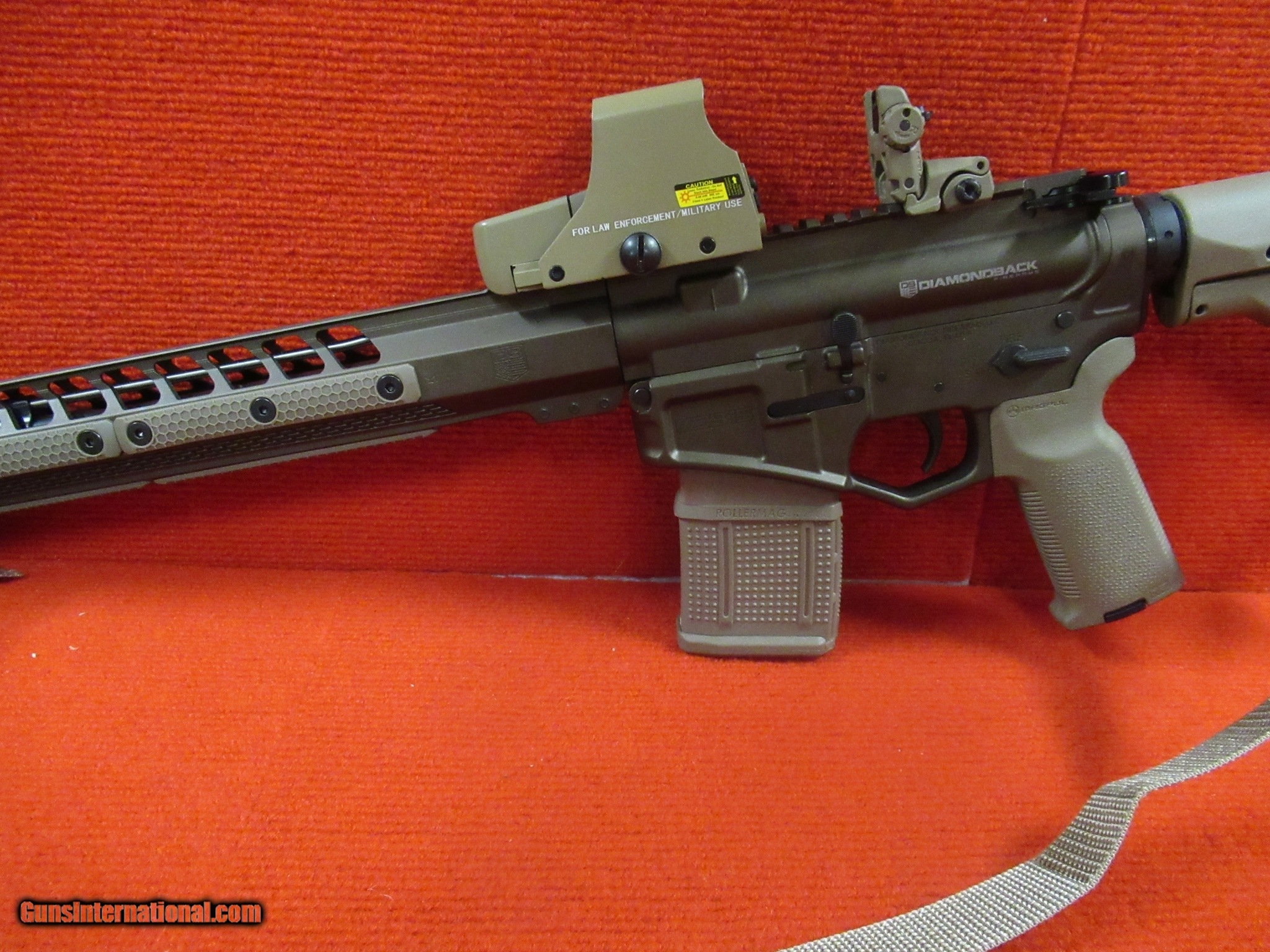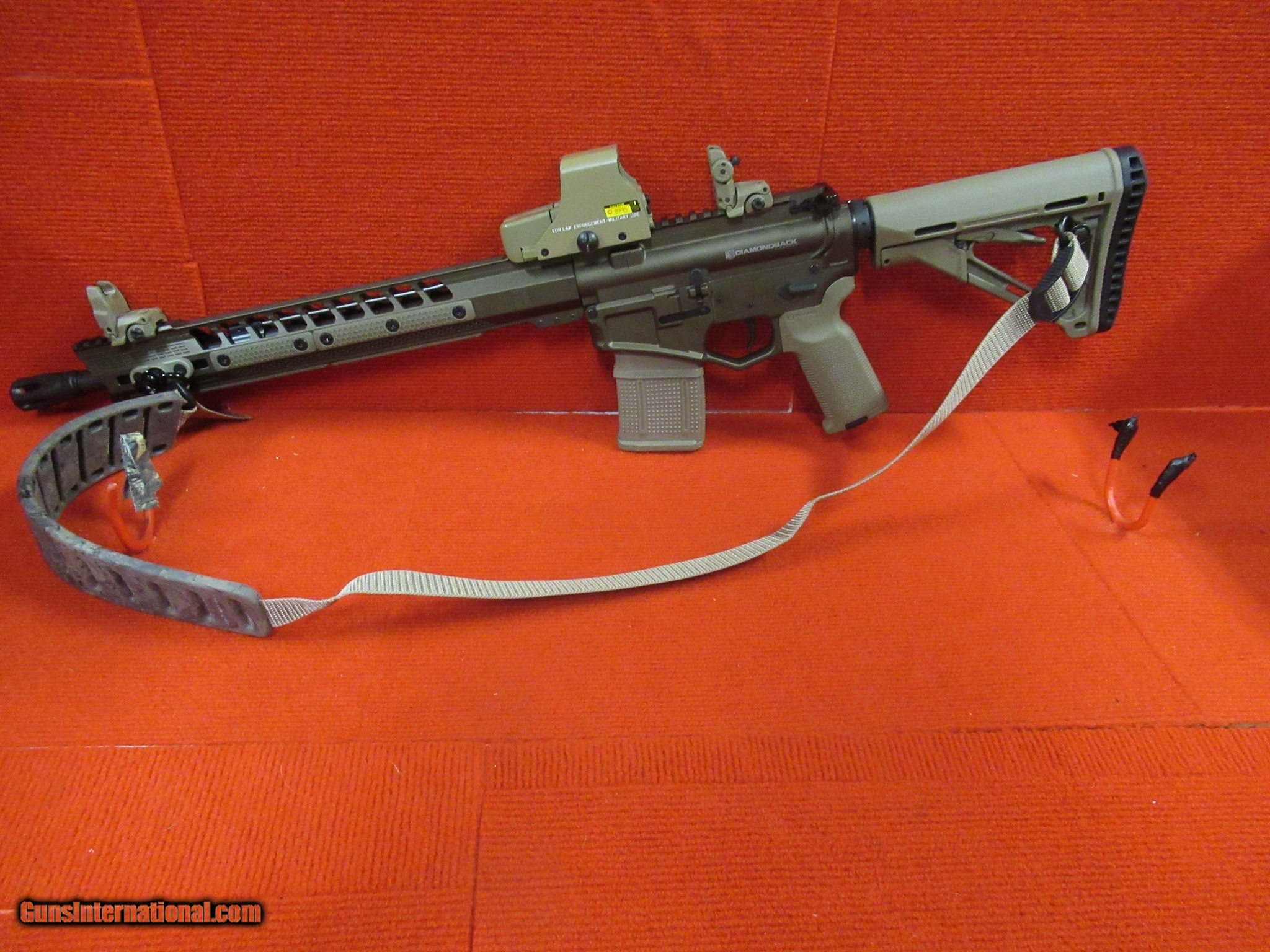 Description: Guns Listing ID: 536564 #433A Gun is in excellent condition. Gun has never been fired. Gun comes in its original box, comes with 8 clips total: 2-30 round, 2-20 round, 2-10 round, and 2-5 round magazines. Gun comes with a holographic sight, it comes with a 1-6x24 tactical scope, rear adjustable stock, and flip up sights. Gun also comes with a canvas tactical carrying case. Very nice for home protection or a great tactical weapon. ()) SOLD Manufacturer: DIAMONDBACK Model: DB-15 Caliber Info: 556 NATO Condition: Used - Non-Certified Barrels: 18 BARREL Finish: TAN |