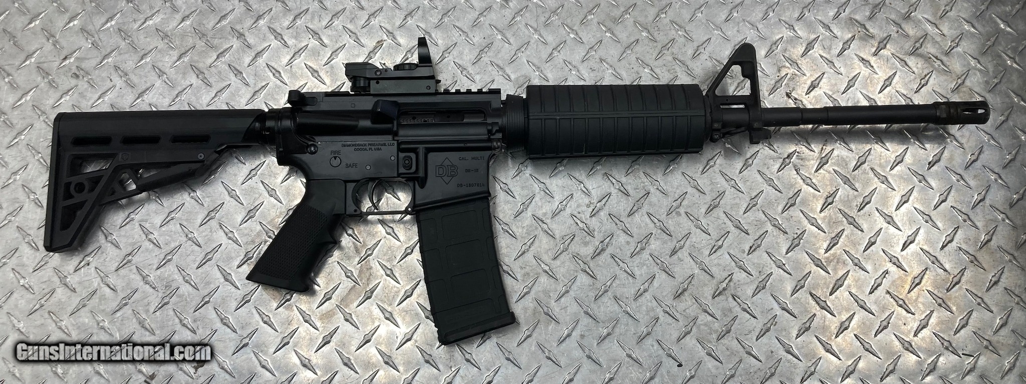 Description: Guns Listing ID: 708108 Comes as pictured with 1 mag, scope batteries are dead so unsure if it’s working. SOLD Manufacturer: DIAMONDBACK Model: DB-15 Caliber Info: 5.56 NATO Condition: Used - Non-Certified Barrels: 17 BARREL Finish: BLACK |