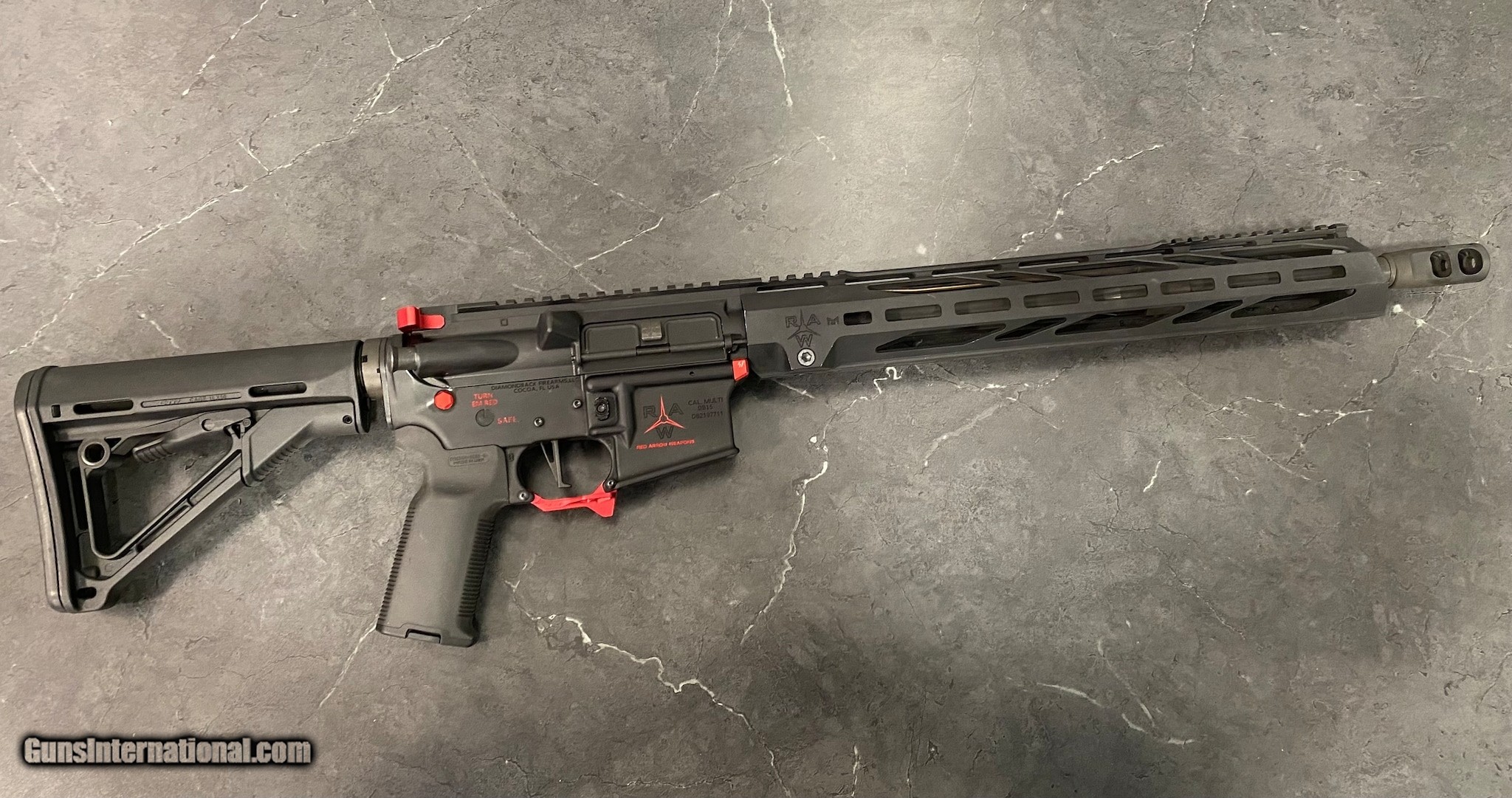 Description: Guns Listing ID: 677818 DIAMONDBACK FIREARMS DB15 - RED ARROW WEAPONS COMES WITH BOX, ONE 30RD MAG, TWO STRIKE INDUSTRY 6 SLOT ALUMINUM M-LOK RAIL SOLD Manufacturer: DIAMONDBACK Model: DB15 Caliber Info: 5.56X45MM NATO Condition: Used - Non-Certified Barrels: 1.6 BARREL Finish: BLACK AND RED |