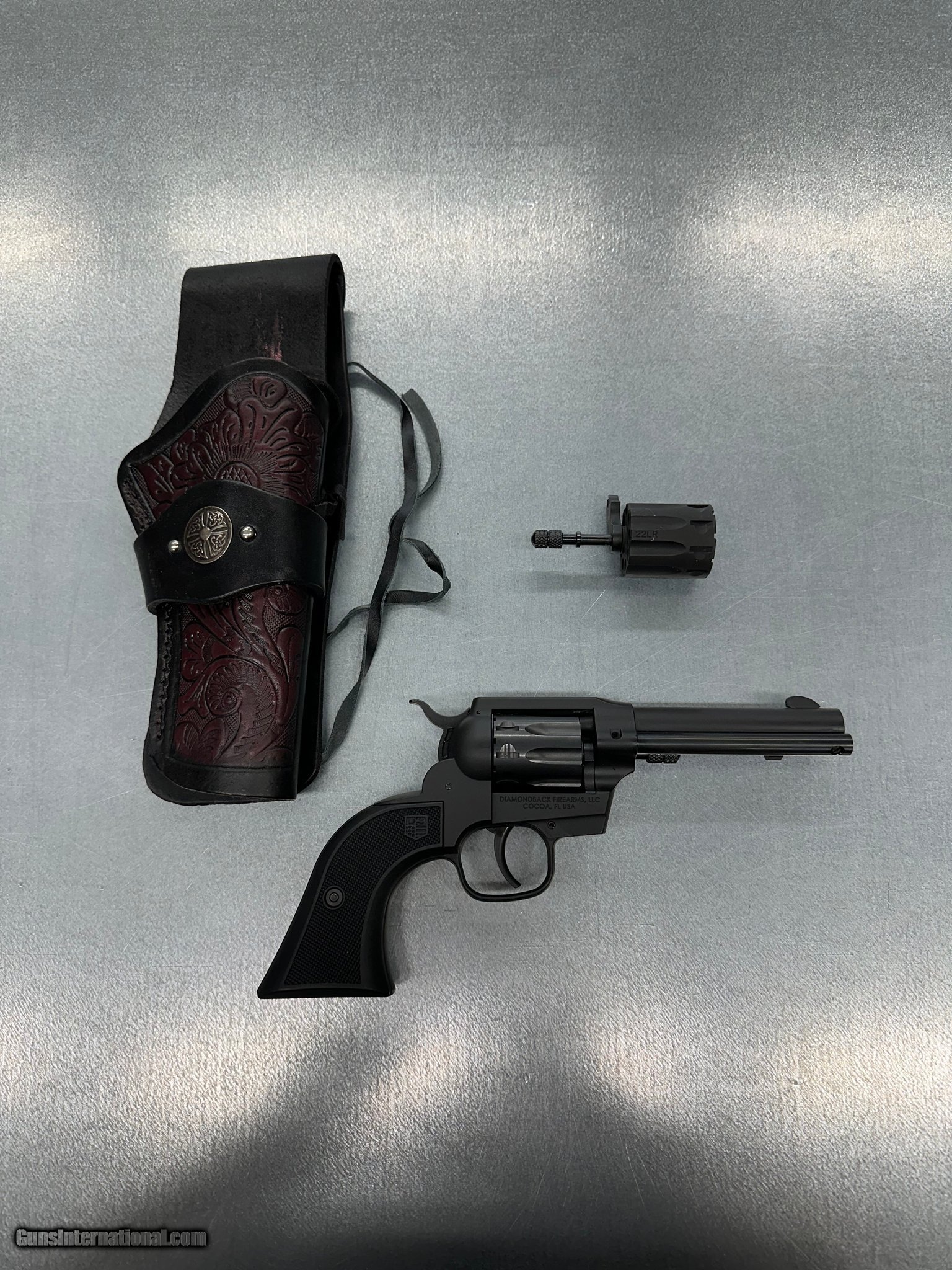 Description: Guns Listing ID: 1356066 Used Diamondback Sidekick, comes with 22 magnum cylinder inside firearm and additional .22 LR cylinder and leather holster. In good condition minor scuffs and scratches from use. SOLD Manufacturer: DIAMONDBACK Model: SIDEKICK Caliber Info: .22 CAL Condition: Used - Non-Certified Barrels: 4.5 BARREL Finish: BLUE |