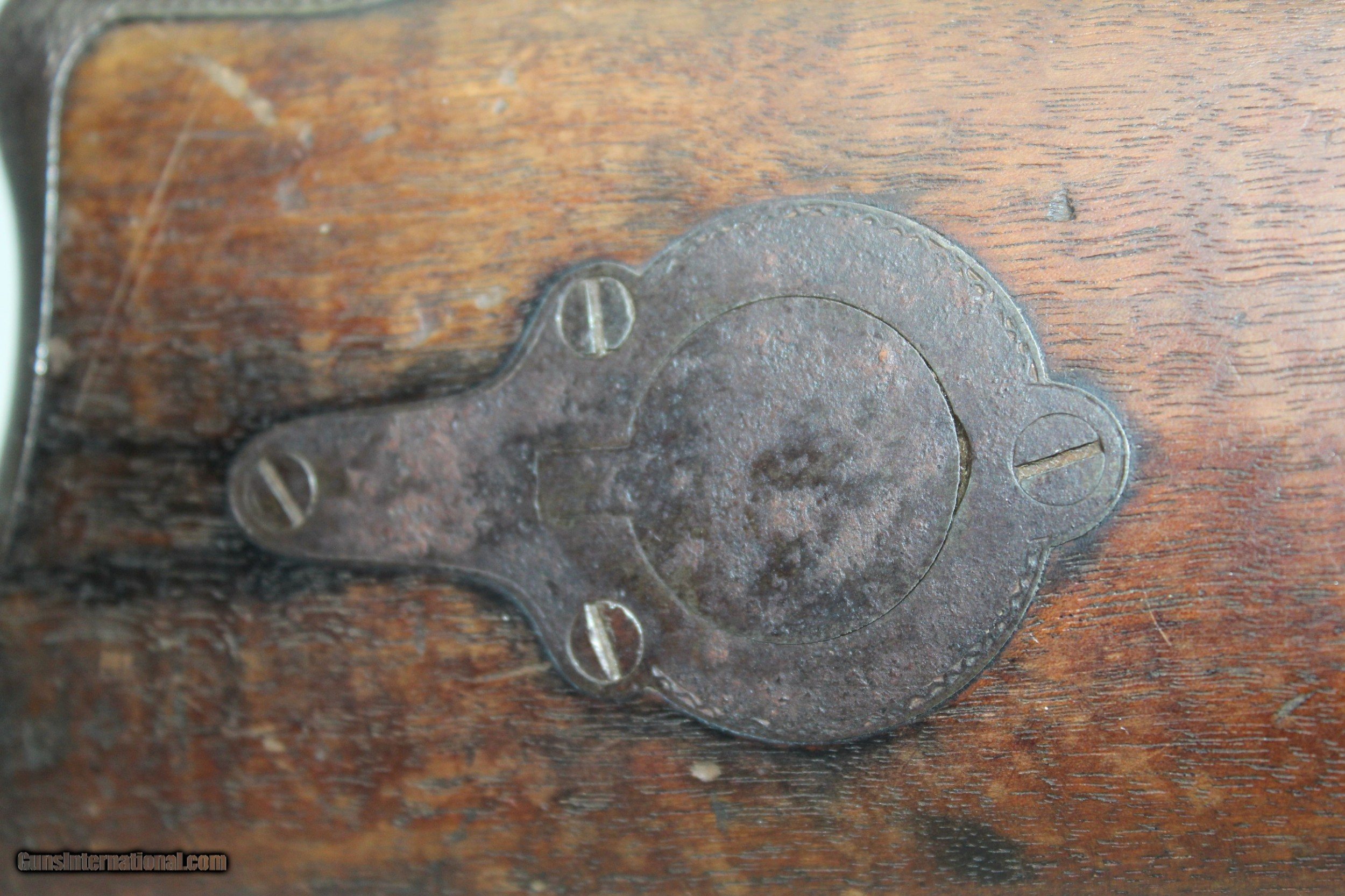 Description: NY Antique LL HEPBURN Percussion O/U DOUBLE RIFLE Early Hepburn of Remington & Marlin Design Fame! Here we present an Antique Lewis L. Hepburn Over/Under Percussion Double Rifle, manufactured circa the mid-19th Century. Lewis Hepburn had at least three careers after he finished an apprenticeship: one as a country gunmaker of muzzle-loading rifles (this is one such rifle), another as a senior employee of E. Remington & Sons, for whom he designed the breechloading, single-shot action that bears his name and third, a career as the principle designer for the Marlin Firearms Company. He is credited for the design of the Model 1888 Marlin. He made custom muzzle loading sporting rifles from 1858 through 1878. This Double Rifle features superposed barrels in .38 caliber. Each barrel has its own hammer, trigger, and ramrod for loading. The top of the barrel is marked “L.L.HEPBURN/COLTON, N.Y.” This is a very solidly built rifle that leaves no wonder how it could have weathered the sands of time to get here in such great shape. The overall condition is very good. The metal surfaces have an even plum patina. The markings are clear and legible. The stock is in great condition. The bores are in good shape. The action on this rifle is strong. A very nice example of Hepburn’s early work! Own the original! This is a legitimate antique and not a reproduction. Barrel is 28-3/8 inches. Caliber: .38 Percussion Overall condition as seen in photos. Very Fast. Very Safe. FREE SHIPPING WORLDWIDE. Delivered directly to your door by express mail! Guaranteed AUTHENTIC & Includes CERTIFICATE OF AUTHENTICITY. ancestryguns $2100 #7161 SOLD Antique: Yes |