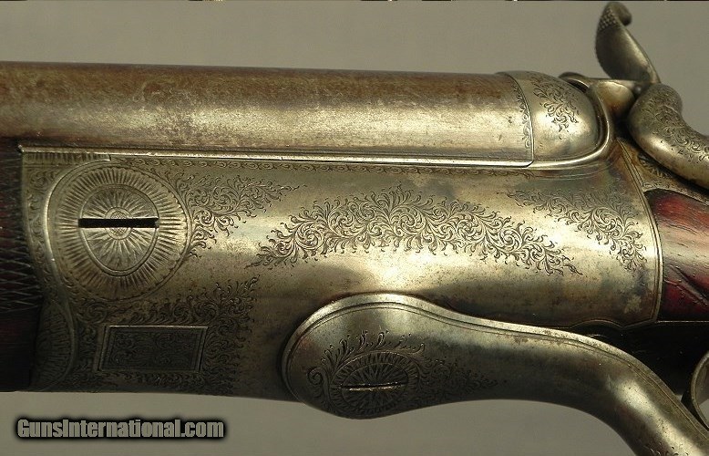 Description: #1216, P. Webley & Son, St. James's, London: A Best Grade Webley That is Totally Original With a Jones Action Underlever Back-Action Lock Non-Rebounding Hammer 450 3 1/4" Black Powder Express Double Rifle Completed by Webley Approximately in 1893, 28" Damascus Henry rifled barrels, Dolls head rib extension, Full length rib with 1 standing & 1 folding rear sights that are platinum or silver lined, Percussion style fences, Stalking hammer safeties to the rear of the hammers, Dolphin hammers, Bushed strikers, Full length trigger guard tang to a steel engraved grip cap, Extremely solid and sound wood with nice color & contrast, Shadowline cheekpiece, Sling eyes, Lever release forend tiedown, 14 1/2" LOP over a steel buttplate, 8 lbs. 12 oz., 70% coverage of classic fine scroll engraving, The original & honest barrel brown remains at 55-60% with near perfect striking, This piece has 30-35% original case colors remaining, The butt & forend are as solid as they were approximately 127 years ago, The original stock finish is at 83-85% and never refinished, The original checkering remains at 90%, The bores remain almost like they did in 1893 and are absolutely excellent plus and totally free of any pits the entire way. This piece is accurate, and all the loading information is available from a very astute rifleman. I have had my fair share of classic pre-turn of the century double guns and rifles and this piece represents a lot of years with very good custodians as it was well kept. As my friend Mr. Wal Winfer would say, "We are but temporary custodians of all things on this planet. Treat this old piece gently. Load and shoot it with care. But, above all, preserve its integrity for the future enjoyment of the next temporary custodian. SOLD Antique: Yes |