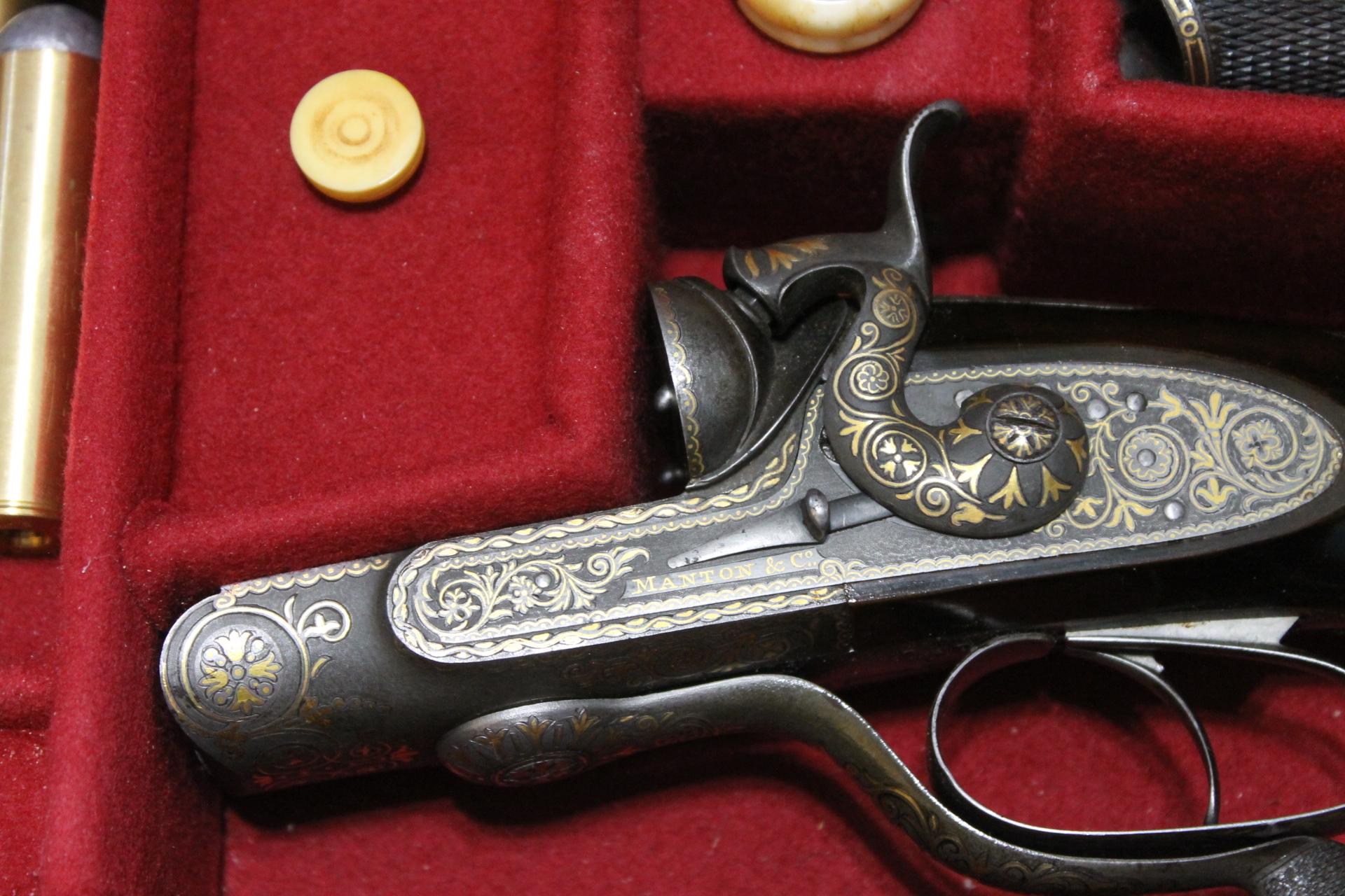 Manton 16 Bore Gold inlayed double Howdah rifle