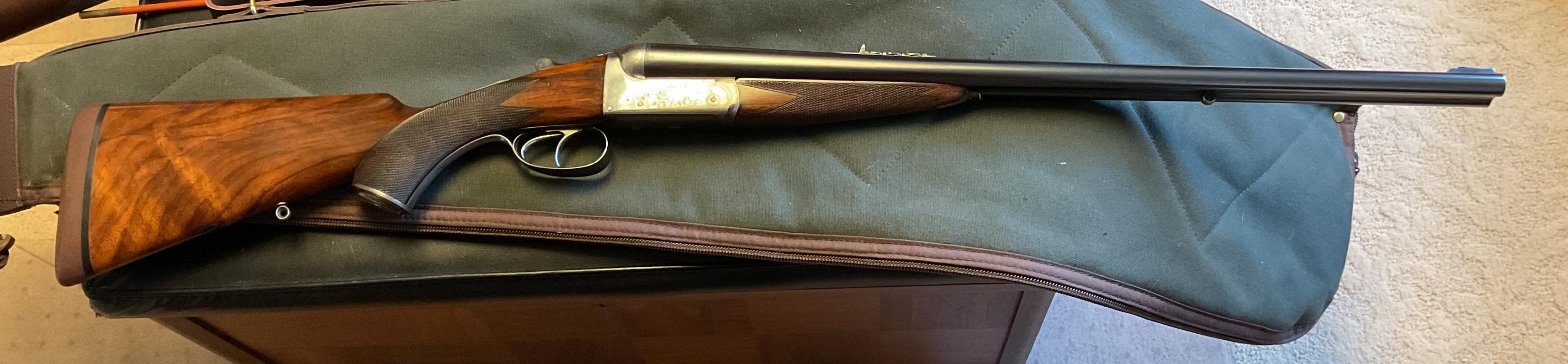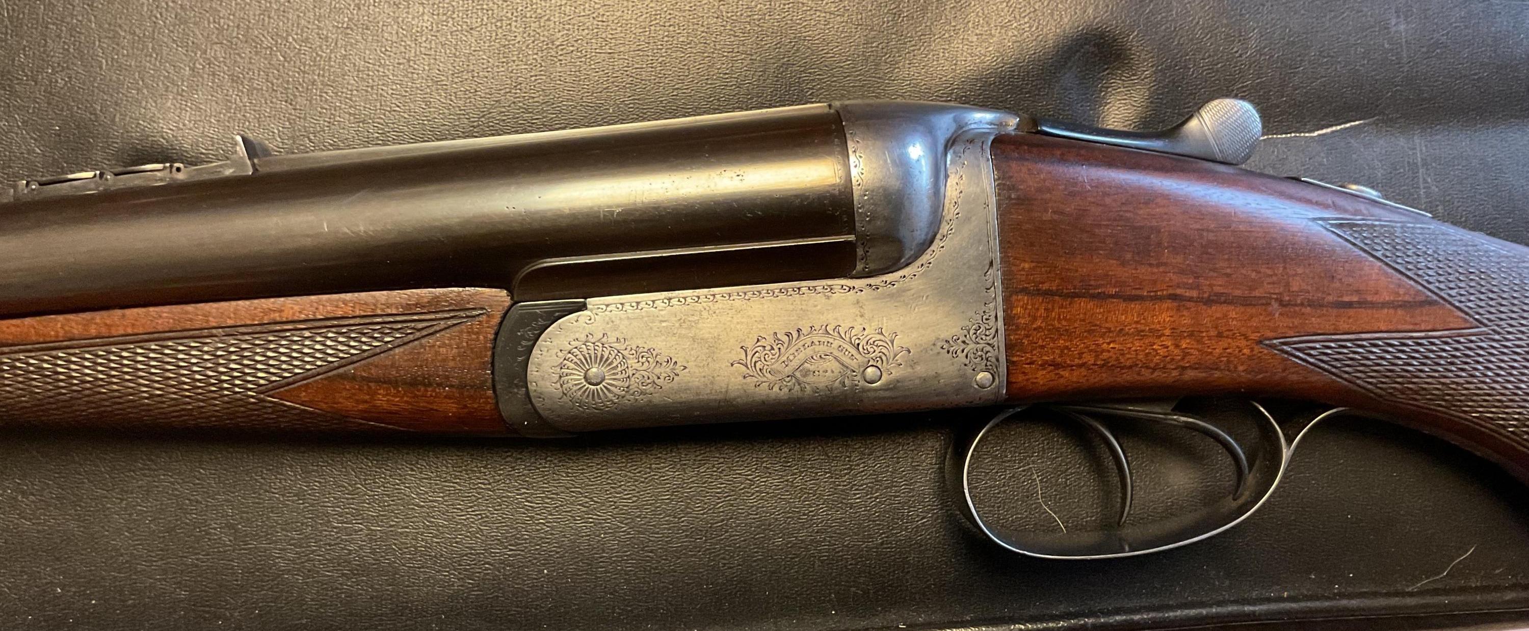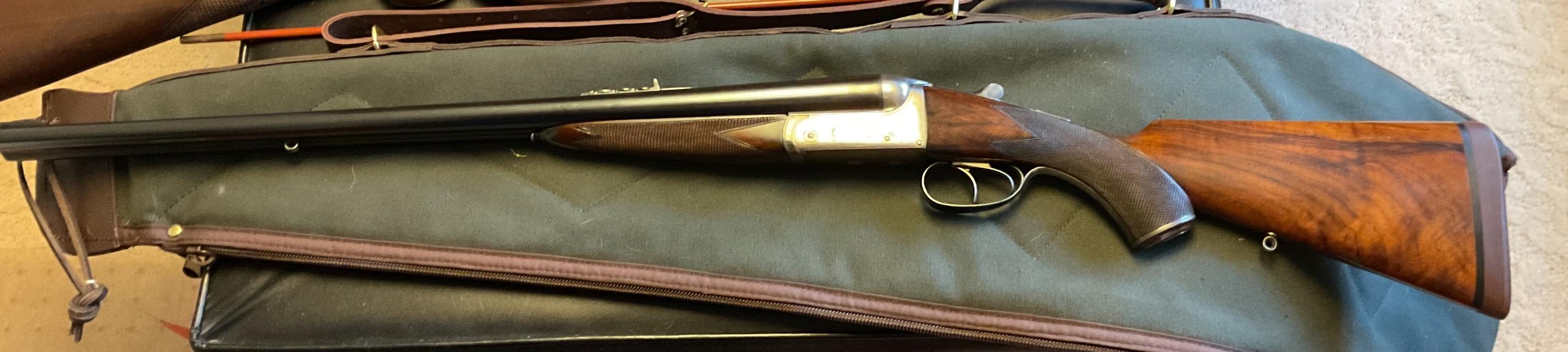 Boswell double barrel sys rifle in .450#2, extractors, disc set strikers, made in England, bore excellent, rifle 99% condition. Game scene engraved on sides and bottom. I would include some brass and some loaded ammo.