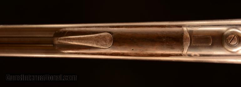 Description: With hot barrels this gun shoots inside 3"! Barrels marked "Henry\'s Rifling A&T." Some light pitting in places between the rifling but actually a good bore. Comes with H4D die Set! Notice the wonderful "Selous" repair in the wrist! SOLD Manufacturer: E. M. Reilly .577-500 #2 with dies - Serial Number: 27405 Ejectors: No Barrels: 28 Barrel Type: Steel Action: Jones underlever back action lock Gauge Info: Caliber LOP: 14 1/4 Weight: 8 lbs. 11 oz. Choke Left: na Choke Right: na Proof:Black: .577-500 #2 Minimum Wall Thickness Left: na Minimum Wall Thickness Right: na |