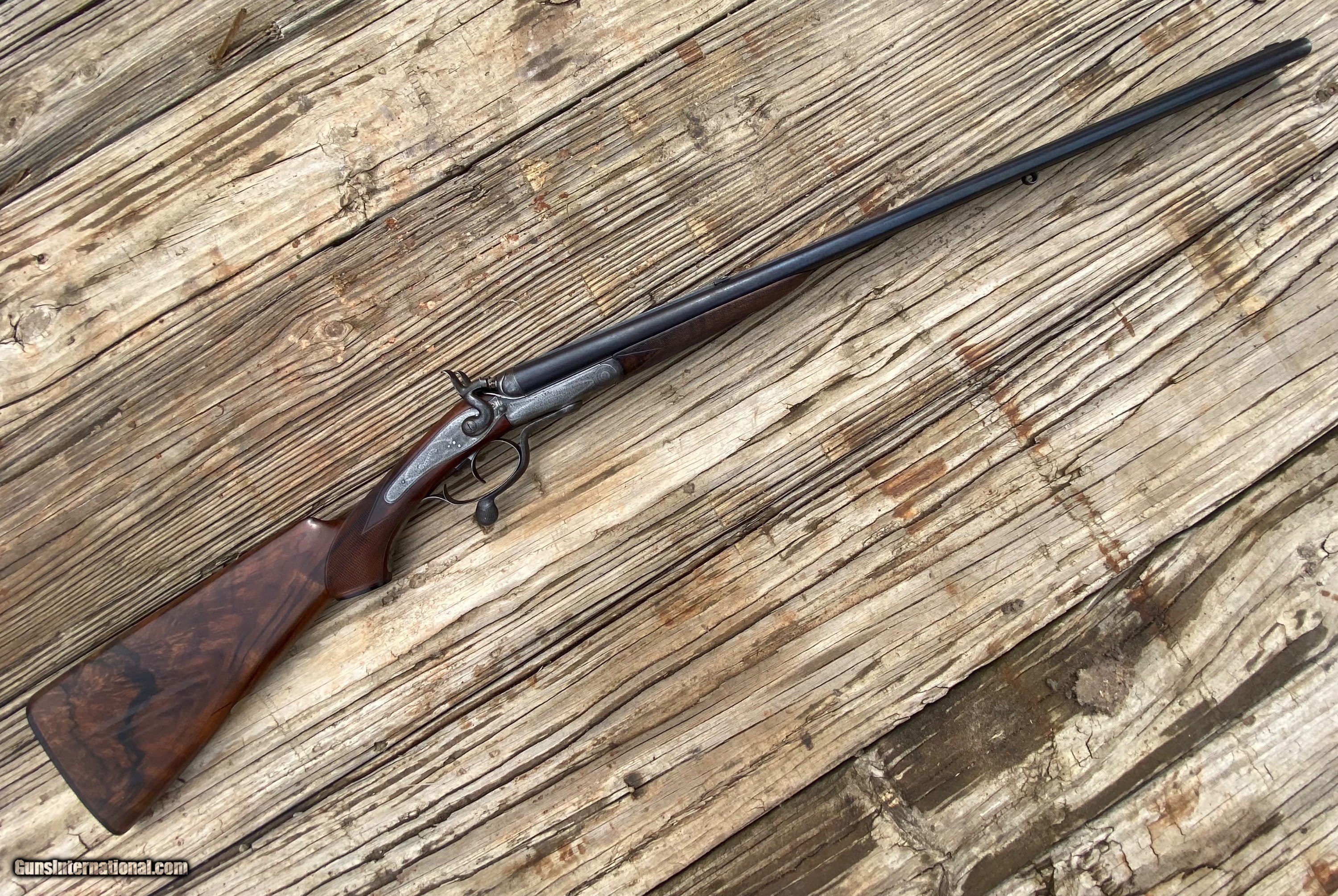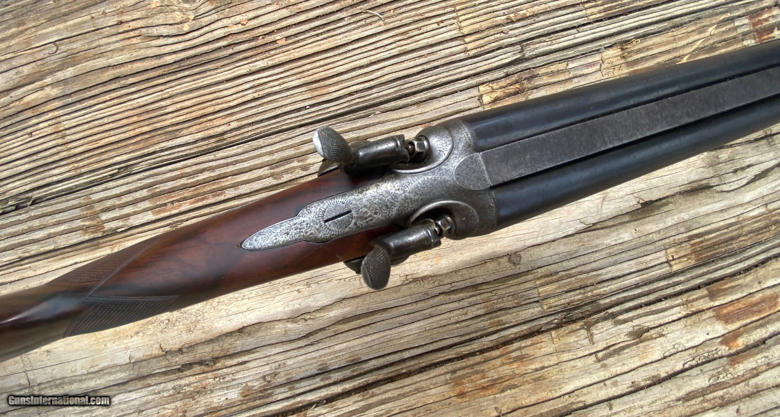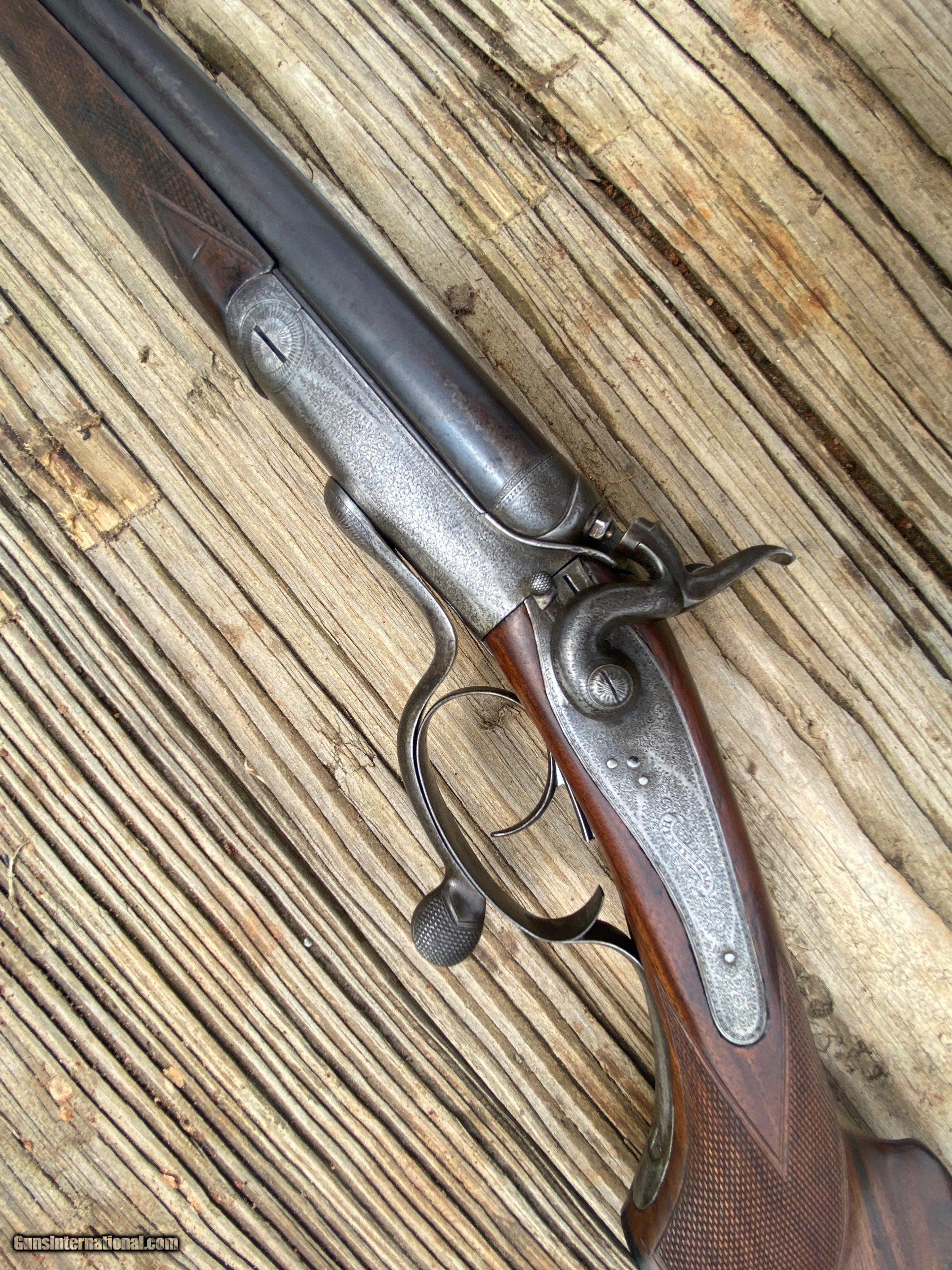 Description: Here is the opportunity at a Henry Atkin .450bpe double rifle project. The gun suffered a fall at one point, and unfortunately the craftsman whom did the repairs didn't serve the guns original quality. The buttstock is unoriginal, and while pretty was not headed up well. The rear trigger is broken, and the trigger guard was repaired around the hole for its screw via brazing. The bores are pitted; the right slightly worse than the left. I have had BPE guns through my hands in similar condition that still shot well enough. The barrels are 28" long, with tight ribs. Gun locks up tight. rifle weighs 7lbs 13oz. the forend remains in original condition. PLEASE LOOK OVER PHOTOS CLOSELY! $1500 shipped in continental US SOLD |