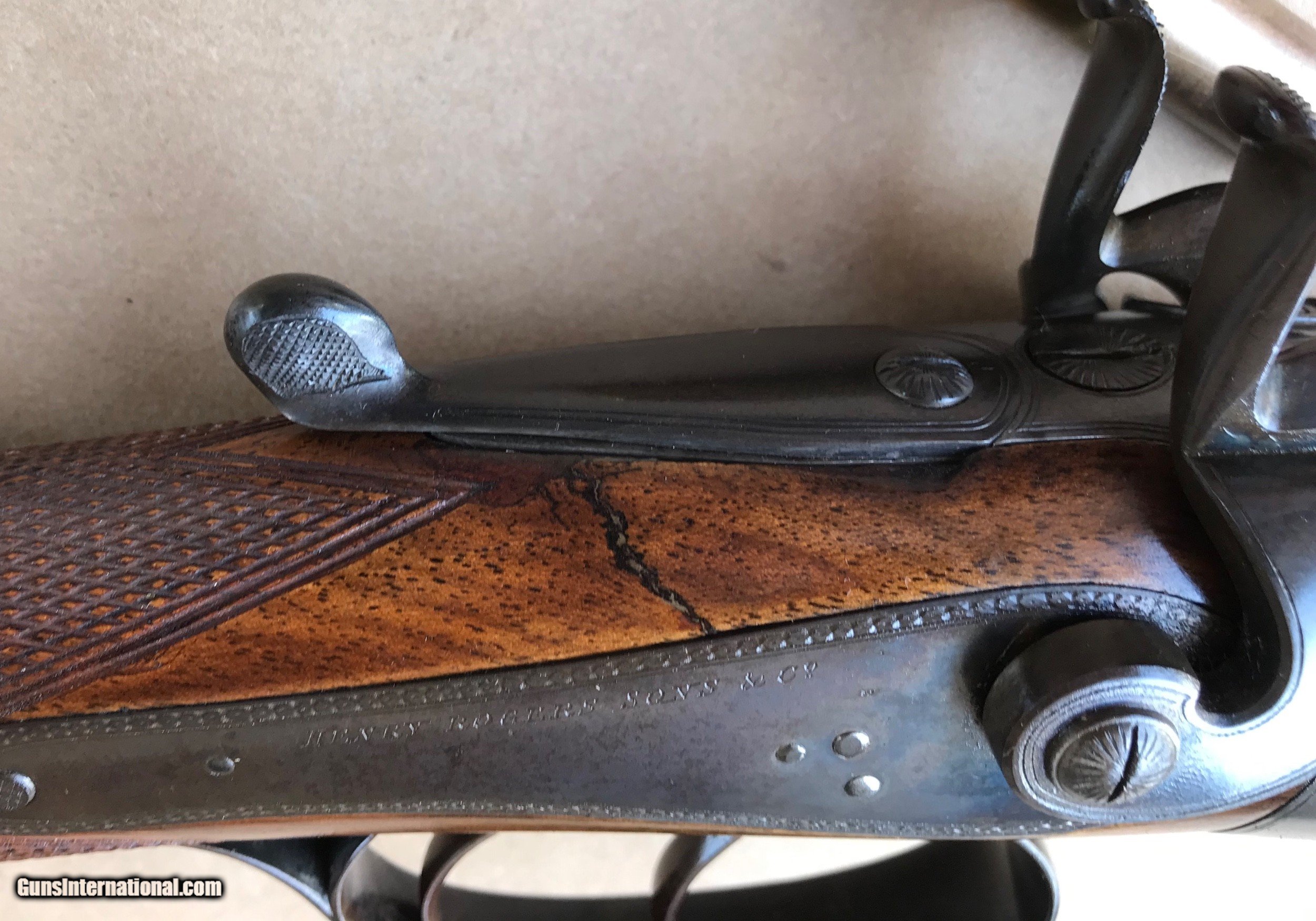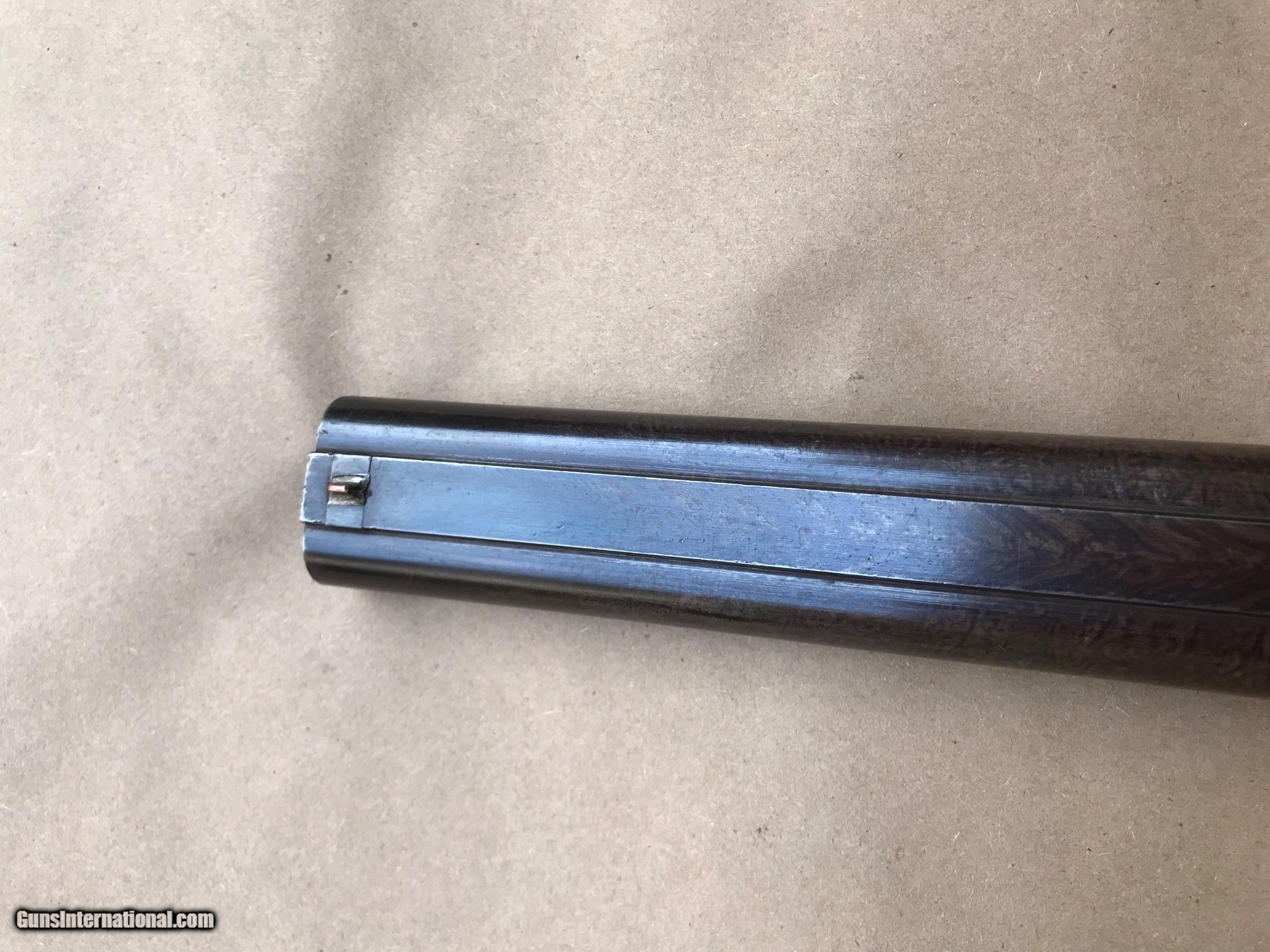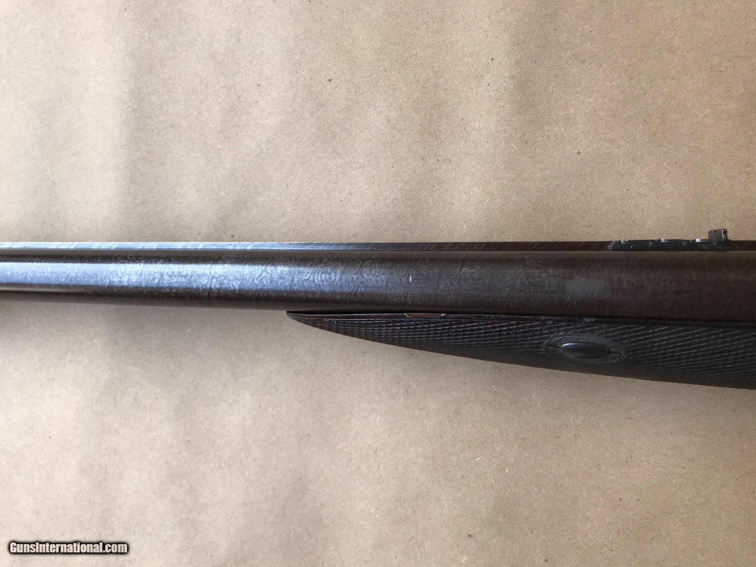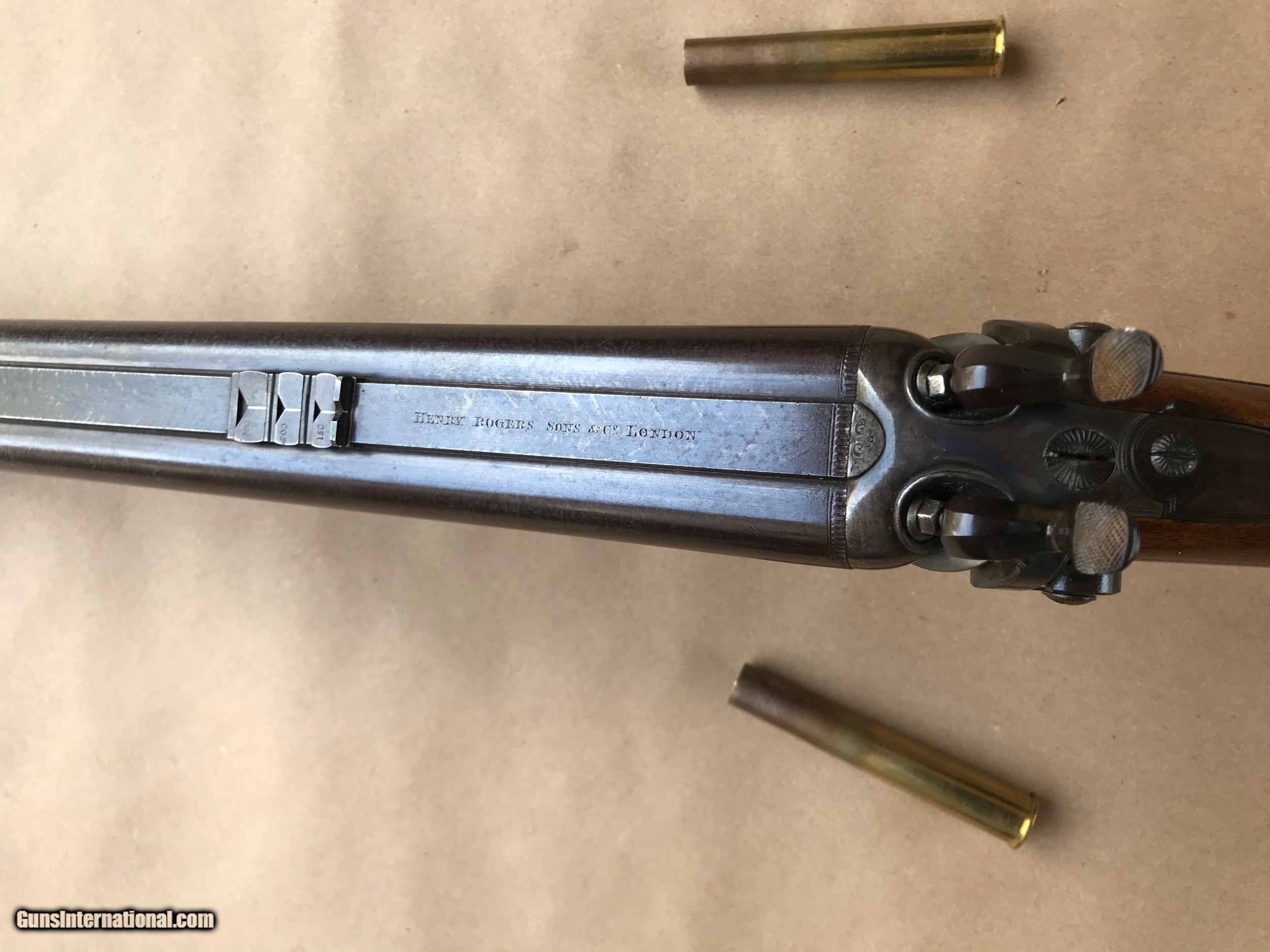 Description: Looking for a nice entry level double rifle for collecting , hunting or competition shooting but don't want to spend a lot of money? This is a plain rifle in that it doesn't have a lot of fine English scroll engraving , fancy grade wood but it is a solid gun with excellent bores and a recent refinish on the butt stock and checkering . The barrels are Damascus twist with a browned finish and has a triple leaf rear sight marked with yardages. The action is a top lever break open design and the action closes tight. The action and locks finish is a browned aged finish having been touched up over the years with probably cold blue . There is a repair of a crack on the top right side of the tang that is restricted to just the top and does not go further in the stock and should not be a problem . This type of damage is usually done from the gun falling over from a standing position and hitting the floor . The straight wrist design stock is perfect for double triggers , fire the front trigger and just slide your hand back for easy access to the rear trigger. Gun comes with a box of unfired brass. SOLD Curio/Relic: Yes Manufacturer: English Barrel Length: 23 3/4” Caliber Info: .450 B.P.E. Condition: Good Metal Condition: Good Wood Condition: Good Bore Condition: Excellant Barrel Type: Damascus Action: Top lever break open Stock Drop: 2” Butt Pad: Steel LOP: 14” Weight: 7 lb. 14 oz. Sights: Multi leaf Extras: Box of un-fired brass Proof:Black: Yes |