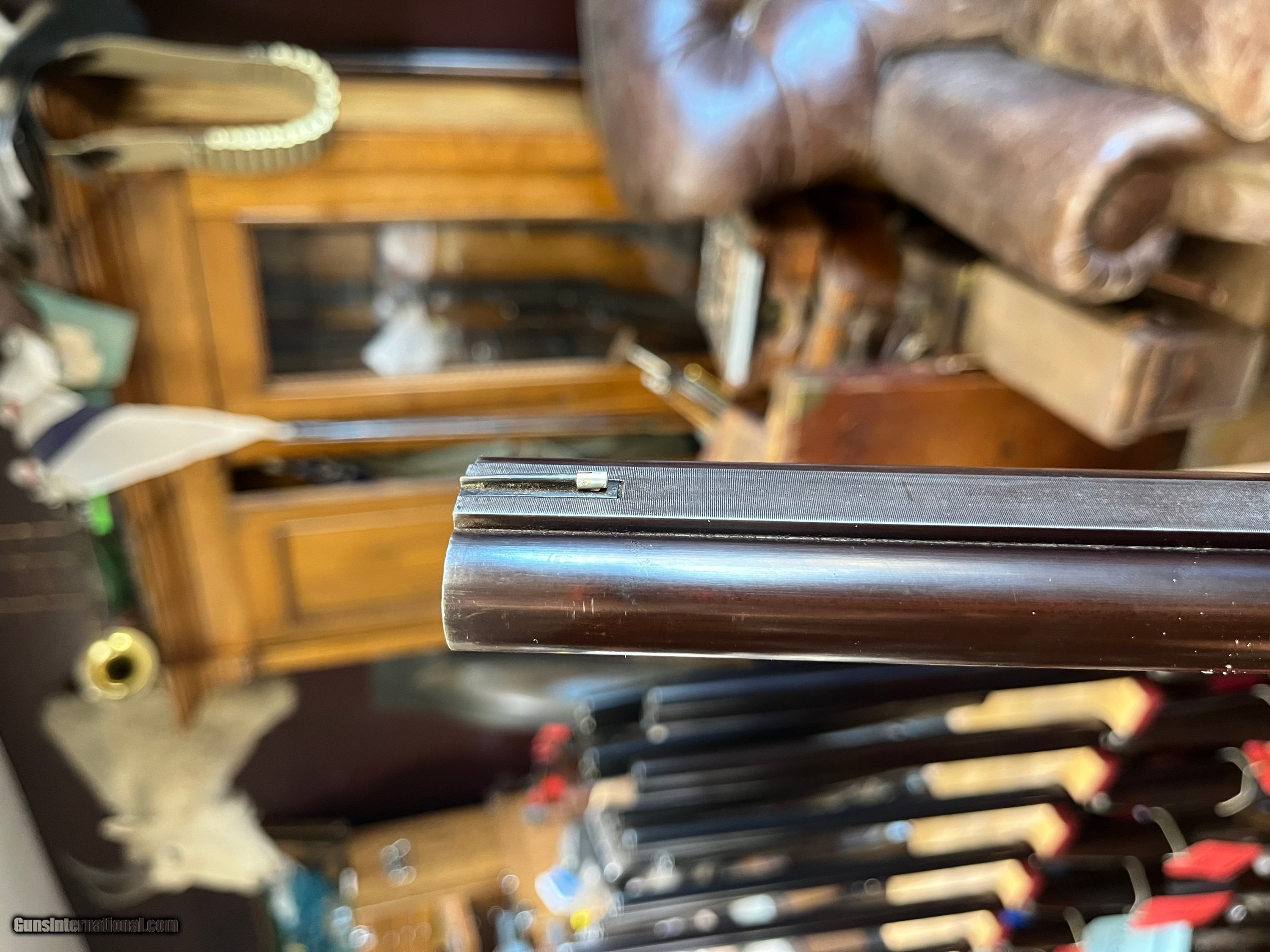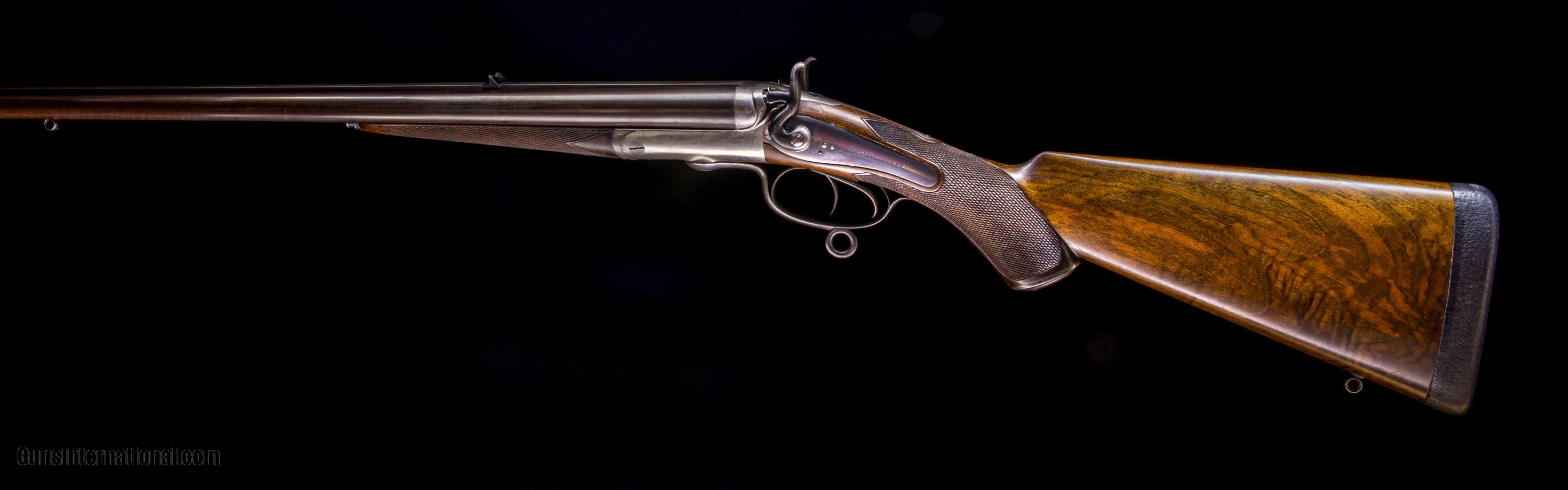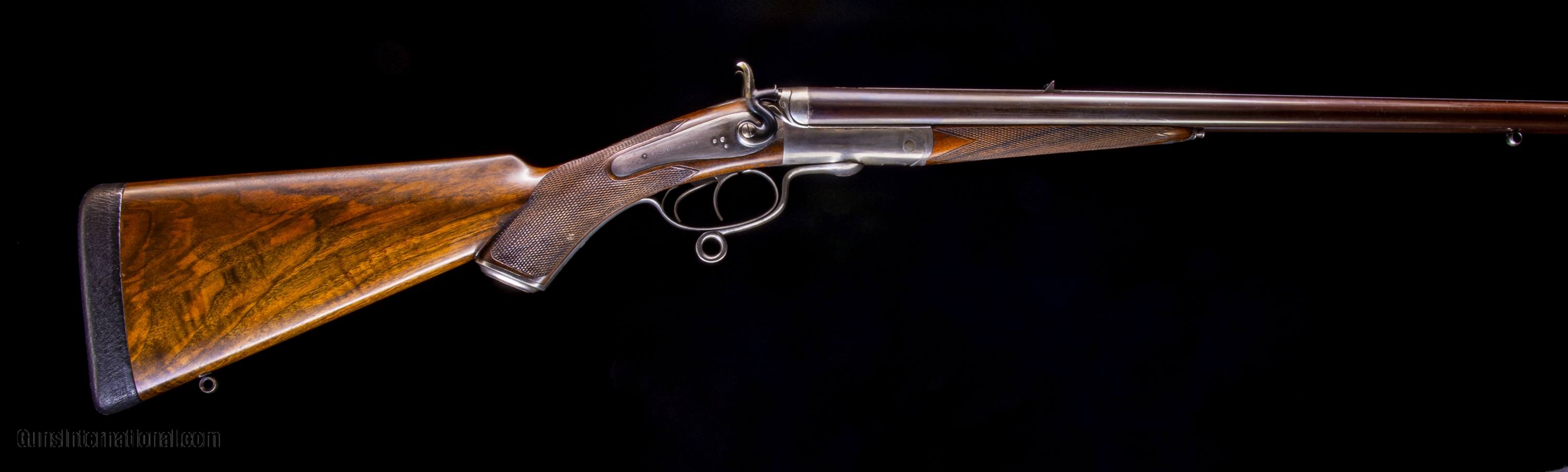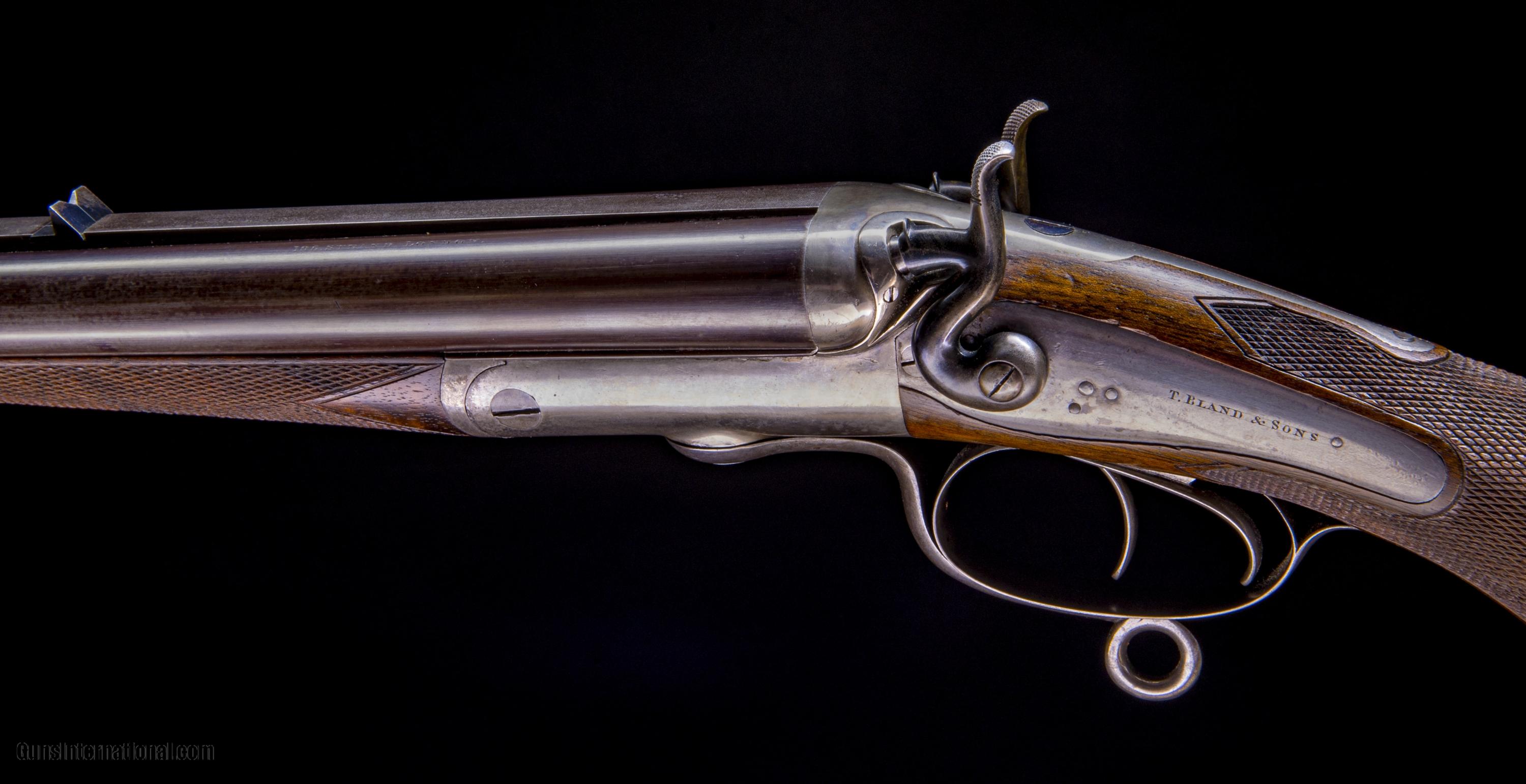 Description: Hammerguns - Very nice and bright and sharp Henry rifling on this fine double rifle *** Note: To see this gun with high resolution photos and a zoom-in feature, go to the vintagedoubles main site and search for the gun ID: 5683 or browse the main site to see our full gun collection. SOLD Manufacturer: Thomas Bland & Sons ~ 500 3" BPE with nice bores Model: None Serial Number: 9957 Caliber Info: 500 x 3" Black Powder Exp Ejectors: No Barrels: 28 Barrel Type: Steel Action: Underlever back action locks Gauge Info: Caliber Stock Comb: NA LOP: 14 3/16" with l Weight: 9 lbs 2 ozs Choke Left: NA Proof:Black: 500 x 3 Minimum Wall Thickness Left: NA |