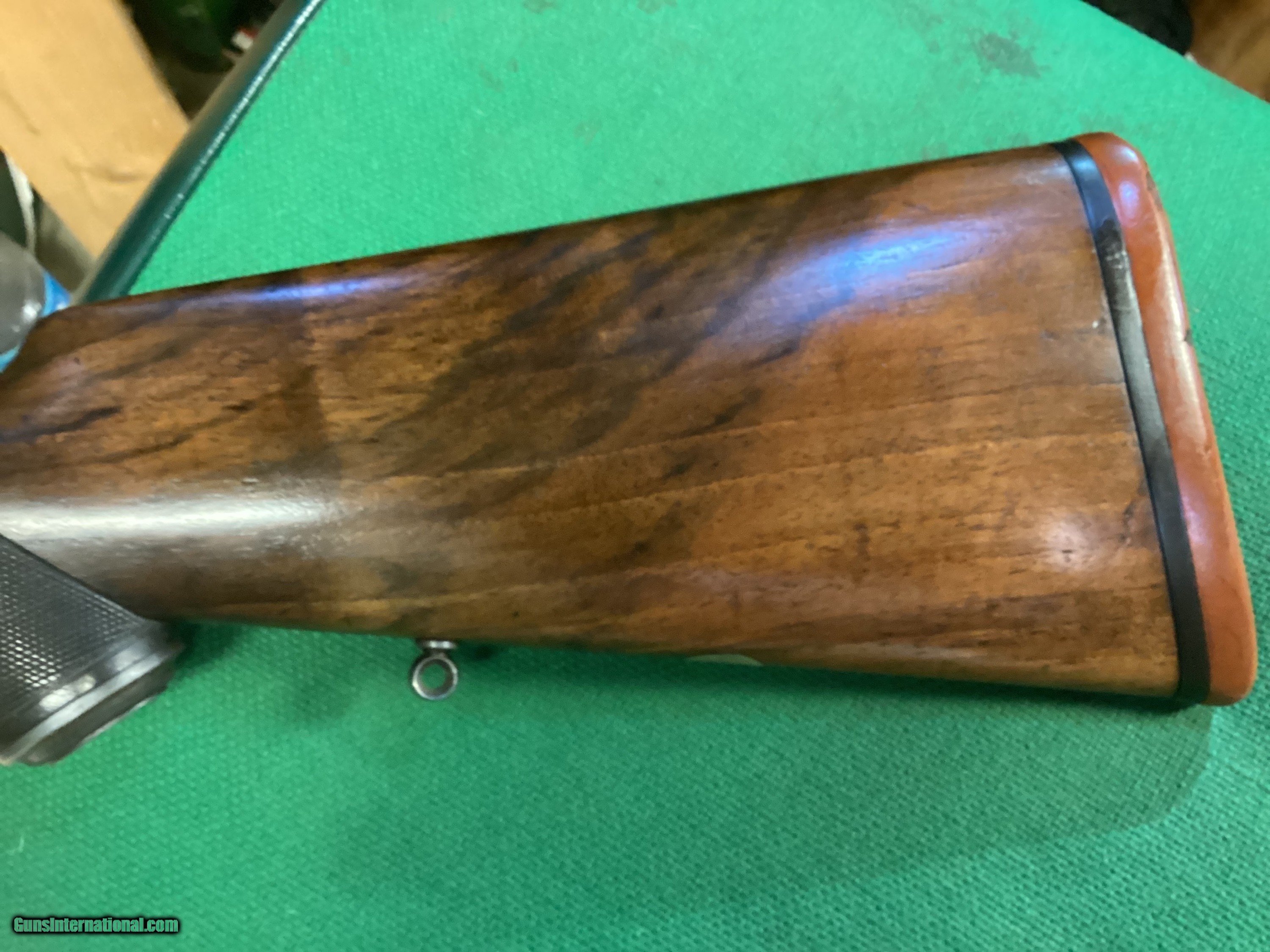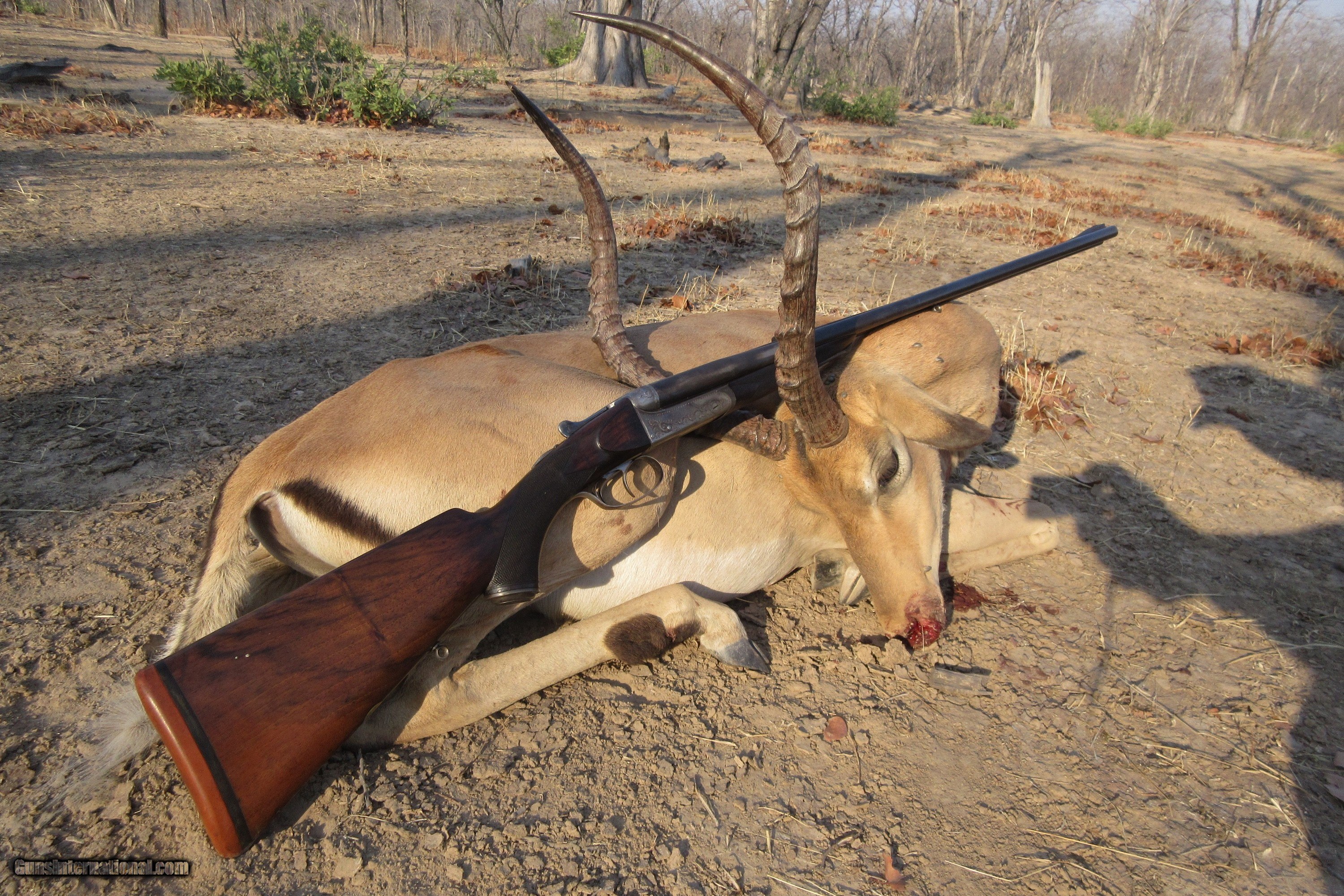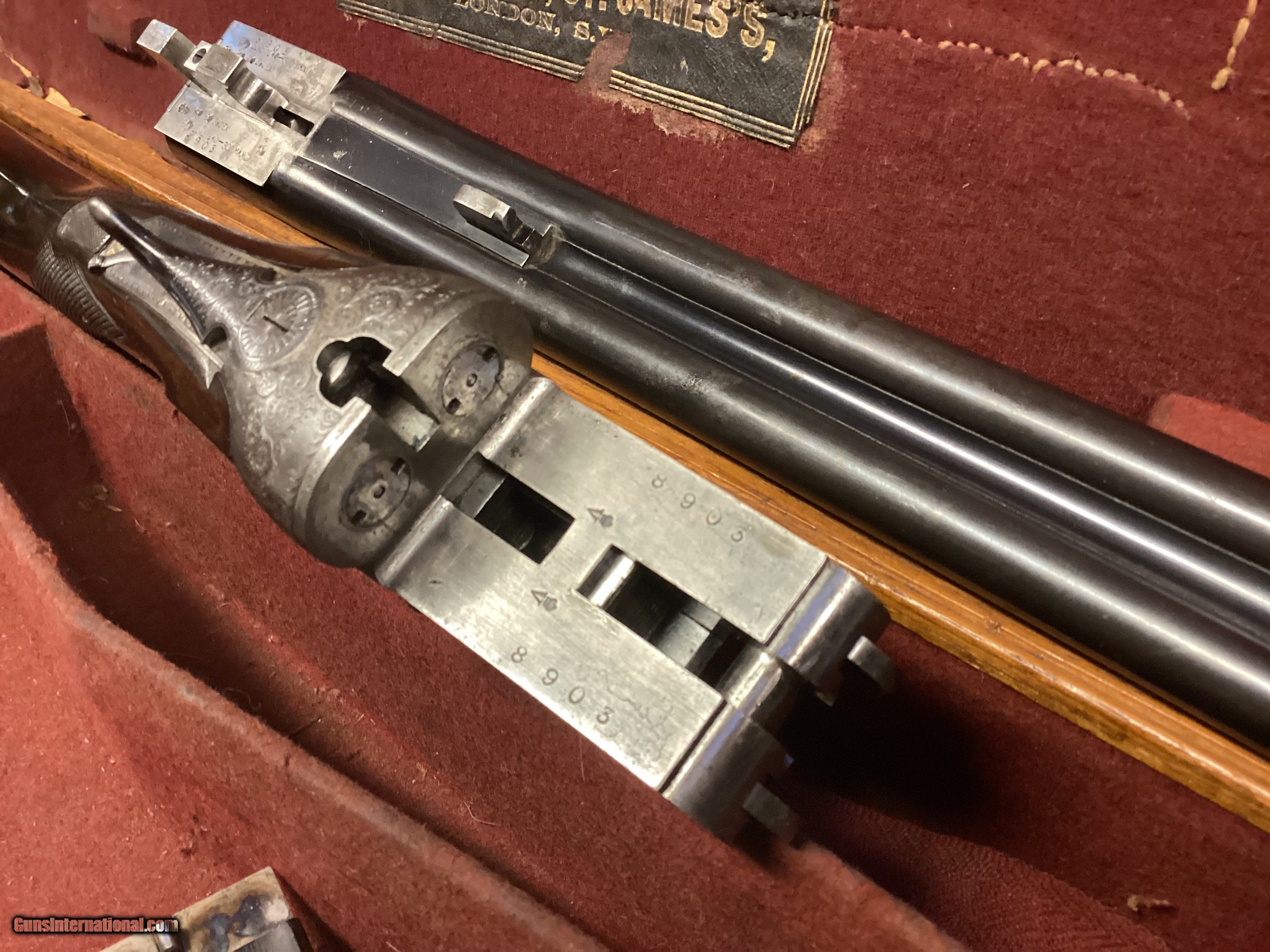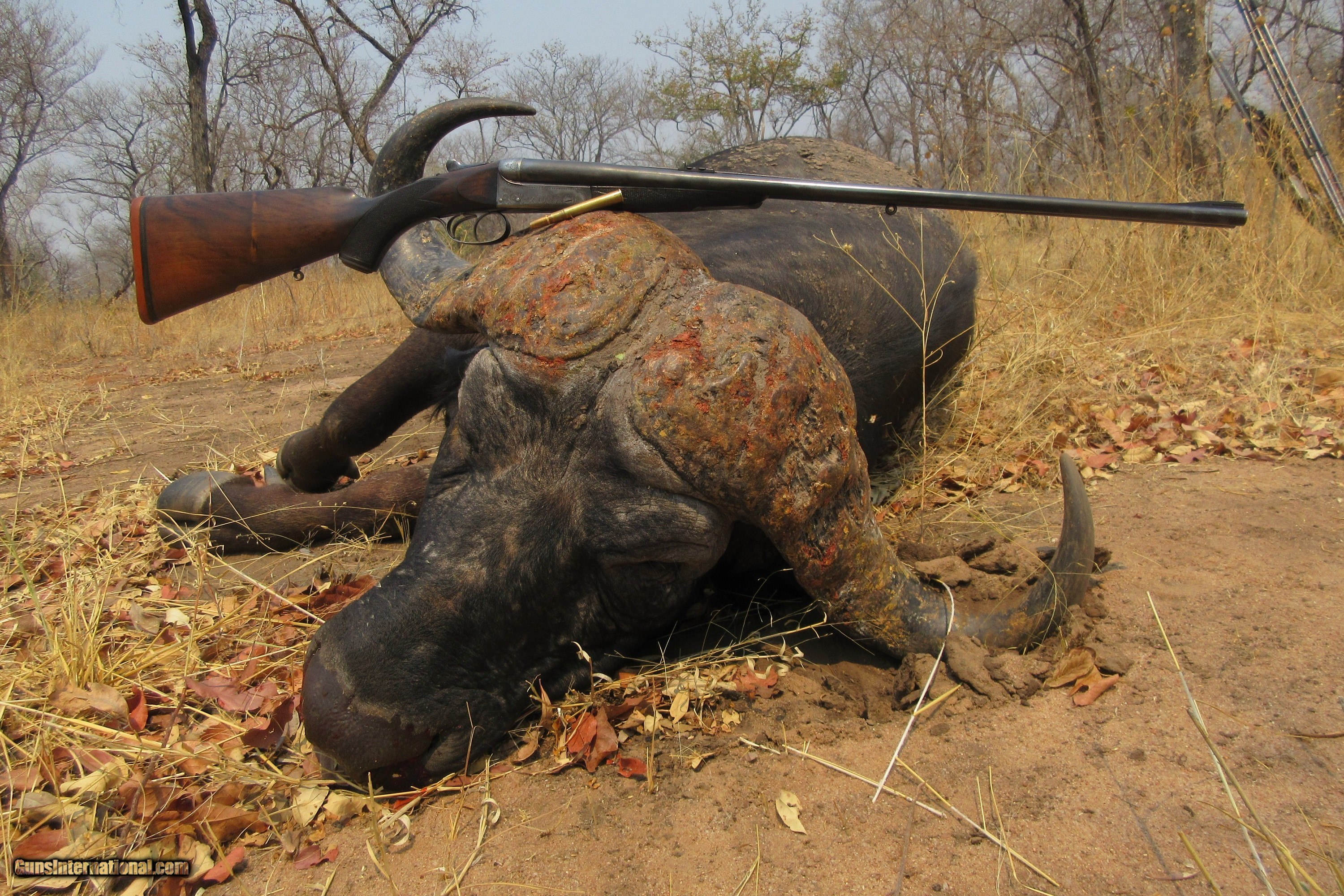 Description: This William Evans 400-360 is one of the most well balanced and accurate double rifles I have ever owned. Made ca 1909, it comes with its original case and 26" chopper lump barrels with excellent rifling. It weighs 9 1/4lbs with a 14 5/8" length of pull. To the best of my knowledge, all finishes are original with faded case colors on the action and some minor blueing wear on the barrels on the barrels where I carried it on a safari in Mozambique in 2017. On this safari it took one Cape buffalo (with one shot) and two impala. The stock is in very good condition and the flat top checkering in very good condition. SOLD Curio/Relic: Yes Rifle Caliber: .400/360 Nitro Express Manufacturer: William Evans Serial Number: 8903 Barrel Length: 26 Ejectors: Extractors Condition: Very good Metal Condition: Very good Wood Condition: Very good Bore Condition: Very good Barrel Type: Chopper lump Triggers: Double LOP: 14 5/8 Weight: 9 1/4 Manufacture Date: 1909 Case: Yes |