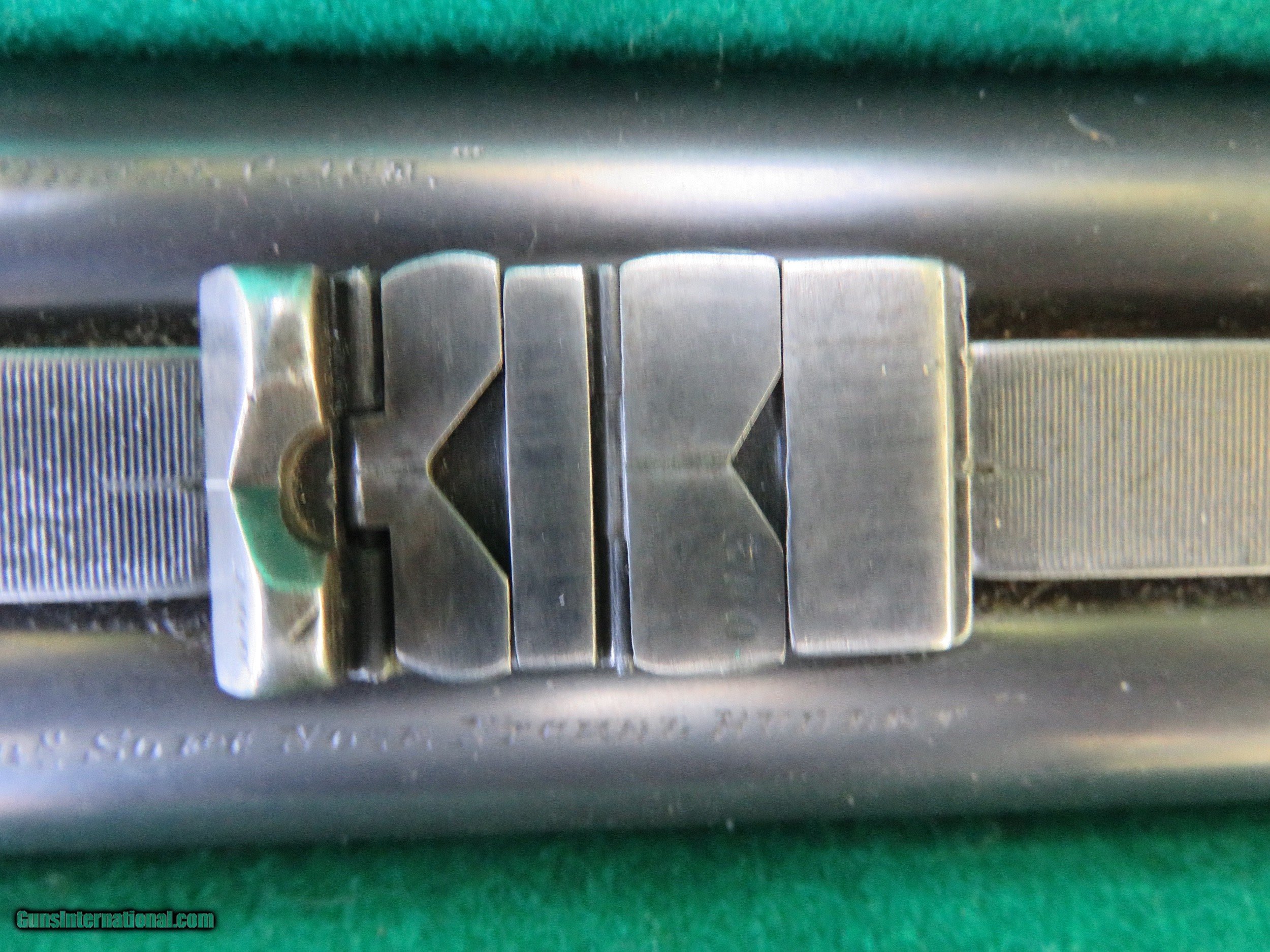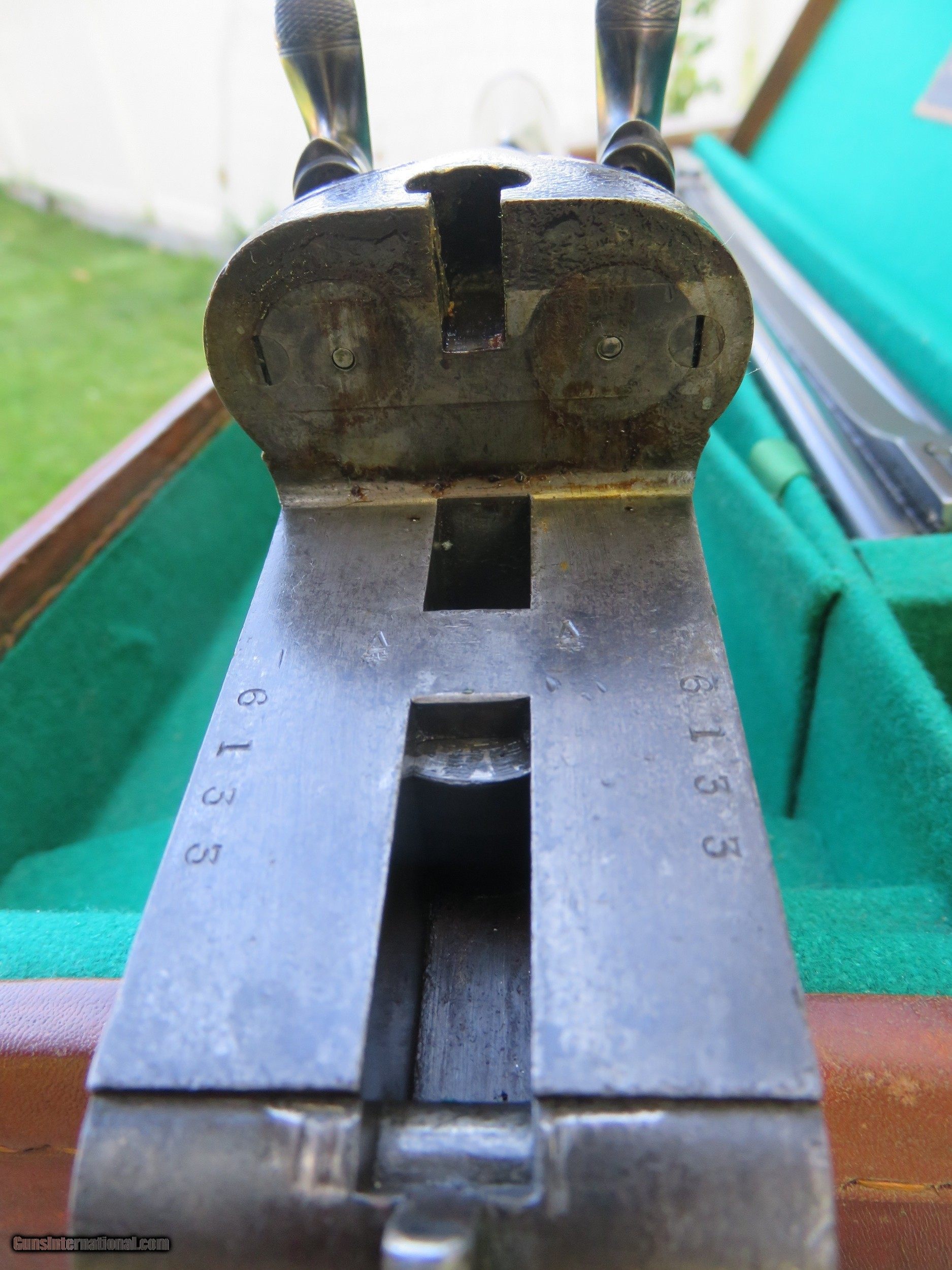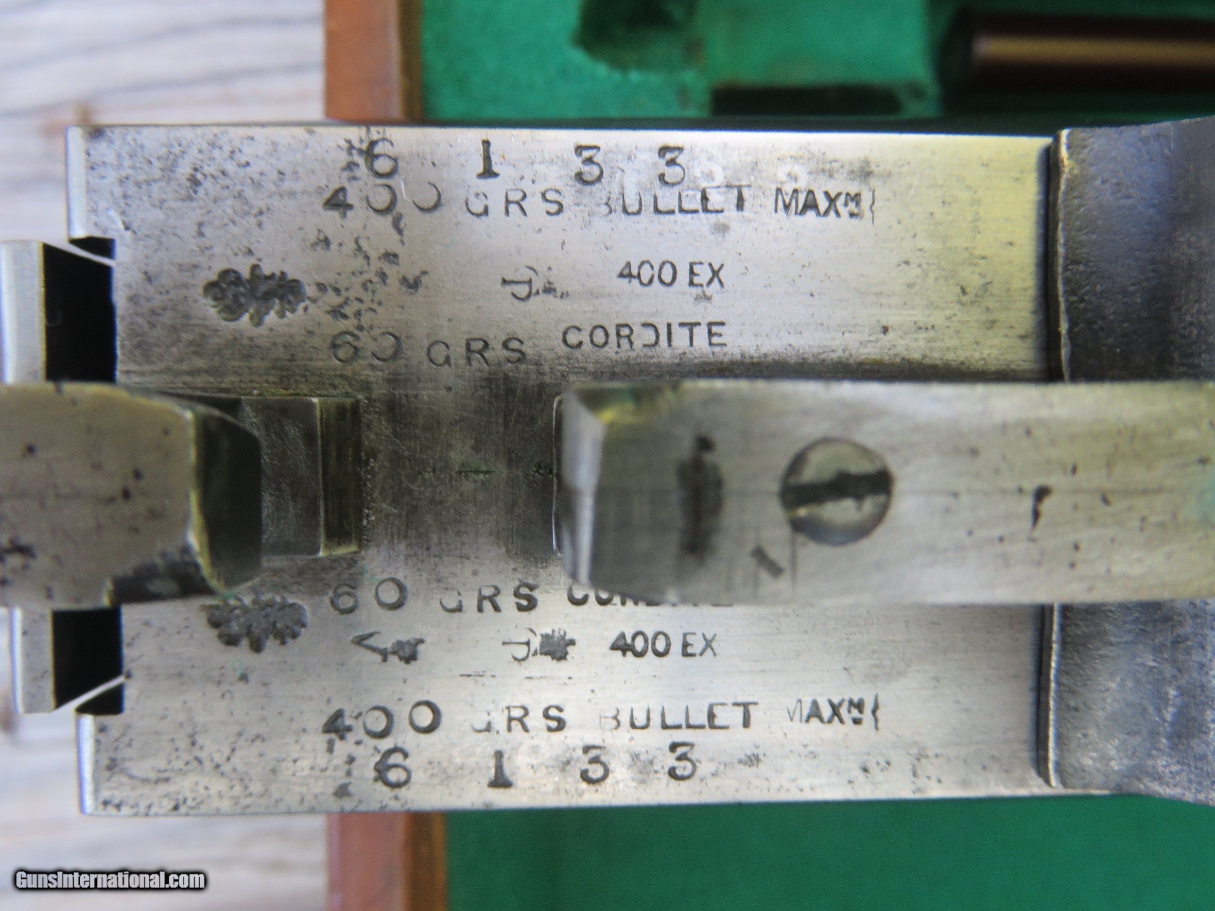 Description: Here's is a Great Opportunity to own a quality London Hammer Double Rifle by one of England's most respected Makers. It is a 450-400 NE 3 1/4" Jones Underlever (considered to be the strongest most reliable lock-up). This gun has 26" Barrels with one standing and two folding sight blades....they are free of pitting and retain 85% bluing (which I believe may have been redone decades ago.) Sharp lands and grooves. It is in largly original condition with the case colors gone dark. Engraving is good for a gun over 100 years old.....it was built in 1903. Stock is well figured with original finish,cheekpiece and LOP 14 1/2" to Silvers pad. There is an old repair to the wrist that appaers to be quite strong (Examined by Stock maker)Weight 9lbs 11oz . as a BONUS it comes with Dies Brass Bullets so you can shoot this Old Girl all you want !! BEST of All this gun is remarkably accurate. HOLY COW....It comes in its original Brass and Leather case with Makers Label and it is in very good condition for its age.....interior has been relined and it is a professional job. This was one of John "Pondoro" Taylor's favorite calibers for ALL types of Dangerous Game Including Elephants. Priced at an incredible $7895 plus $50 shipping (Show me another Nitro Proofed London Double Rifle Hammergun at this PRICE !!!!). CONUS ONLY) Email me at christo502003yahoo or call 406 728-9434 SOLD Antique: Yes Rifle Caliber: .450/400 Nitro Express Manufacturer: William Evans Model: Hammer Double Serial Number: 6133 Barrel Length: 26 Chambers: 3 1/4 Ejectors: No Condition: very good Metal Condition: good Wood Condition: very good Bore Condition: very good + Action: Jones Underlever Triggers: Double Stock: Walnut Stock Dimensions: 14 1/2 Stock Cast: Straight Fore End: Splinter Butt Pad: Silvers LOP: 14 1/2 Rib: Flat stippled Weight: 9 lbs 11oz Sights: One standing 2 folding Manufacture Date: 1903 Engraving: Crisp with normal wear Case: Original Leather/Brass Item Location: MONTANA Proof:Nitro: Yes |