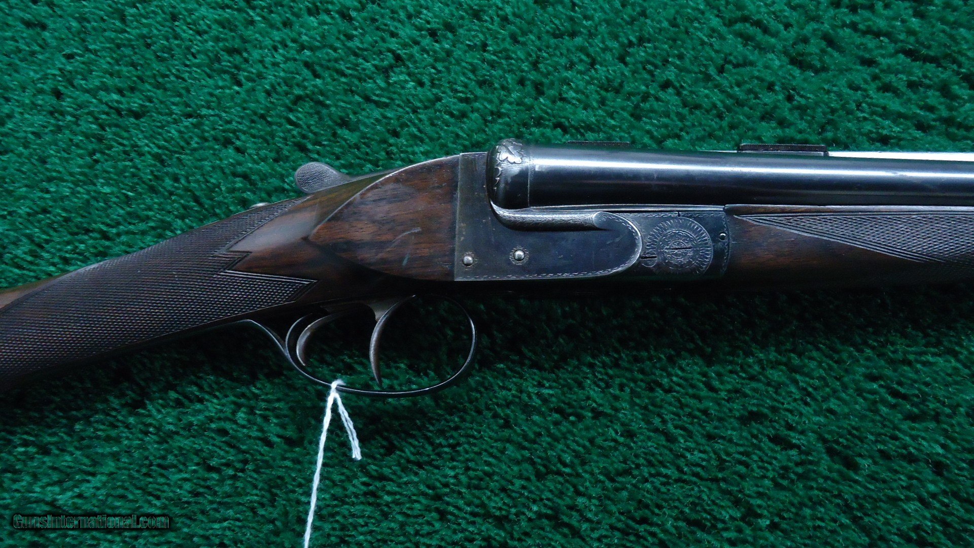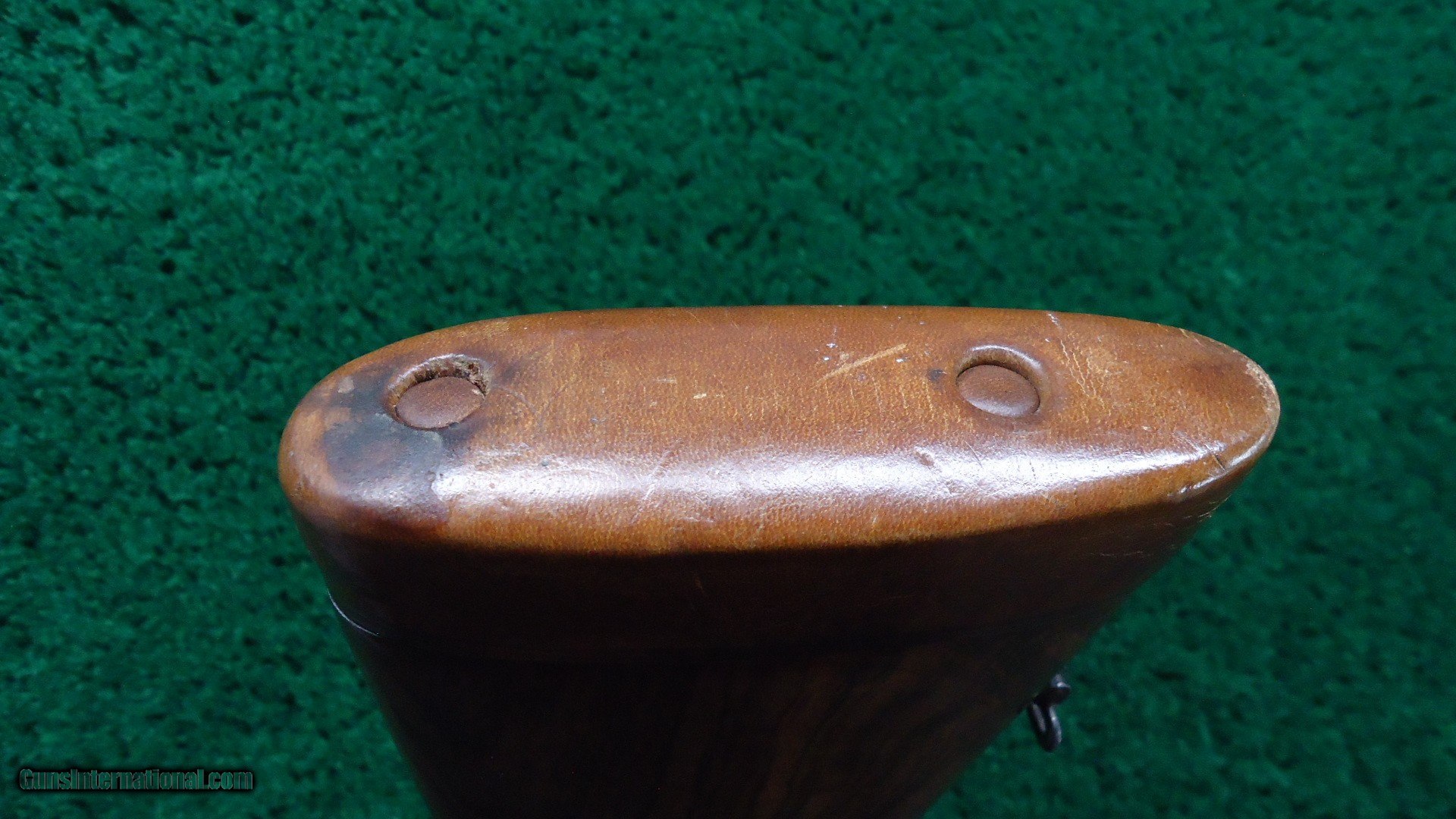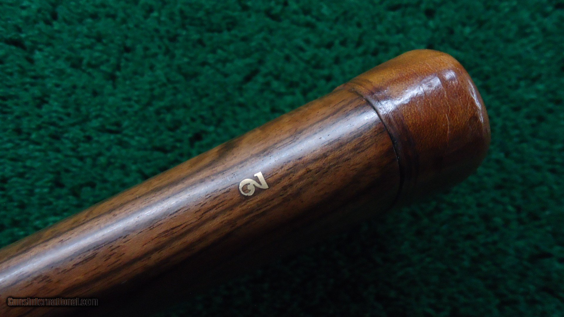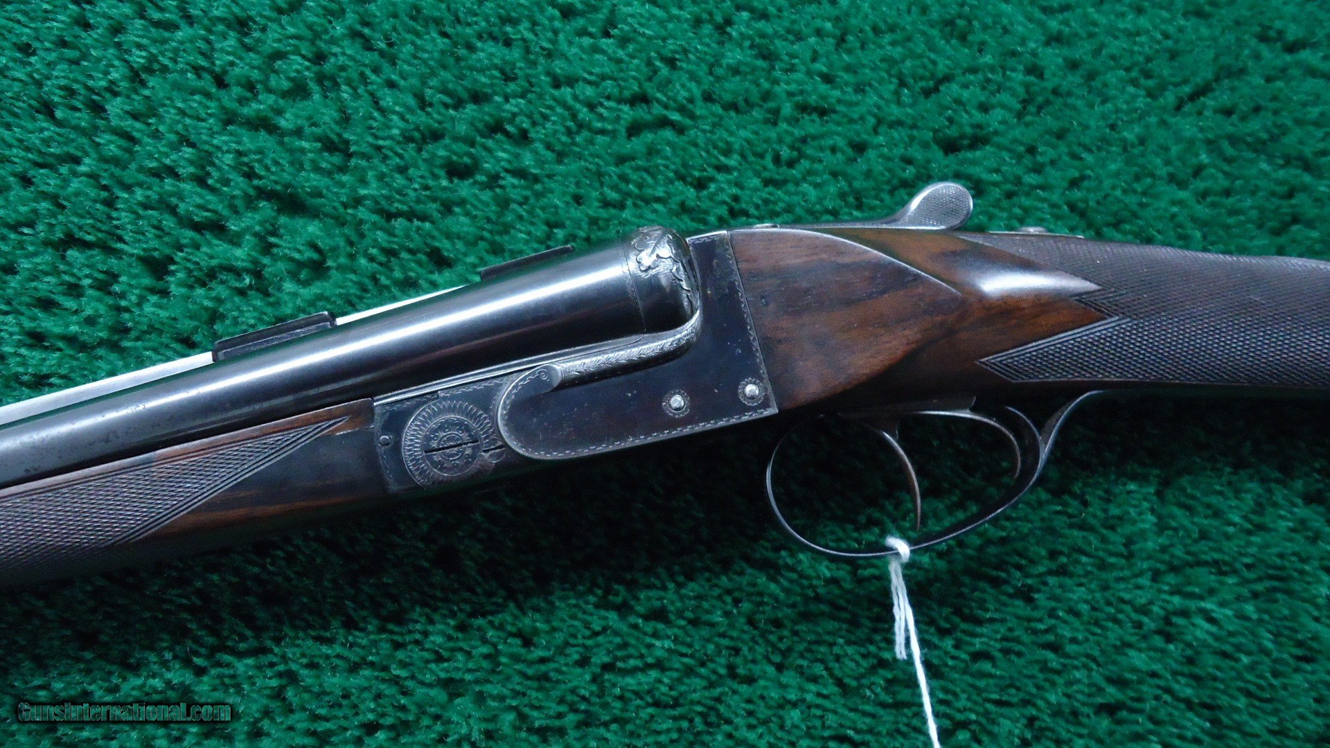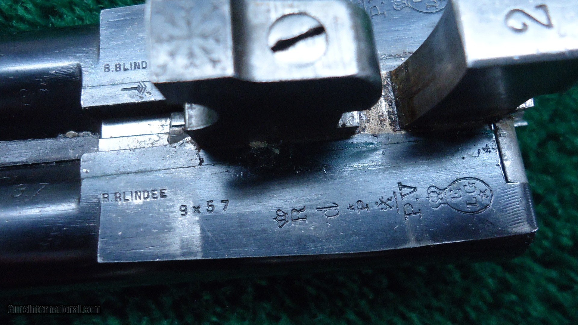 Description: 23-3/4 inch barrels chambered in 9X57R caliber with bright shiny excellent bores. Nice deep rifling. Barrels retain most all of the thinning original blue. A few scattered cleaned spots that have developed pinprick pits on left barrel by the rear sight. Sights include a brass beaded blade front and a 3 leaf express rear on a matted rib. Rib is also fitted with Warne-Style Quick Detach scope bases. Boxlock frame is a blue toning to plum patina with nicely relief engraved oak leaves on the fences and lightly engraved border around the frame. Straight grip checkered French walnut stock has been refinished and looks excellent. Features an inlaid "2" on top of he stock and a "2" on the bottom of the checkered forearm. Rifle has double triggers and ejectors. A very nice looking double rifle for most any game you would like to hunt. Leroy Merz Antique Firearms specializes in antique and vintage Winchesters and other fine American firearms. Since 1965 Mr. Merz has taken part in the world of firearms and has been a contributor to many well known reference books. We have hundreds of additional guns in every price range at our home online. Search for Merz Antiques in google. SOLD Curio/Relic: Yes Rifle Caliber: 9x57mmR |