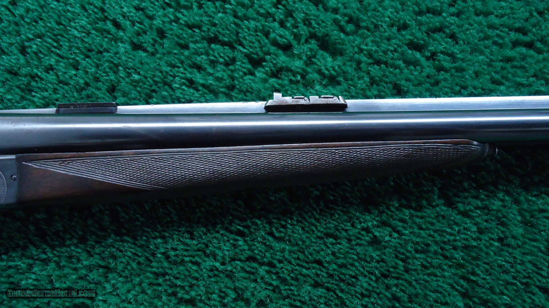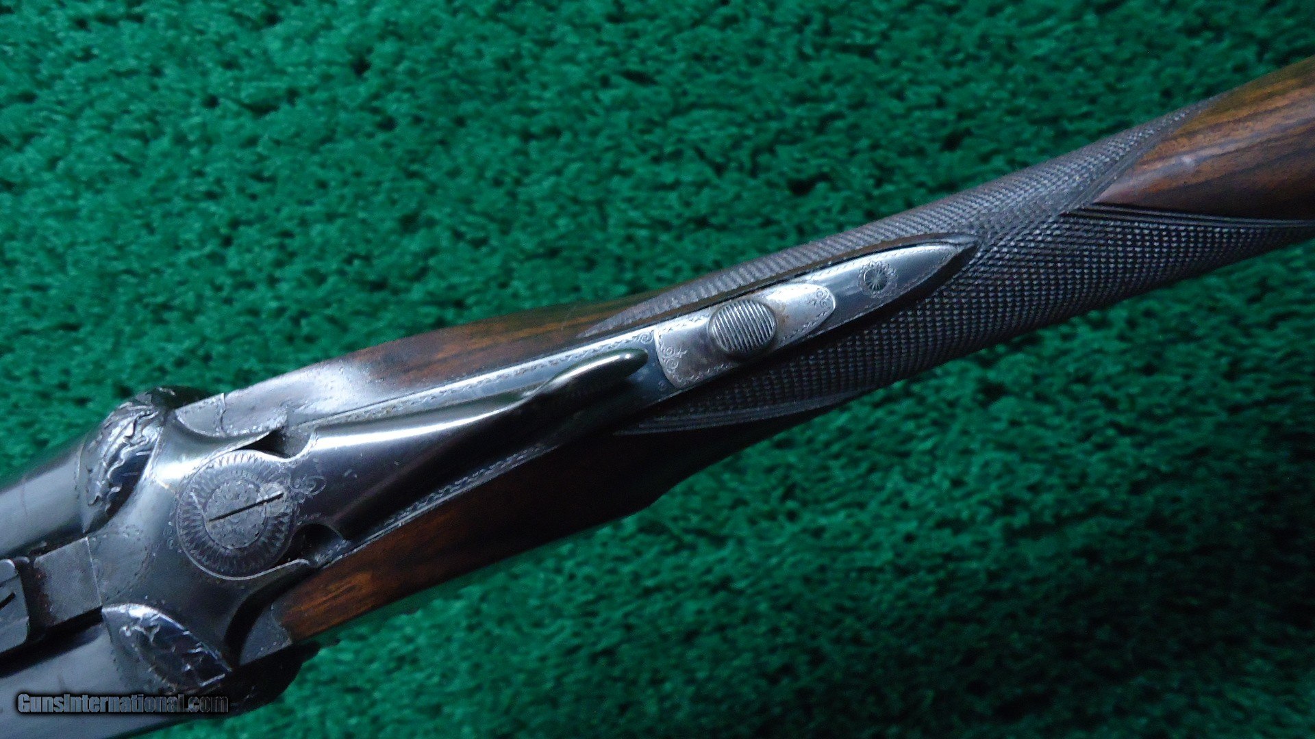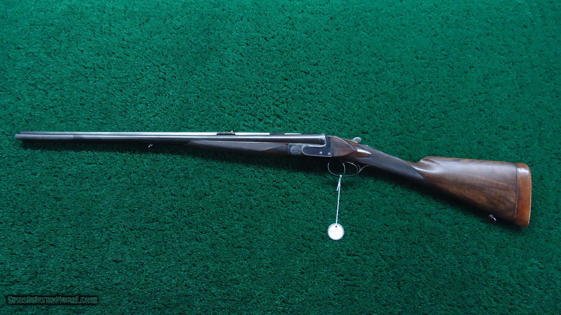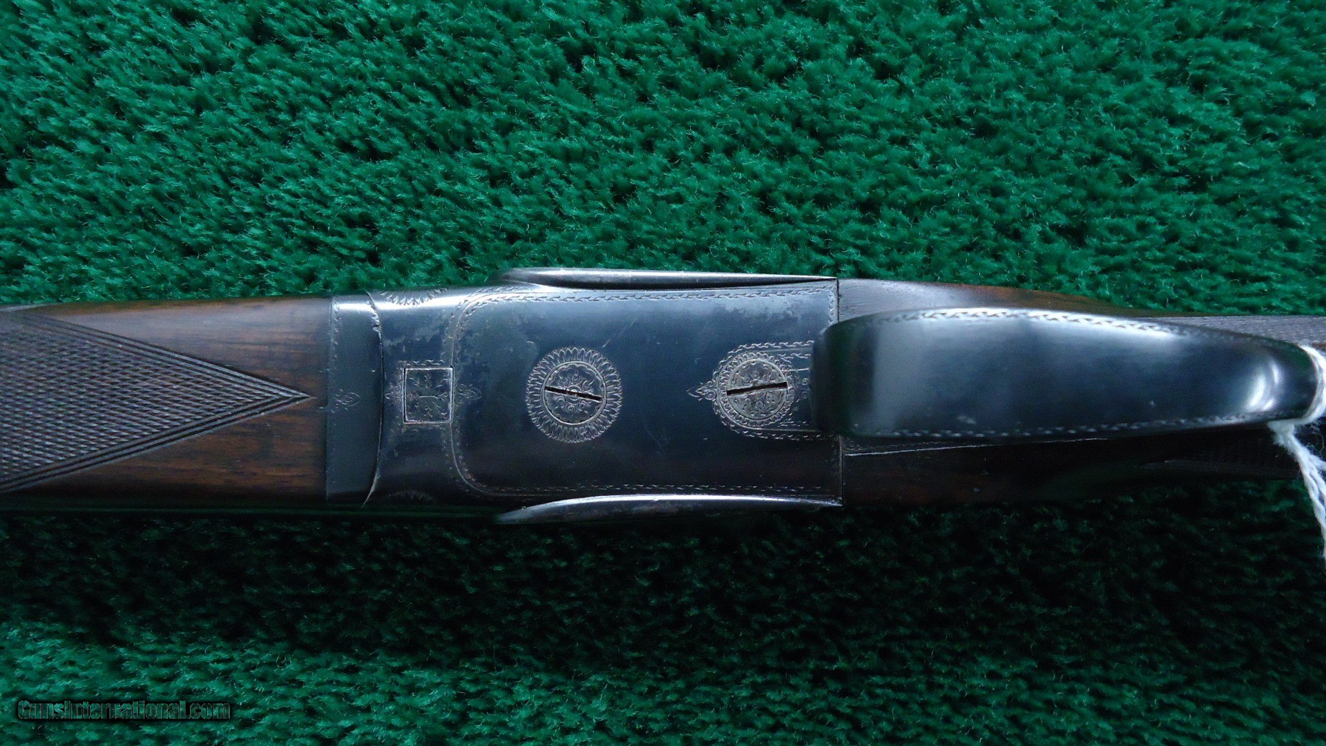 Description: 23-3/4 inch barrels chambered in 9X57R caliber with bright shiny excellent bores. Nice deep rifling. Barrels retain most all of the thinning original blue. A few scattered cleaned spots that have developed pinprick pits on left barrel by the rear sight. Sights include a brass beaded blade front and a 3 leaf express rear on a matted rib. Rib is also fitted with Warne-Style Quick Detach scope bases. Boxlock frame is a blue toning to plum patina with nicely relief engraved oak leaves on the fences and lightly engraved border around the frame. Straight grip checkered French walnut stock has been refinished and looks excellent. Features an inlaid "2" on top of he stock and a "2" on the bottom of the checkered forearm. Rifle has double triggers and ejectors. A very nice looking double rifle for most any game you would like to hunt. Leroy Merz Antique Firearms specializes in antique and vintage Winchesters and other fine American firearms. Since 1965 Mr. Merz has taken part in the world of firearms and has been a contributor to many well known reference books. We have hundreds of additional guns in every price range at our home online. Search for Merz Antiques in google. SOLD Curio/Relic: Yes Rifle Caliber: 9x57mmR |