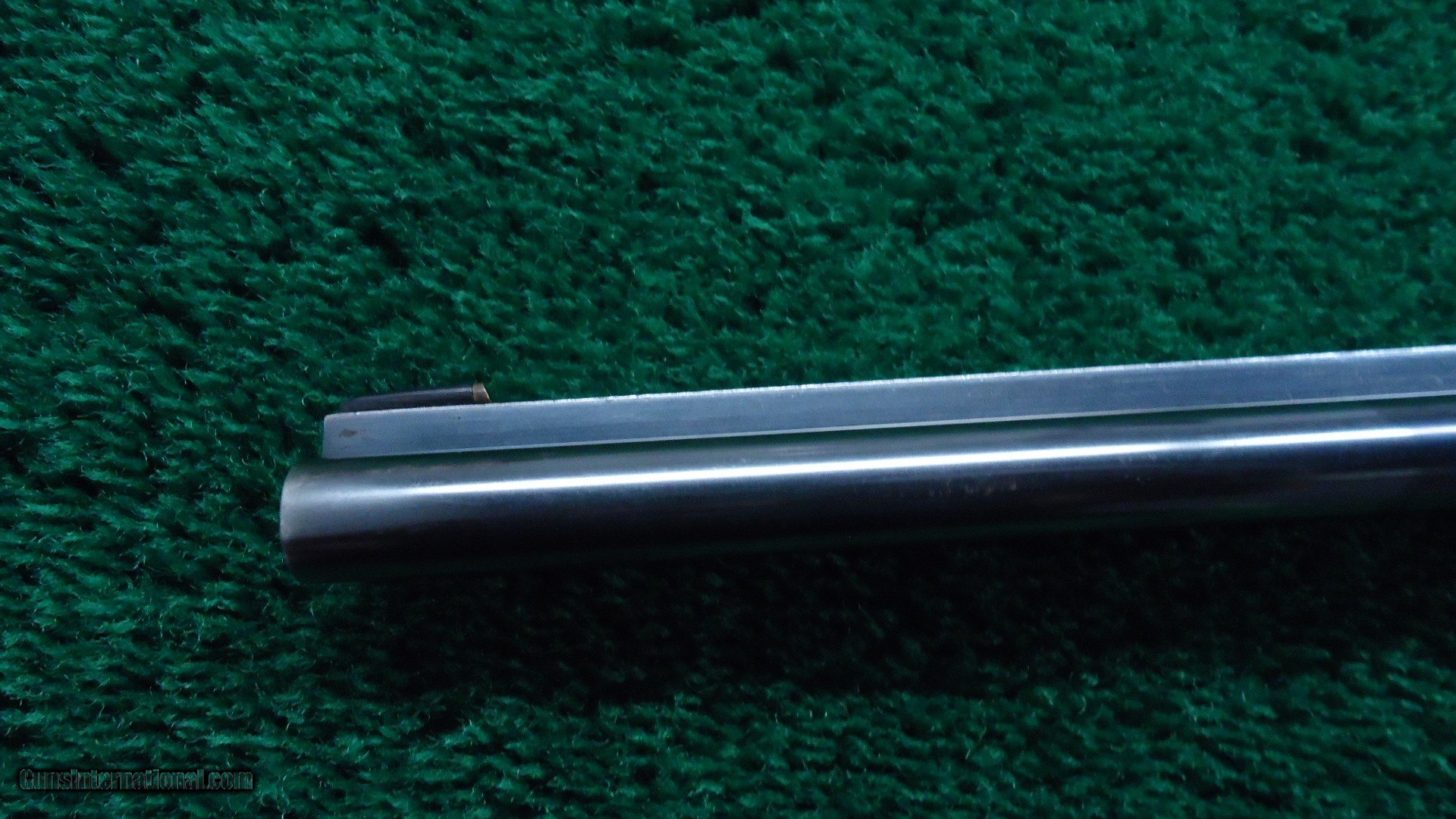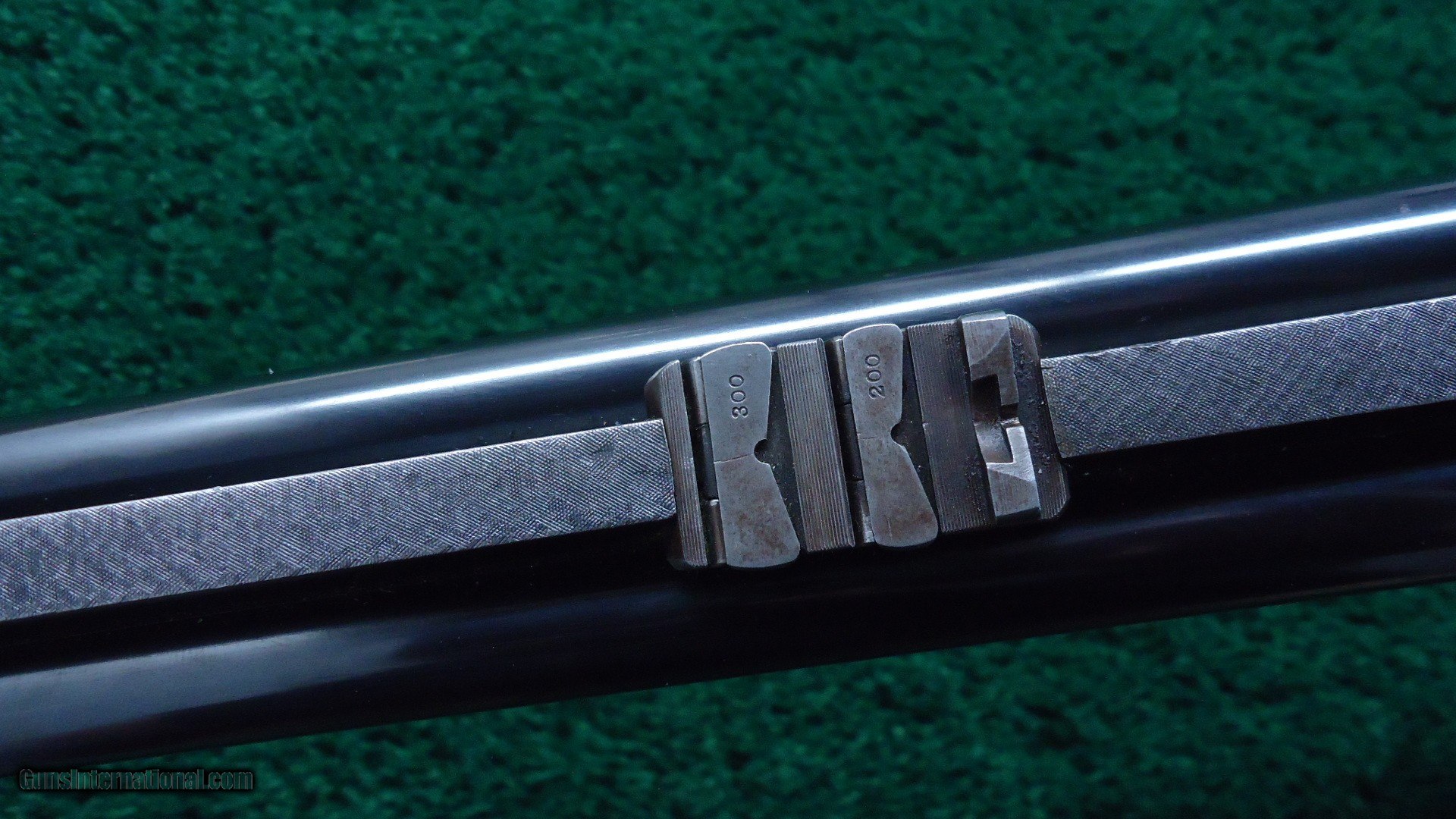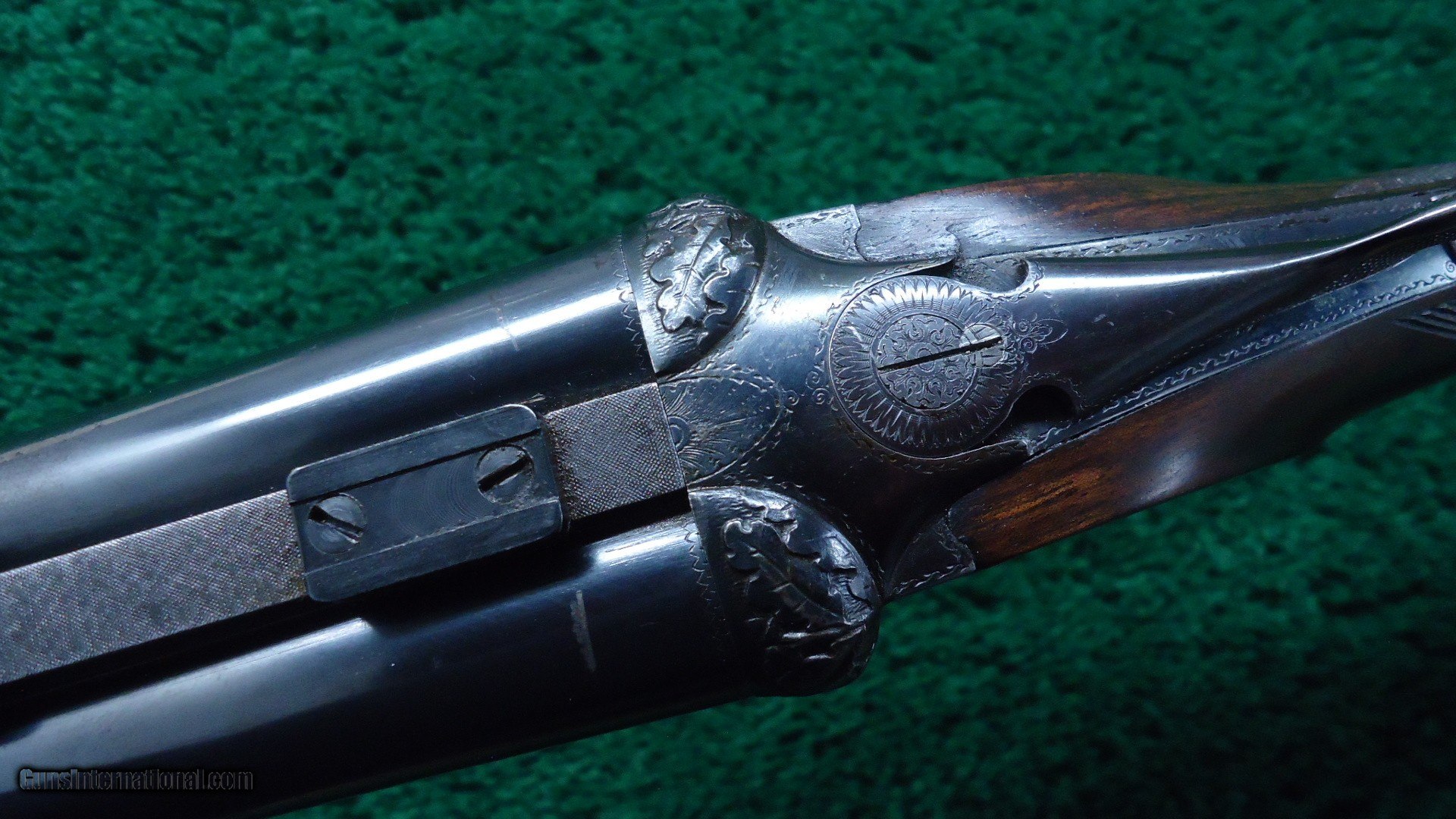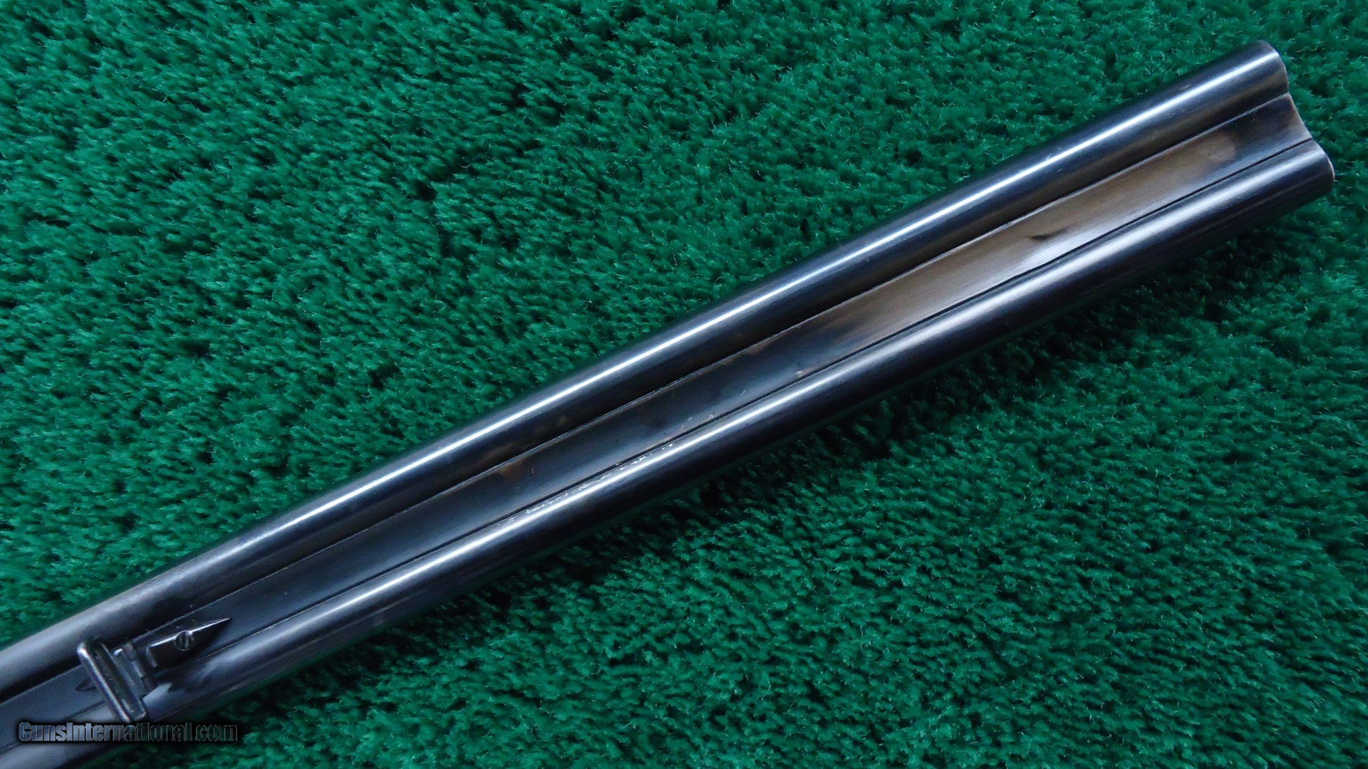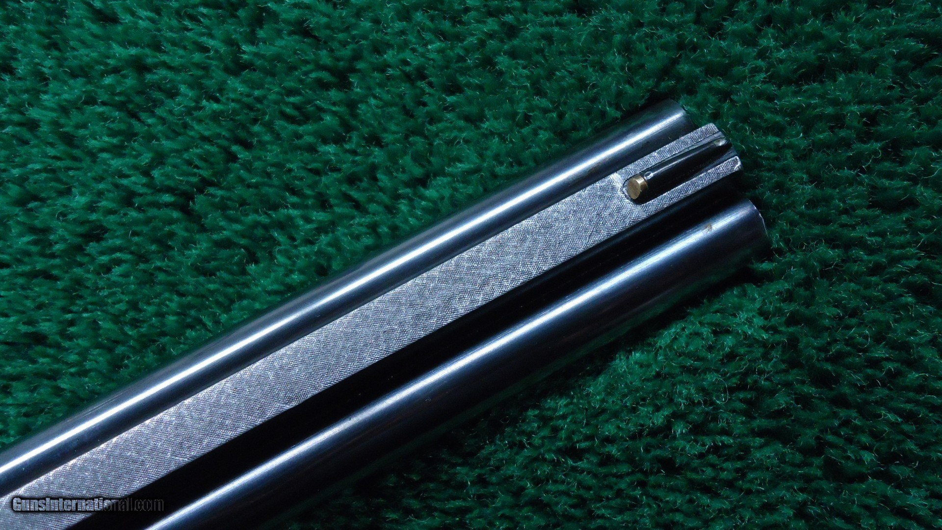 Description: 23-3/4 inch barrels chambered in 9X57R caliber with bright shiny excellent bores. Nice deep rifling. Barrels retain most all of the thinning original blue. A few scattered cleaned spots that have developed pinprick pits on left barrel by the rear sight. Sights include a brass beaded blade front and a 3 leaf express rear on a matted rib. Rib is also fitted with Warne-Style Quick Detach scope bases. Boxlock frame is a blue toning to plum patina with nicely relief engraved oak leaves on the fences and lightly engraved border around the frame. Straight grip checkered French walnut stock has been refinished and looks excellent. Features an inlaid "2" on top of he stock and a "2" on the bottom of the checkered forearm. Rifle has double triggers and ejectors. A very nice looking double rifle for most any game you would like to hunt. Leroy Merz Antique Firearms specializes in antique and vintage Winchesters and other fine American firearms. Since 1965 Mr. Merz has taken part in the world of firearms and has been a contributor to many well known reference books. We have hundreds of additional guns in every price range at our home online. Search for Merz Antiques in google. SOLD Curio/Relic: Yes Rifle Caliber: 9x57mmR |