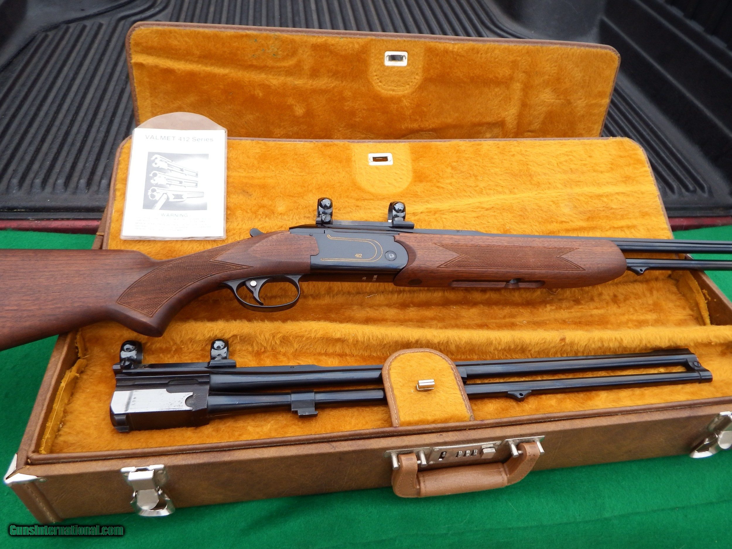 Description: A rare find today! A quality - A VALMET model 412 double rifle – two barrel set – ALL RIFLE CALIBERS! - in calibers that will take down anything in North and South America. The versatile popular 30-06 ( double) and the classic 300 H&H magnum ( double) for heavier game like moose elk and big bears – with safe loadings to near 300 Weatherby power. Comes in the classic high quality factory double compartment clamshell ‘furr lined’ fitted hard case with lock.. In excellent very high condition with scope bases and rings included and mounted. Priced to sell. 813-2430588. I prefer phone calls with questions. Selling my collection . No offers or trades on this one - please SOLD Curio/Relic: Yes |
