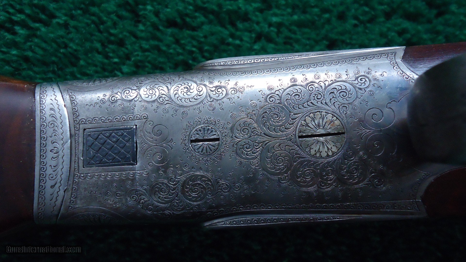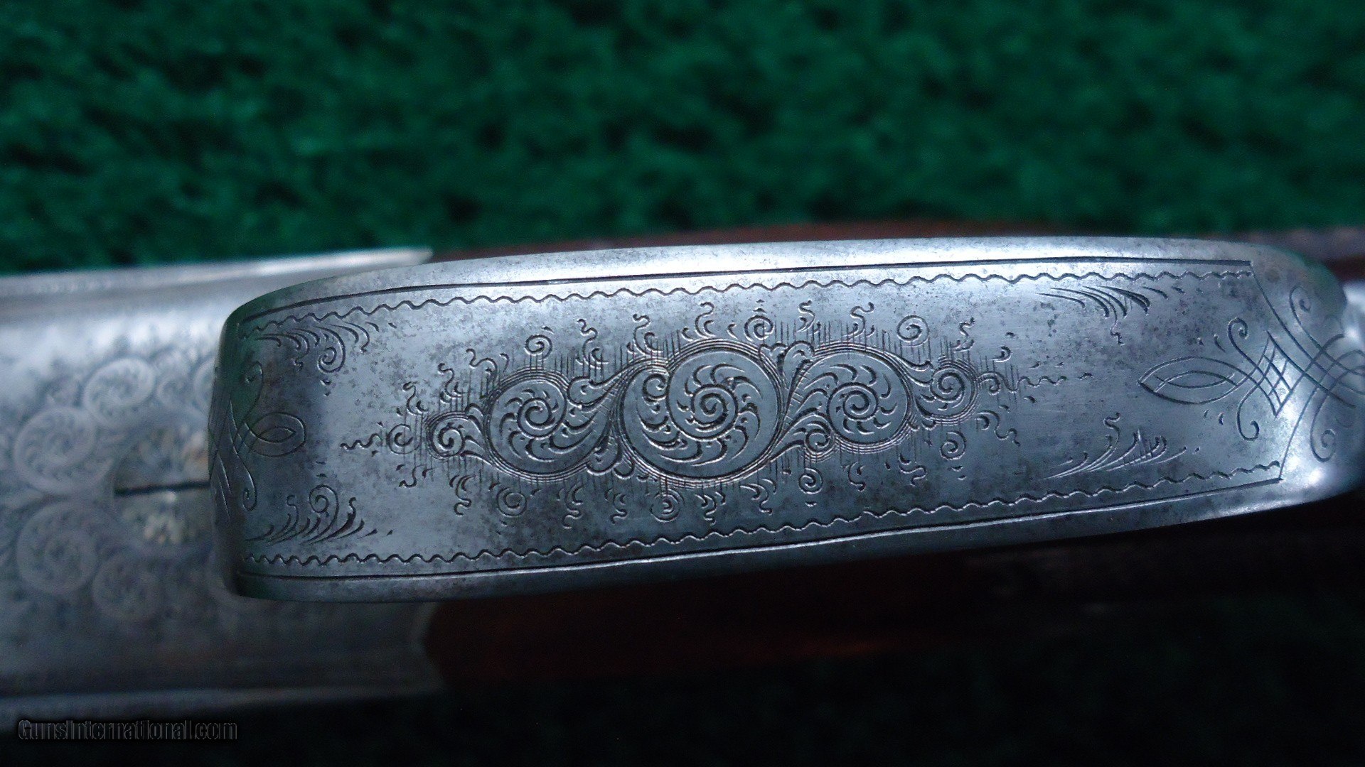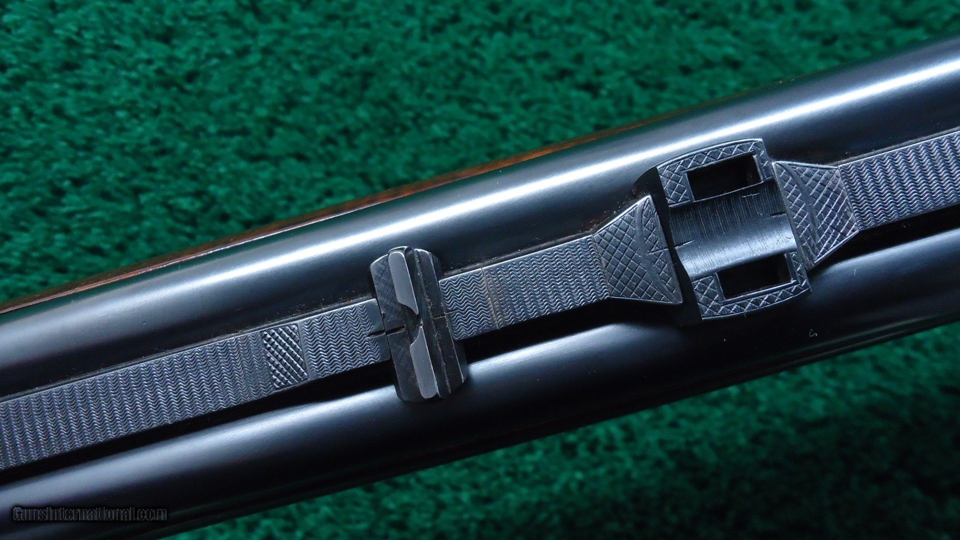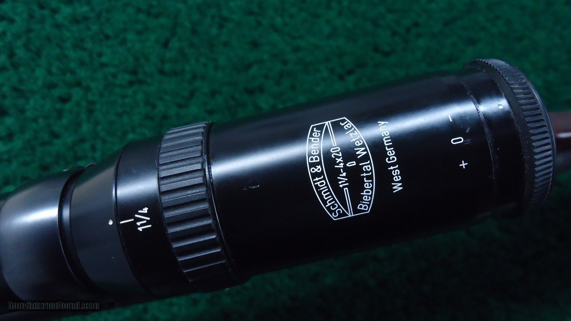 Description: Double rifle made by H. Barella of Berlin & Suhl features 24-1/2 inch round barrels with shiny excellent bores chambered in 9.3X74R caliber . Barrels retain most all of their rust blue finish. Sights include German silver bead front atop a matted rib and single express rear. Quick detach claw bases are mounted on the raised rear of the rib. A Schmidt & Bender Biebertal Wetzlar 1-1/4 -x- 4X variable scope duplex reticle. The color case hardened frame has toned to a silver/gray patina with some good traces of color in the protected areas. There is also some nice scroll and border engraving with about 75% coverage. The top of the opening lever has gold inlaid initials "JS". The walnut checkered round knob pistolgrip buttstock is in very nice condition with only minor handling mars. Nicely figured with cheekpiece. Forend is also in good condition with nice checkering.as well. LOP is 14-1/2 to the end of the red rubber buttpad. Mechanical function is fine. Greener crossbolt. This is a very fine German double rifle that is ready for your next hunt. Leroy Merz Antique Firearms specializes in antique and vintage Winchesters and other fine American firearms. Since 1965 Mr. Merz has taken part in the world of firearms and has been a contributor to many well known reference books. We have hundreds of additional guns in every price range at our home online. Search for Merz Antiques in google. SOLD Curio/Relic: Yes Rifle Caliber: 9.3x74mmR |