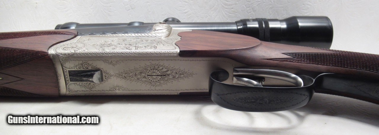 Description: Combo Rifle Made by Waffen Dschuinigg-Salzburg; Serial No. 404200; Double 30-06 Over 20 Gauge; 24” Barrels; Weighs 10 lbs.; White Line Butt Pad; Comes with Kkahles Wien Made Kelia-Super Scope; Perfect Action and Excellent Bright Shiny Bores; Original Leather Case with Key also Included; This Rifle was Owned by Alaska Big Game Trophy Club Inc. Editor Norman B. Grant, Jr. – 1971 Edition “Records of Alaska Big Game” Book Included; Like New Condition; 99+% Metal and Wood Finish Present; See All Photos for Condition; No Texts; Call (254)541-5765 or Email Only; PERSONAL PROPERTY of Harold Wieser; NOTICE: We Do Not Do Any Consignments - All Items Listed are Owned by Us - NO SALES to New Jersey or New York City - Antiques Only to Massachusetts and California; Price: $9,975 + $75 S&H Via USPS PRIORITY MAIL; Payment Address: Harold Wieser - 1466 U.S. Hwy 77 - Rosebud, TX 76570; SEND PAYMENTS VIA USPS PRIORITY MAIL; BEWARE of SCAMS!!! – DO NOT SEND MONEY or CORRESPONDENTS ELECTRONICALLY UNLESS YOU HAVE SPOKEN to HAROLD WIESER FIRST! 254-541-5765 SOLD Manufacturer: Waffen Dschuinigg Model: Combo Serial Number: 404200 |