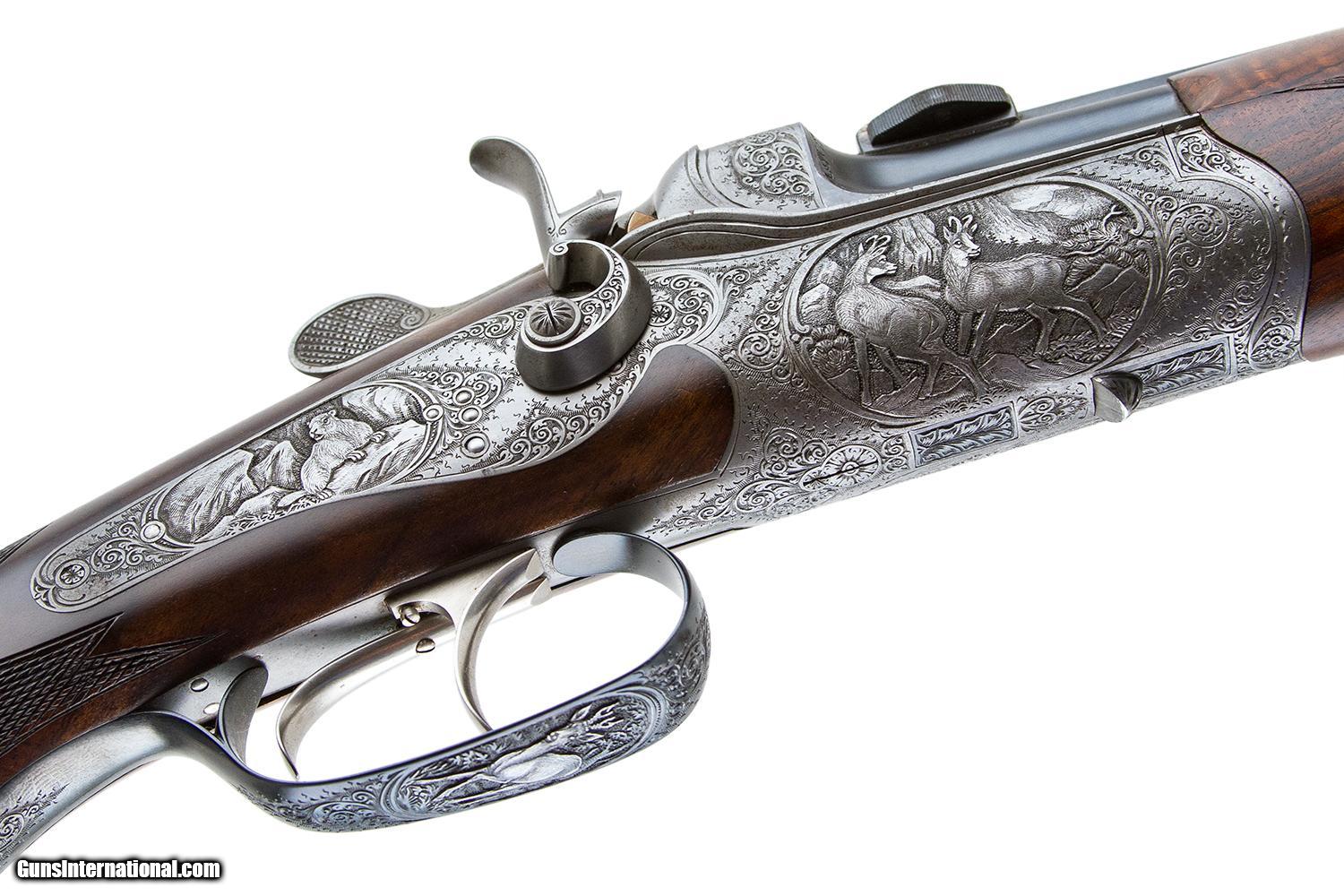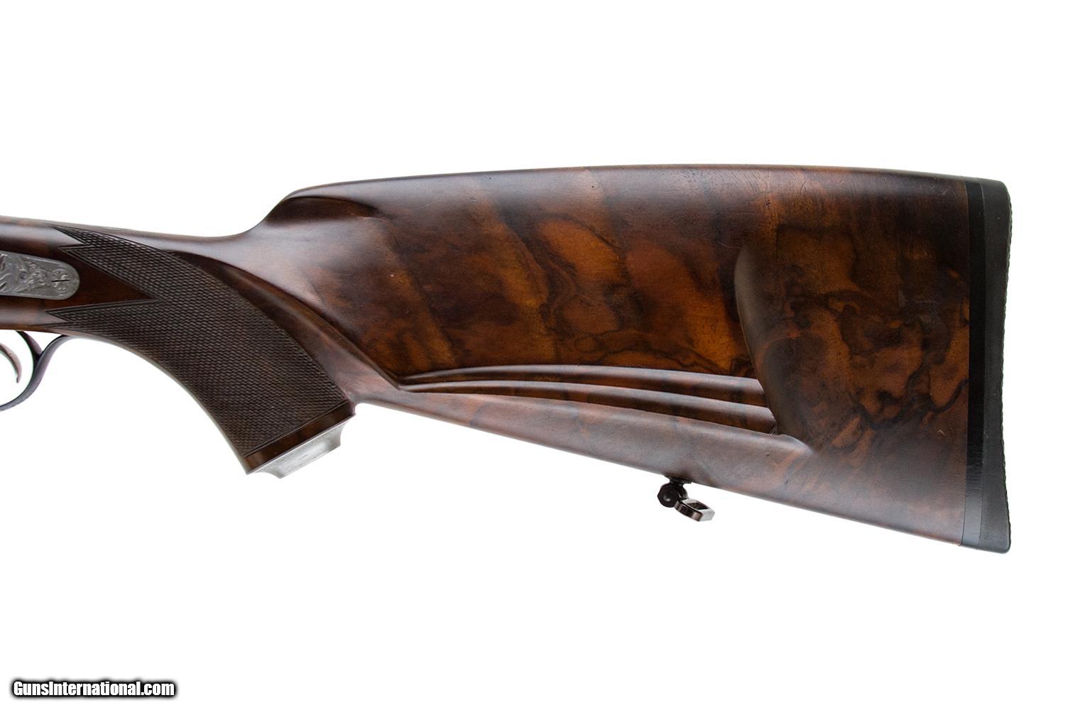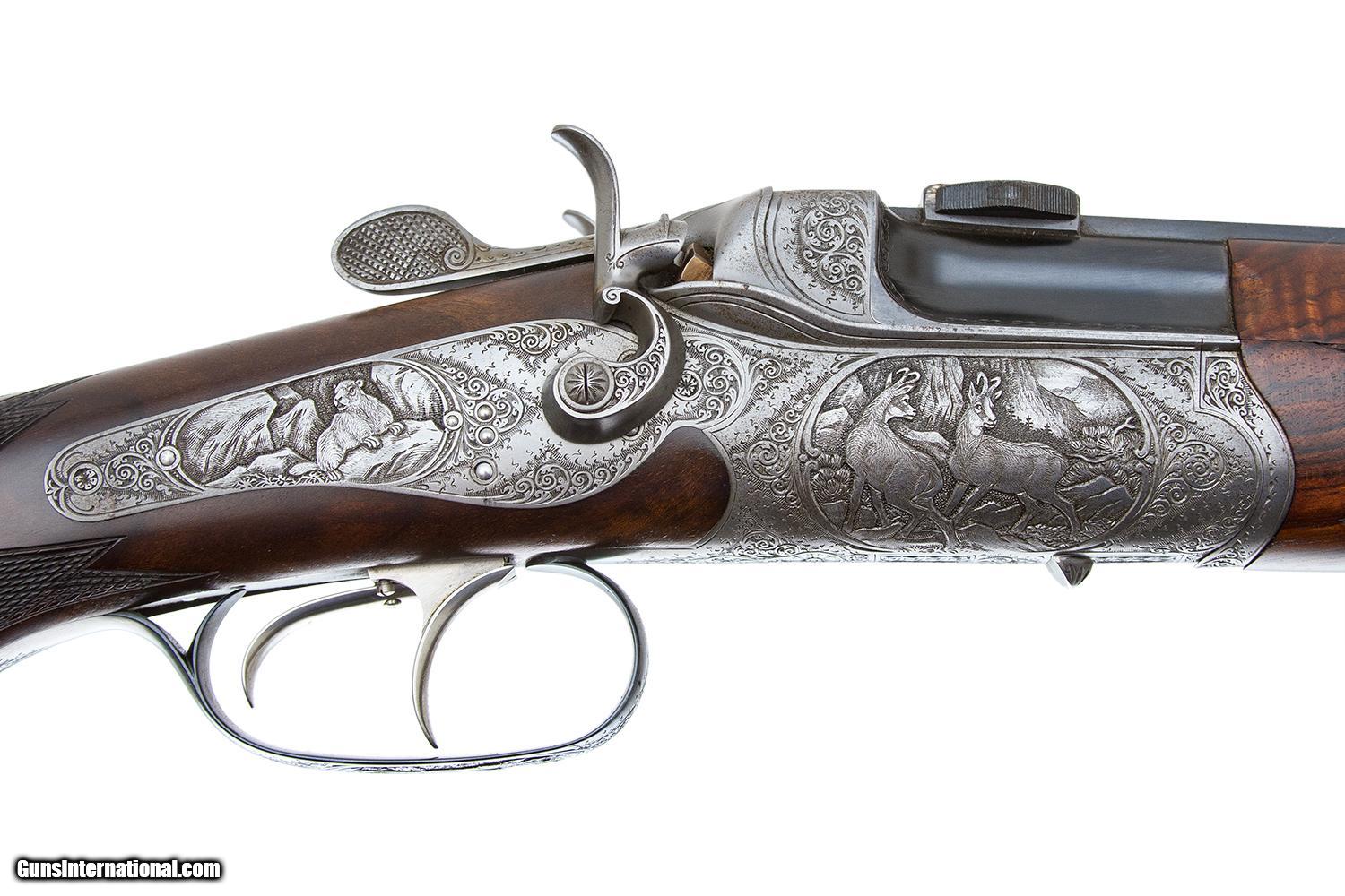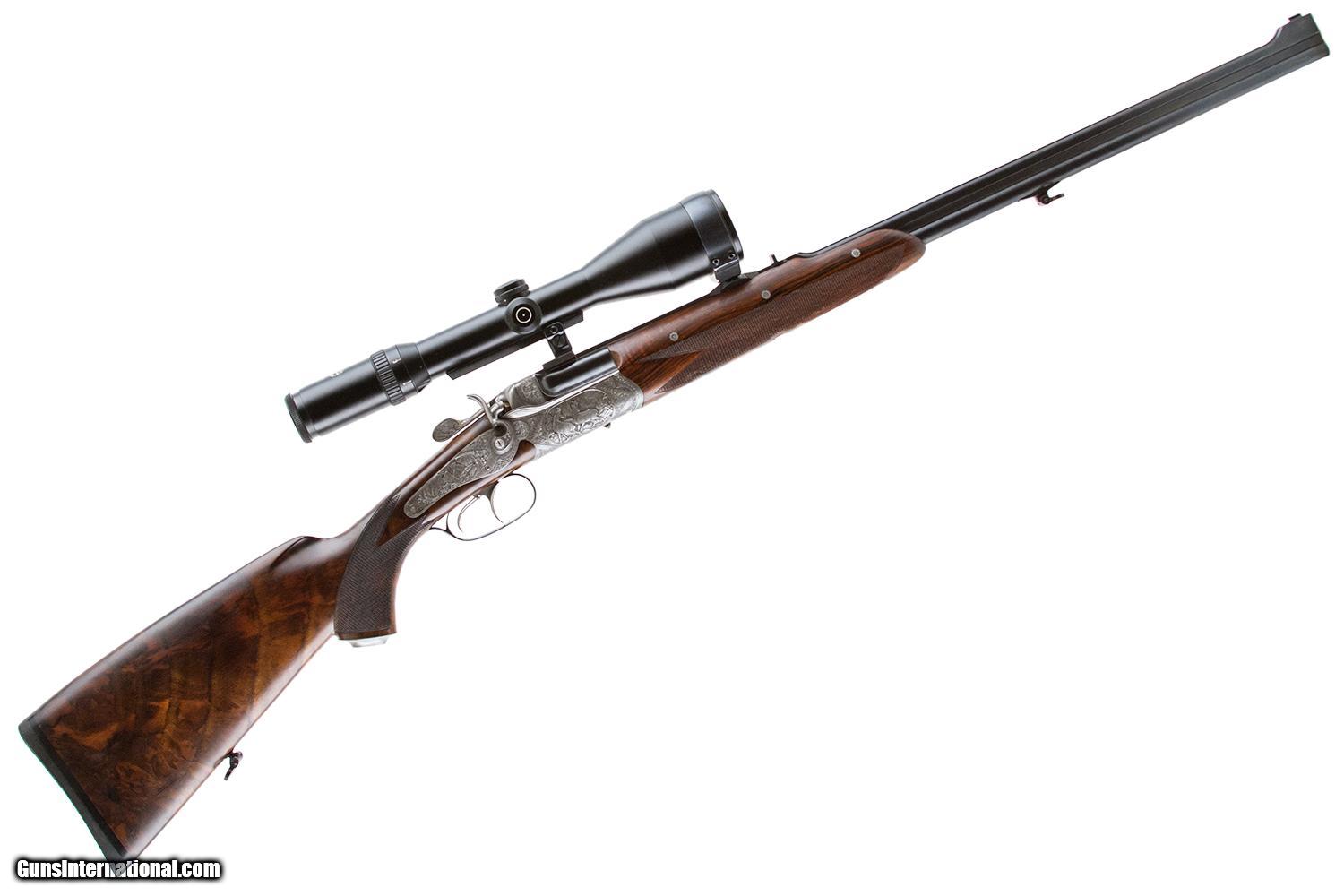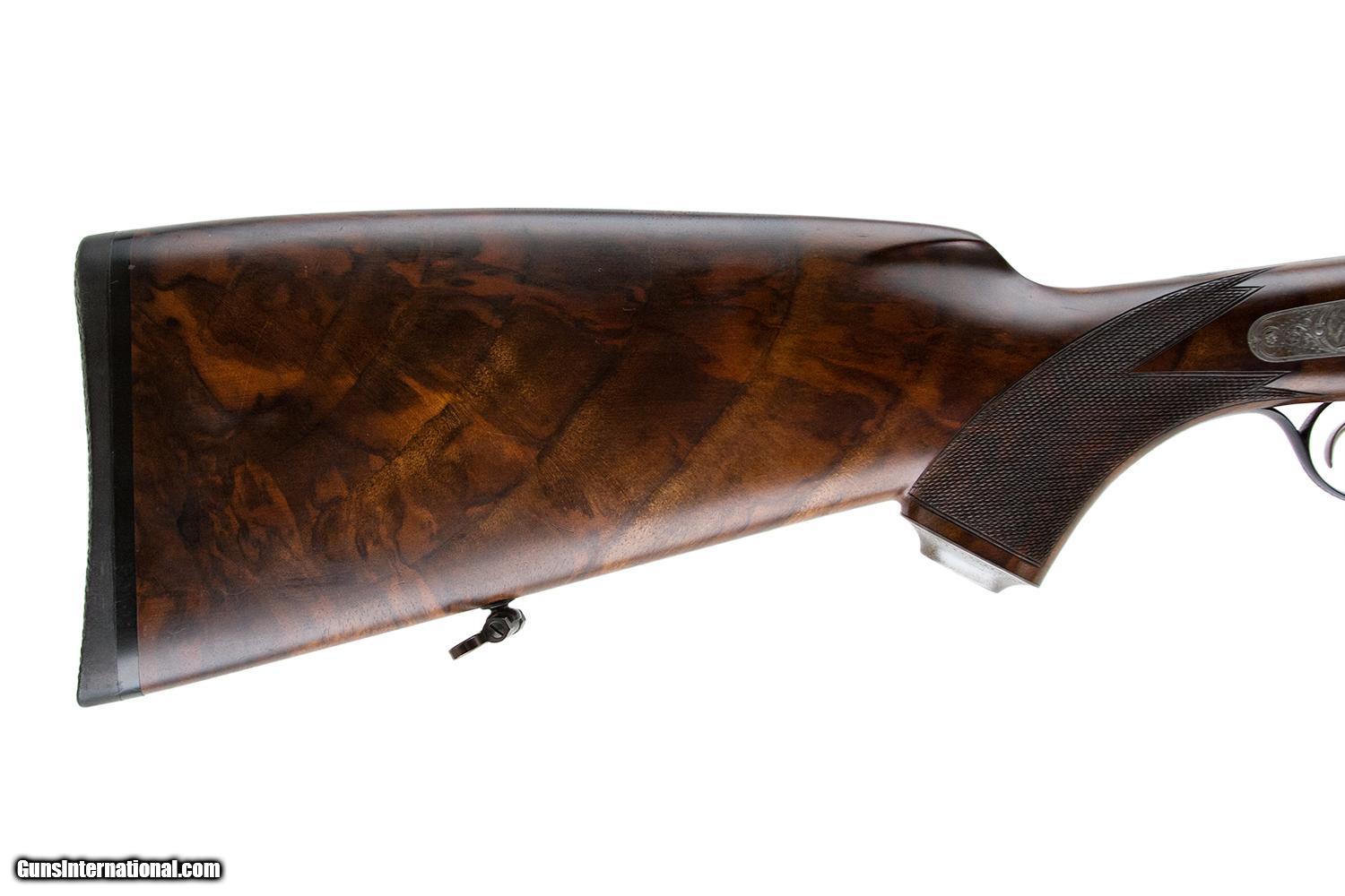 Description: FRANKODIA JAGD WURSBURG 22 HORNET ON THE TOP 7X65R ON THE BOTTOM WITH A FULL LENGTH SOLID TOP RIB 25" BARREL WITH A SCHMIDT BENDER 3X12 SCOPE IN QUICK DETACH MOUNTS DOUBLE TRIGGERS WITH A SET TRIGGER 3 PIECE FOREARM PISTOL GRIP A REAL PIECE OF ART NEW POSSIBLY UNFIRED 8LBS 15 OZ WITH SCOPE X 14 1/4 LOP SOLD |