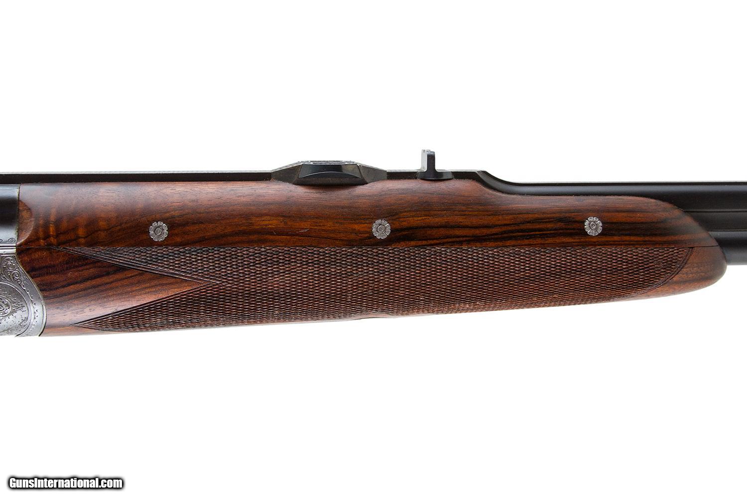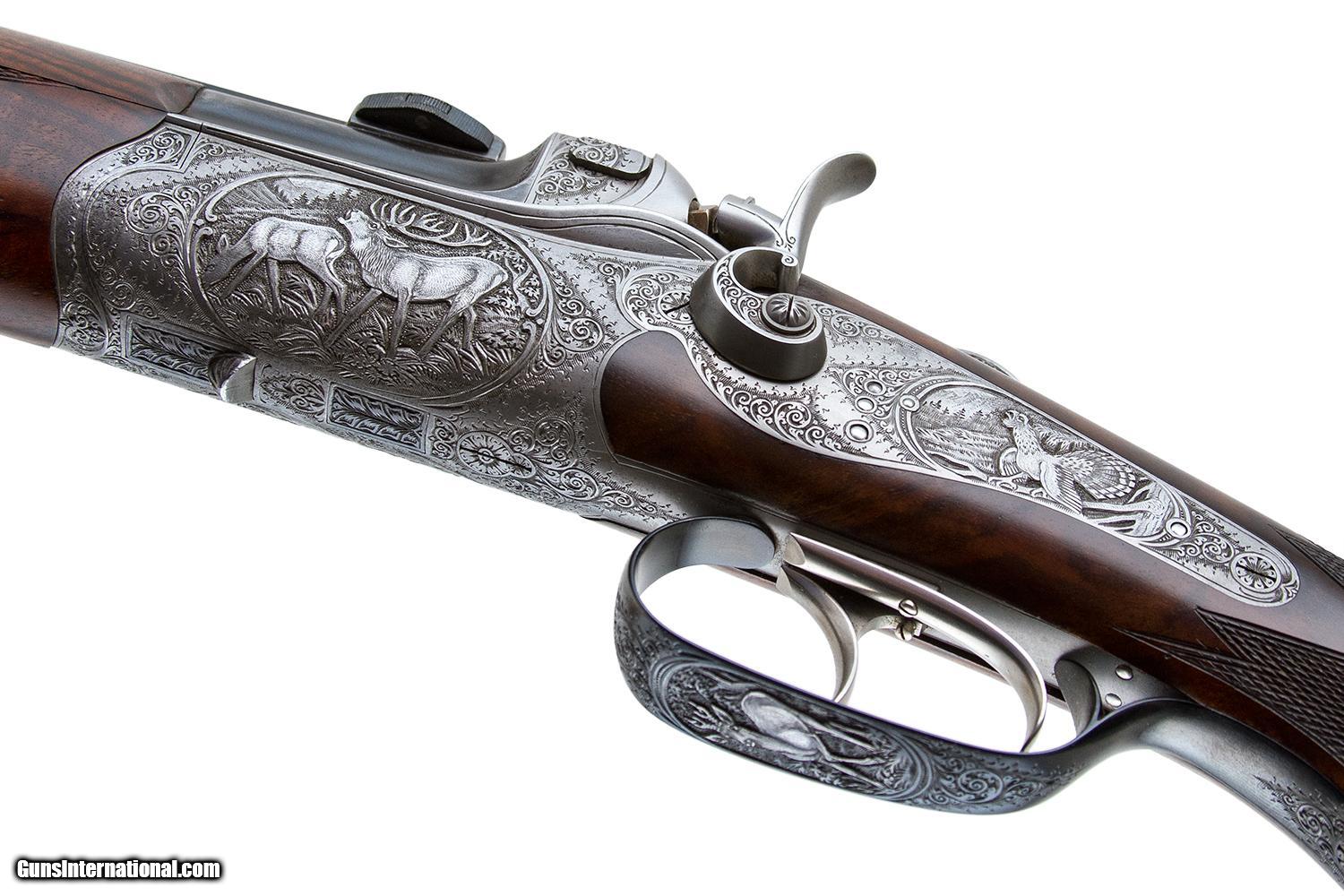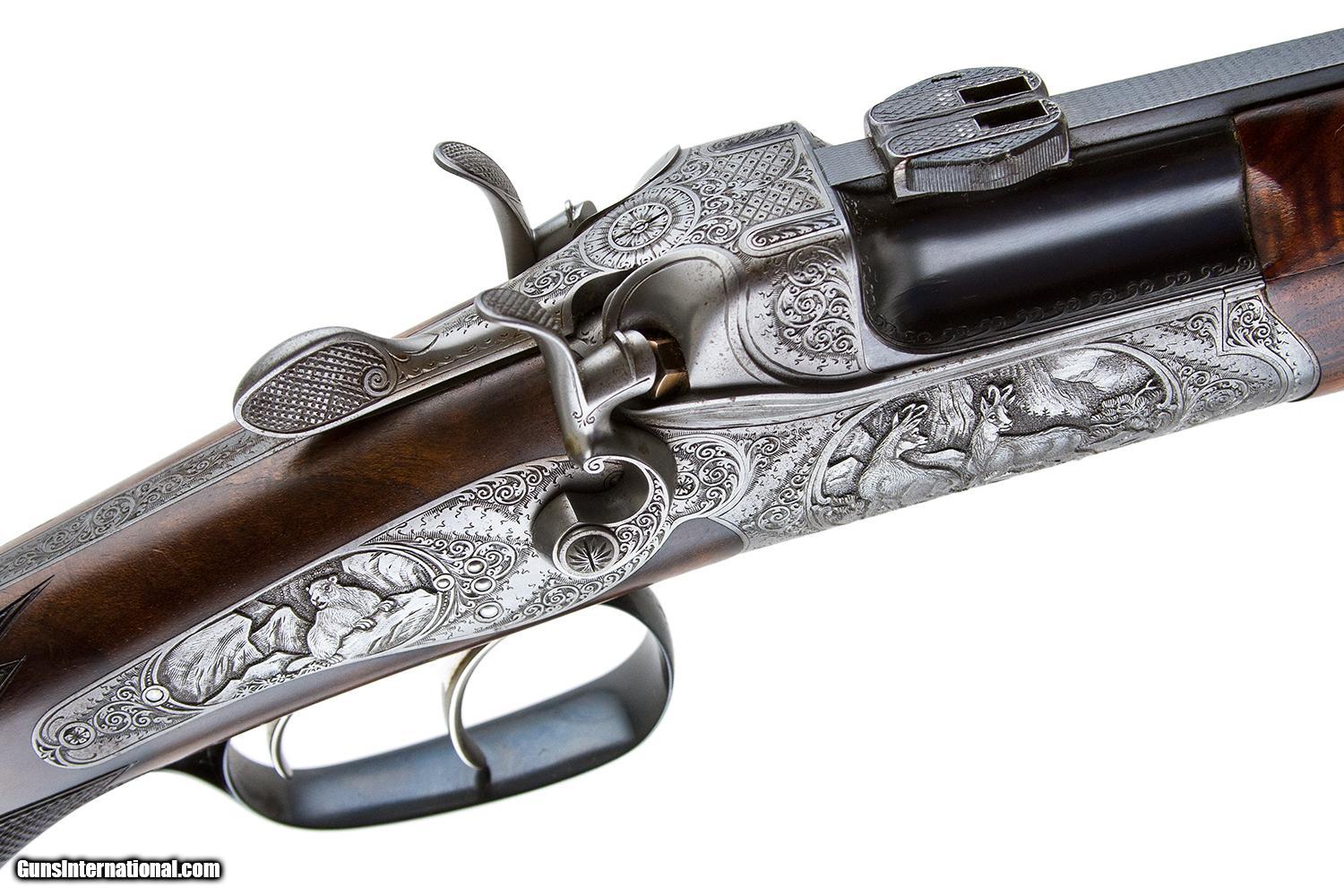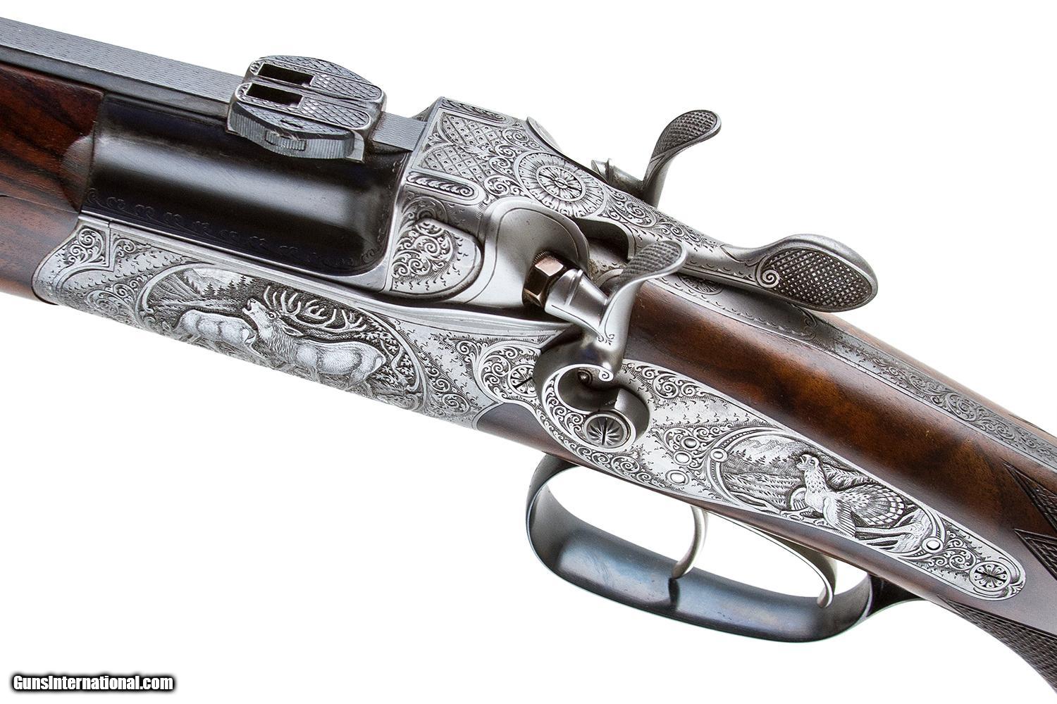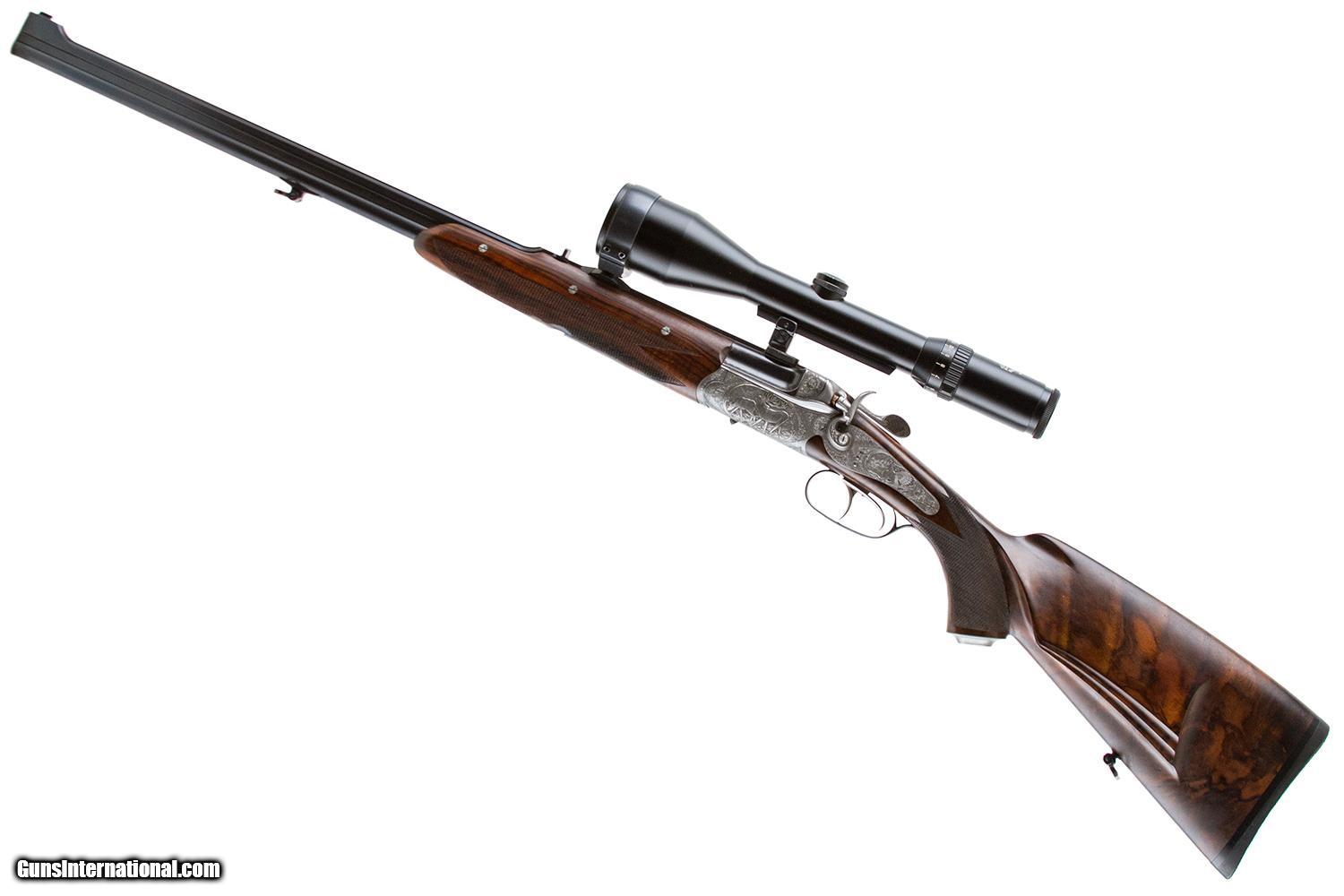 Description: FRANKODIA JAGD WURSBURG 22 HORNET ON THE TOP 7X65R ON THE BOTTOM WITH A FULL LENGTH SOLID TOP RIB 25" BARREL WITH A SCHMIDT BENDER 3X12 SCOPE IN QUICK DETACH MOUNTS DOUBLE TRIGGERS WITH A SET TRIGGER 3 PIECE FOREARM PISTOL GRIP A REAL PIECE OF ART NEW POSSIBLY UNFIRED 8LBS 15 OZ WITH SCOPE X 14 1/4 LOP SOLD |