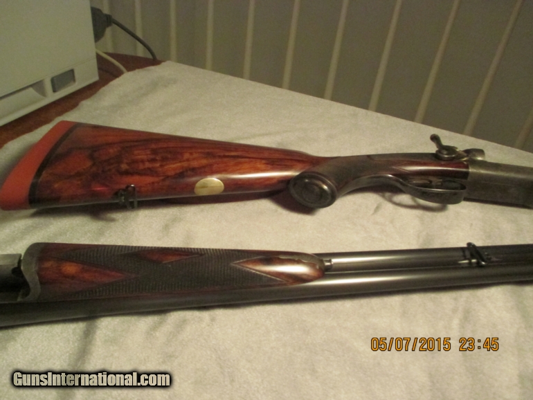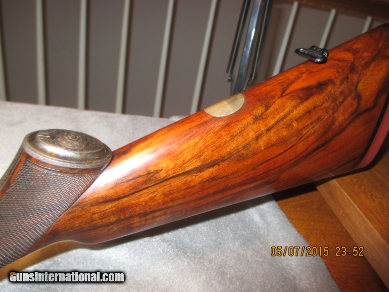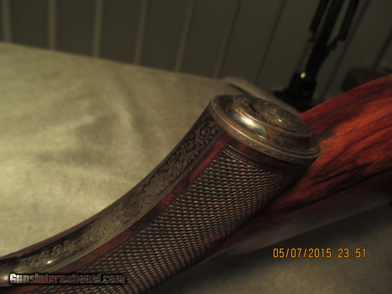 Description: Holland & Holland double barrel hammer rifle in .303 British caliber with 28" barrels. I believe a Dominion grade. Stock Length 14 11/16" (with pad) X 14 7/16" X 15 1/16" ( taken from Weapon History as provided by Holland & Holland. Year of manufacturer is 1901. Copy of quill pen order taken in 1900 is also included. Rifle in the original makers case complete with the original charge caed, original oil bottle, original cleaning rod, original cleaning tools, and original keys. Gun is as good as it could possible be with excellent bores. Was stored in climatic controled safe. Wood is that beautiful "Old World with Orange Hue." Safties lock the hammer in down position. Gun is as tight as new and all springs are as strong as new. Includes a protective outer case. Includes the firing pin nipple wrench and splendid 3/4" sling with leather covered buckles. Do they get any nicer than this? SOLD Curio/Relic: Yes Manufacturer: Holland & Holland Model: Dominian Serial Number: 17691 Caliber Info: .303 Brittish |