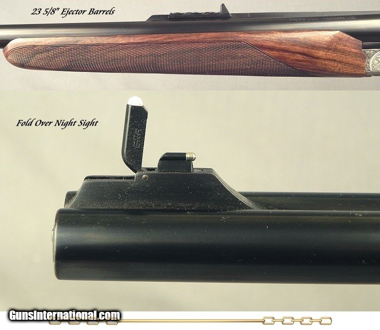 Description: #66080, Chapuis 470 N. E. Model Elan Classic (Formerly Model Brousse), New Piece, 23 5/8" Ejector Barrels with Quarter rib 1 standing & 3 folding sights, Removable blocks in the rib for scope mounts, Fold over night sight, Double triggers, Bolstered frame, Bushed strikers, Scalloped action back, Beavertail forend, Open pistol grip stock, Cheekpiece, Steel engraved grip cap, Rolled trigger guard edge with the strap to the grip cap plus 3 tiedown screws in the guard strap, Palm swell for the right hand, Very nice wood, 15 3/8" LOP over a 7/8" Decelerator pad, 10 lbs. 3 oz., 95% coverage of floral engraving with a Cape Buffalo on the bottom, The created engraving applied to this gun was done by Master Engraver Mr. Ivan Thierry, This gun is new and ready for sale in the U. S. It is cased in the molded trunk from the factory. We feel so strong about these guns mechanically that we will take care of any problems for as long as you own it, except the wood. We have had every current made boxlock double rifle in our shop, have shot them all, worked on all, had all of them apart and we know for fact that you cannot buy a better one for the money than a Chapuis. We regulate, re-joint, do triggers, re-barrel and hunt with and shoot a lot of double rifles. We flat know this is one tough, attractive, high precision, go to Africa and have money left for the second Buffalo type of gun. I challenge you to show me a better current double rifle for the money. SOLD Rifle Caliber: .470 Nitro Express |