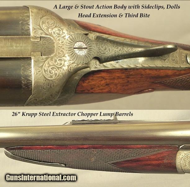 WILKINSON 470 N. E.- AN EXC & STOUT PRE-1925 LARGE ACTION- BORES as NEW- 26" EXTRACTOR CHOPPER LUMP Bbls.- SIDECLIPS- DOLLS HEAD- THIRD BITE