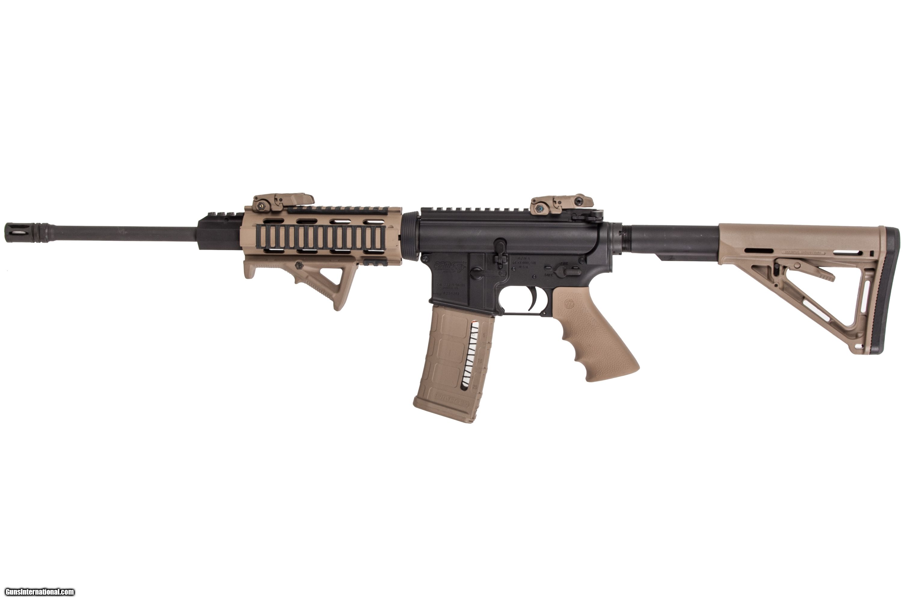 DPMS A-15 chambered in 5.56 NATO with a 16 inch barrel. This gun is in excellent condition and is covered by Dury's Lifetime Warranty.