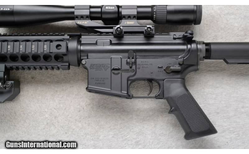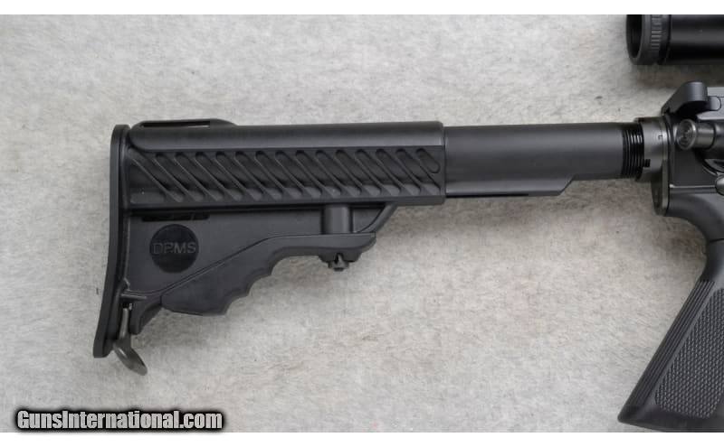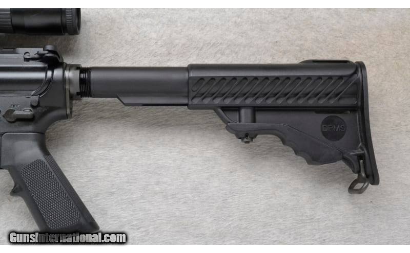 Description: This DPMS Model A-15 is a right hand semi-auto rifle in 5.56 NATO Cal. It has a 16 inch barrel plus the muzzle device and a 1/9 twist. It is outfitted with a Nikon P-223 Scope. The butt stock is adjustable/telescoping. The full pistol grip is a checkered black polymer. The forearm is a four side accessory rails and vent holes. 5.56x45MM NATO SOLD Chambers: 30 round magazine. Metal Condition: Excellent. Bore Condition: Excellent. Barrels: 16 inch barrel plus the muzzle device. 1/9 twist. Stock Dimensions: Adjustable/Telescoping. Fore End: Four side accessory rails and four side round vent holes. Bi-Pod. Butt Pad: Textured black polymer. Weight: 9 lb. 2 oz. Sights: Nikon P-223 4-12x40 Scope. Item Location: Richfield, WI |