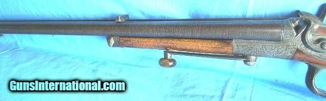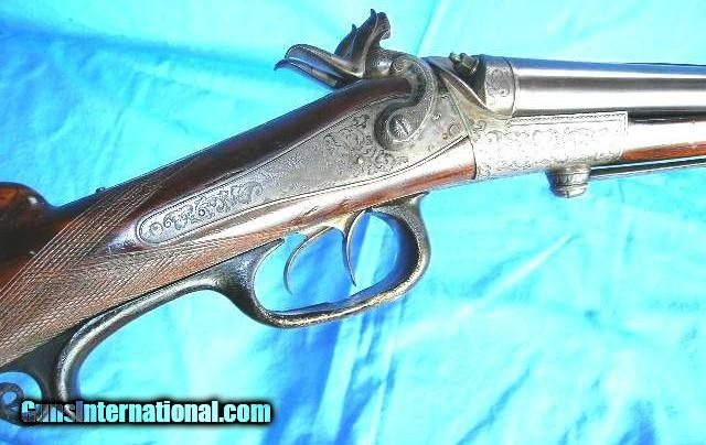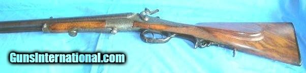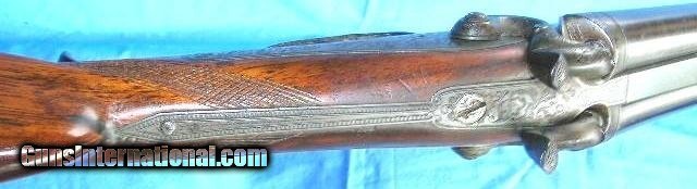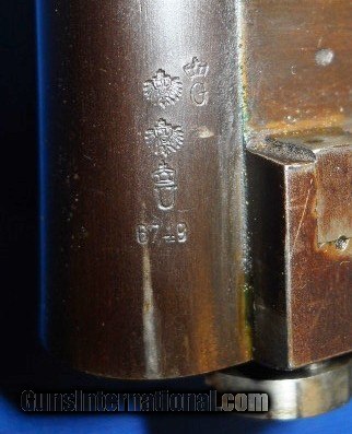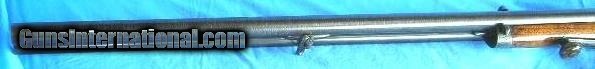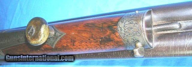 Description: MOST UNUSUAL & INTERESING CAPE GUN WITH COMBO BARREL. MARKED "R. BAUMGARLEN" BERNBURG. 43 1/4" OVERALL, 27" 10.68R mm ? STEEL RIFLE X 16g MOD. CHOKE DAMASCUS BARREL WITH FINE BRIGHT BORES & ABOUT 95% + ORIGINAL FINISH SHOWING NICE TWIST PATTERN. ADDITIONAL UNMARKED 16g 31 1/2" SxS SHOTGUN BARREL HAS SOME OF THE ORIGINAL BLUE BUT MOSTLY AN EVEN PEWTER GRAY PATINA SHOWING MUCH USE WITH VERY GOOD BRIGHT BORES, CYLINDER CHOKES WALNUT STOCK HAS GREAT FIGURAL GRAIN HAVING MINIMAL WEAR & MARKS FROM THE AGES. ANIMAL HORN TRIGGERGUARD HAS DINGS & CHIPS. LOCKS ARE CRISP WITH 2 CLICK HAMMERS AND ACTION IS TIGHT. FRAME AND OTHER METAL FEATURE QUALITY FOLIATE ENGRAVING WITH LOCKS ENGRAVED WITH FOX & PHEASANT. DIFFICULT TO DESCRIBE THE ACTION A "COFFEE MILL" UNDERLEVER RELEASES THE ACTION WHICH SLIDES FORWARD BEFORE IT BREAKS OPEN. A MASTERPIECE OF GUNSMITHING ABILITY, AS PICTURED. CALIBER MUST BE VERIFIED BEFORE USE. SHIPS DIRECT TO BUYER ANYWHERE THAT'S OK. $55.00 S&H EAST OF BIG RIVER. $60.00 BEYOND. INTERNATIONAL SHIPPING ADDITIONAL COST DEPENDING ON DESTINATION. SOLD Antique: Yes Rifle Caliber: 10.75x68mm Shotgun Gauge: 16 Gauge Manufacturer: R. BAUMGARLEN Model: CAPE GUN Bore: EXCELLENT Ejectors: EXTRACTORS Condition: VERY GOOD PLUS Metal Condition: ORIGINAL Wood Condition: VERY GOOD Bore Condition: NEAR EXCELLENT Barrel Type: COMBINATION Action: CRISP & TIGHT Triggers: DOUBLE Stock: FANCY WALNUT Fore End: WALNUT Butt Pad: ANIMAL HORN LOP: 13 3/4 Finish: ORIGINAL Sights: ORIGINAL Manufacture Date: 1880-1890 Engraving: 95% COVERAGE |