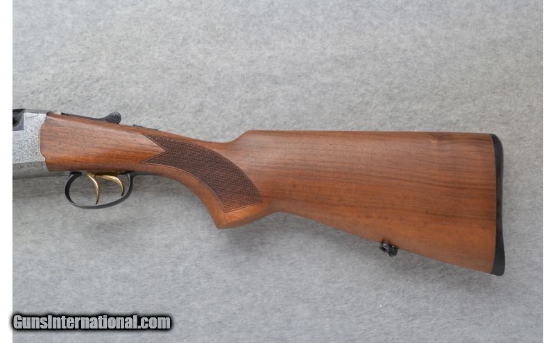 Description: This Angelo Zoli Model Over and Under is a 12 Ga. 2 3/4 inch chamber barrel over a 6.5x55 Cal. barrel rifle and shotgun combo. It has 24 3/8 inch seperated barrels with the top barrel having a solid rib. It has front and middle iron sights and is scope adaptable. A very nicely engraved coin finished receiver and double golden triggers. It comes with 3 choke tubes and choke wrench. In overall excellent condition it comes as is in its original box. SOLD Manufacturer: Made in Italy. Caliber Info: 12 GA. / 6.5x55 Cal. Chambers: 2 3/4 inch. Metal Condition: Excellent. Wood Condition: Excellent. Bore Condition: Excellent. Barrels: 24 3/8 inches with a top barrel solid rib. Triggers: Double golden. Stock: Checkered grip walnut pistol grip. Stock Dimensions: LOP 14 1/2 inches. Fore End: Checkered grip walnut. Butt Pad: A. Zoli horizontal grooved black plate. Weight: 7 lbs. 7 oz. Sights: Raised blade front. Folding notch middle. Scope adaptable. Chokes: Tubes. Comes with IC, IM & M. Extras: Sling Swivels. Item Location: Richfield, WI |