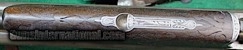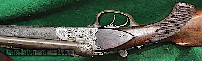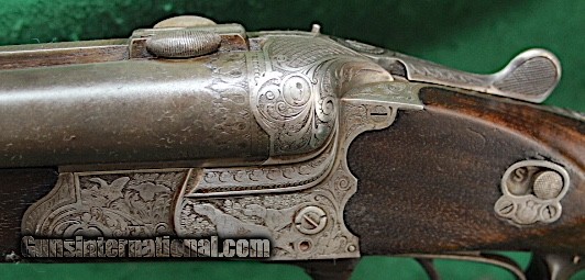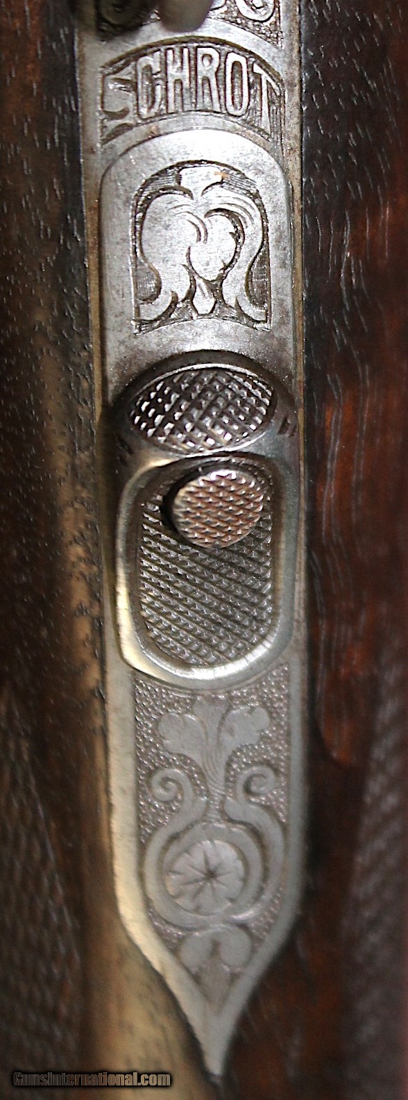 Description: German == Drilling == 16 Ga. Side by Side over 7mm Rifle == 26.5 in Length == Hammerless Boxlock == Numbers Match == Nitro Proofs == European Style Sling Swivels w/ original Leather Sling == Featured Stocks with CheekPiece, Chip & Break free == Tight Action == High Relief Engraving with name "SCHROT" Embossed == Bores Clean, shining 95% == Blued surfaces turning to attractive Patina == Horn Engraved pistol grip cap, and Trigger Guard, which has small split at screw == Original Horn Butt Plate in Basket Weave Style Casting == Engraved Trap Door on upper comb which holds 4 rounds == Flip up Rifle Sights == Multiple Proof Stampings on usual surfaces ,== Additional pictures available upon request == Has Name " HANNOVER " on left barrel & " ADOLF LOESCHE " on right barrel == Relief Engraving is high Excellent with top of the line detailing of Game Scene's === C & R will suffice == Will consider Trades, ( No AR's or Poly ) == sold asisfound === If insurance desired Add 1.50 per hundred == 35.00 shipping East Coast, 40.00 Mid West & West Coast == NO REFINISH or RESTORATION , all ORIGINAL ---- SALE PENDING ===== SOLD Antique: Yes |