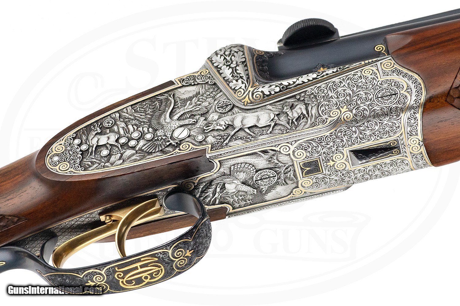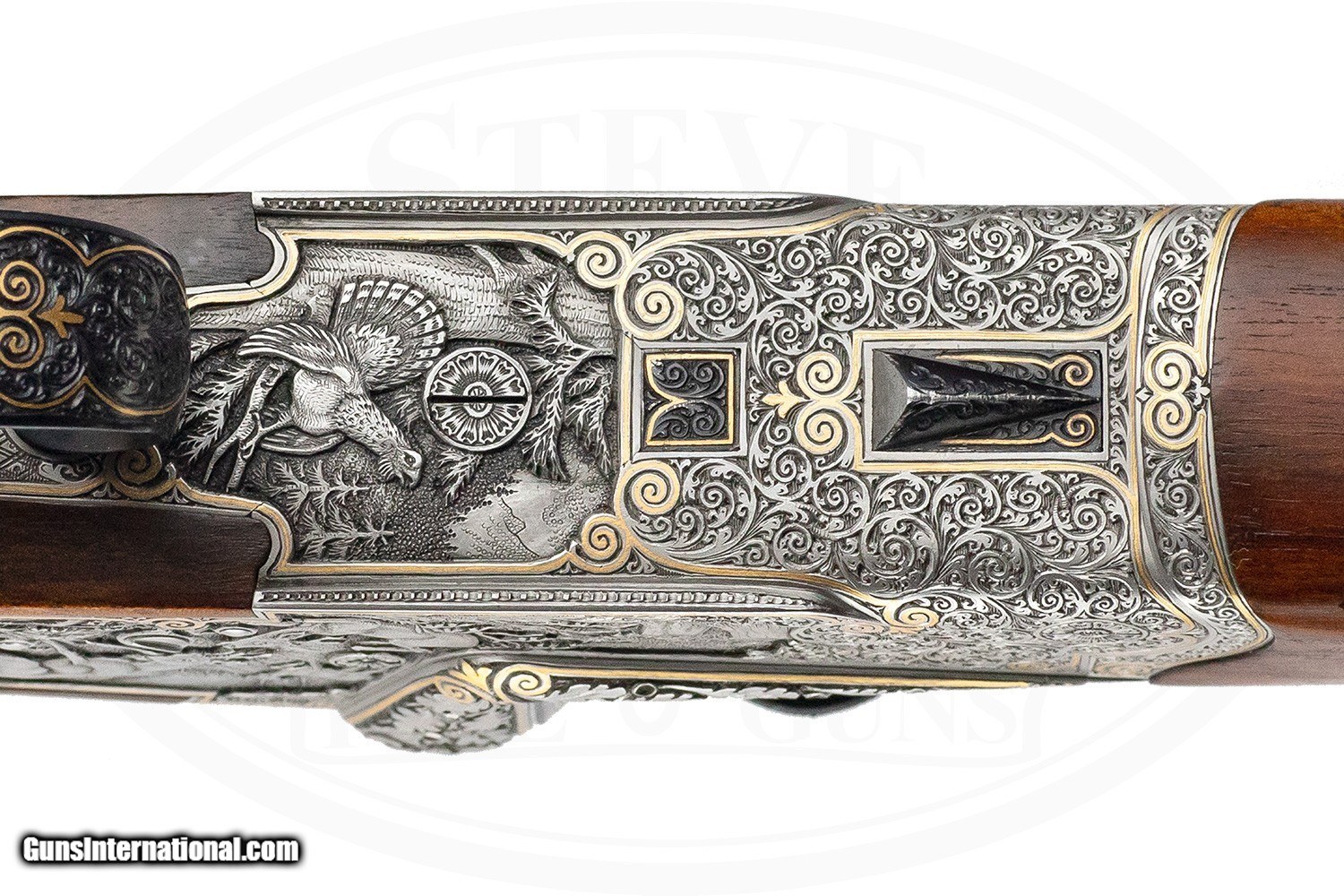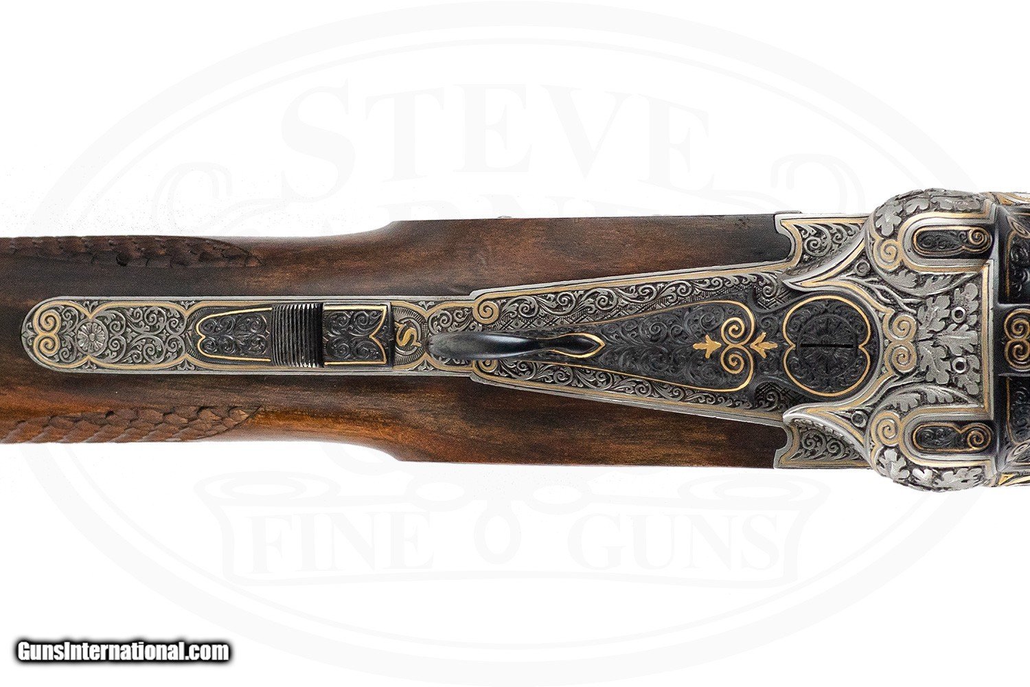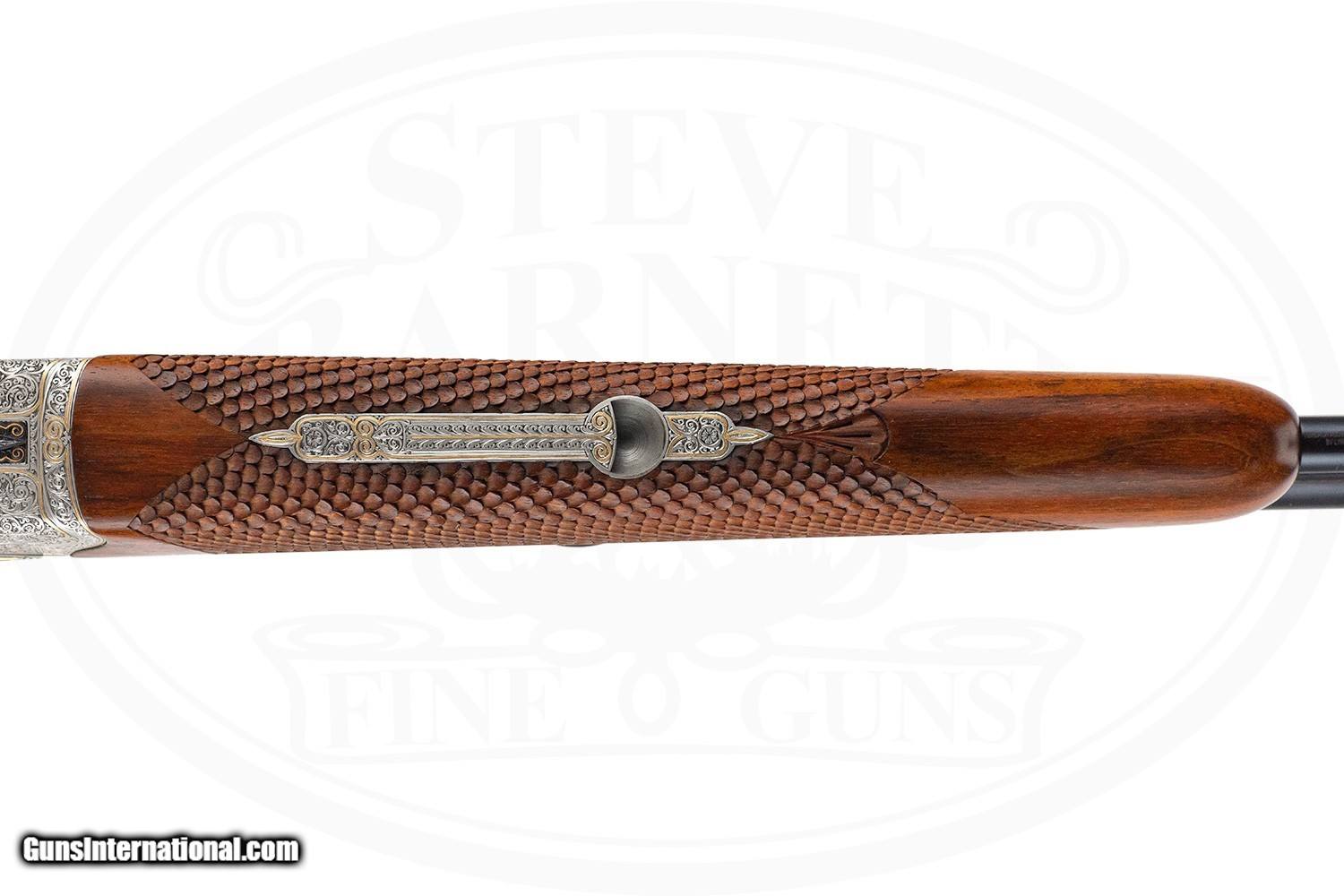 Description: SN# 19XXX PROOFED 1987 ENGRAVED AND GOLD INLAID 25 5/8" BOHLER RASANT STEEL BARRELS WITH RAMPED FRONT SIGHT AND FLIP UP REAR CLAW MOUNT ZEISS DIAVARI-Z 1,5-6X42 T* SCOPE EJECTOR DOUBLE SET TRIGGER TANG SAFETY FISH SCALED CHECKERED FIELD FOREARM RAISED CHEEKPIECE SLING SWIVELS WHITE LINE RECOIL PAD GUN IS IN EXCELLENT CONDITION WITH LIGHTEST OF HANDLING TO WOOD AND METAL FINSIHES FROM CARFEUL STORAGE AND LIGHT USE 8BLS 12 OZ 14" LOP Price: $12,500.00 Buy Now Contact Seller |