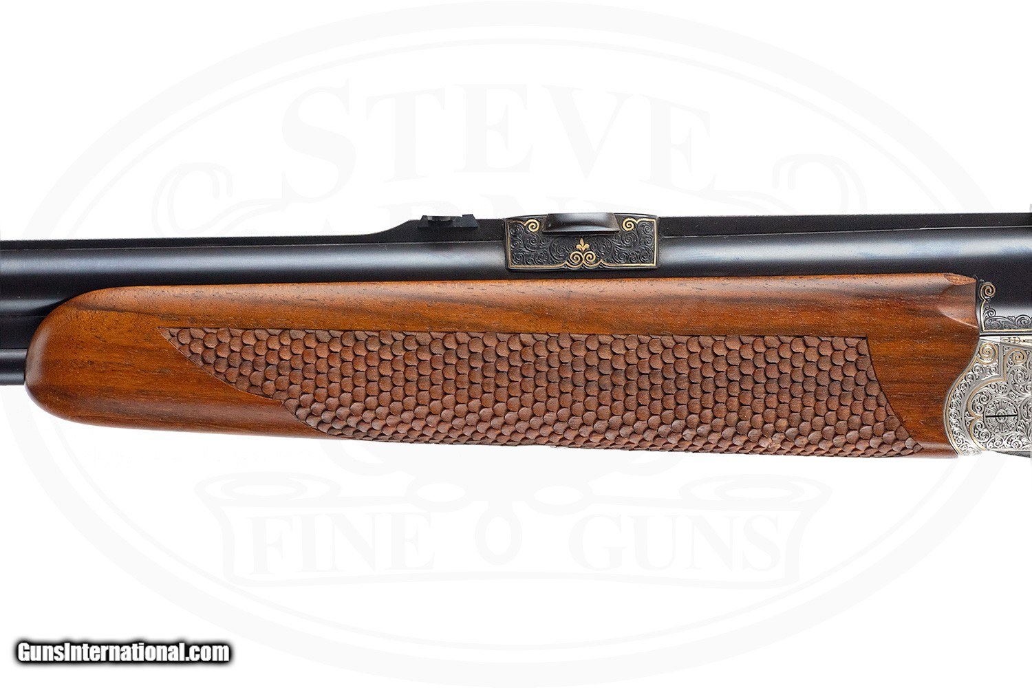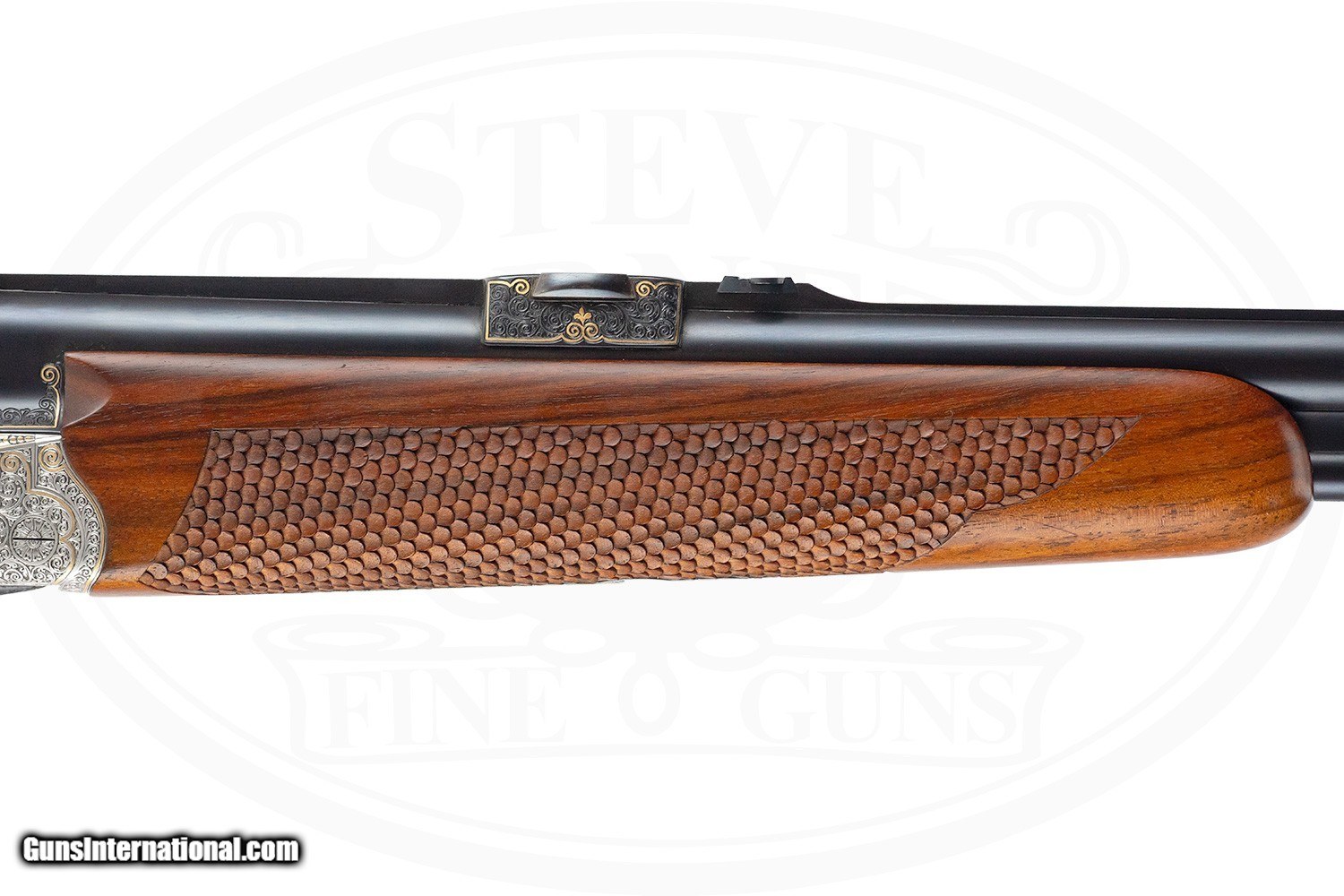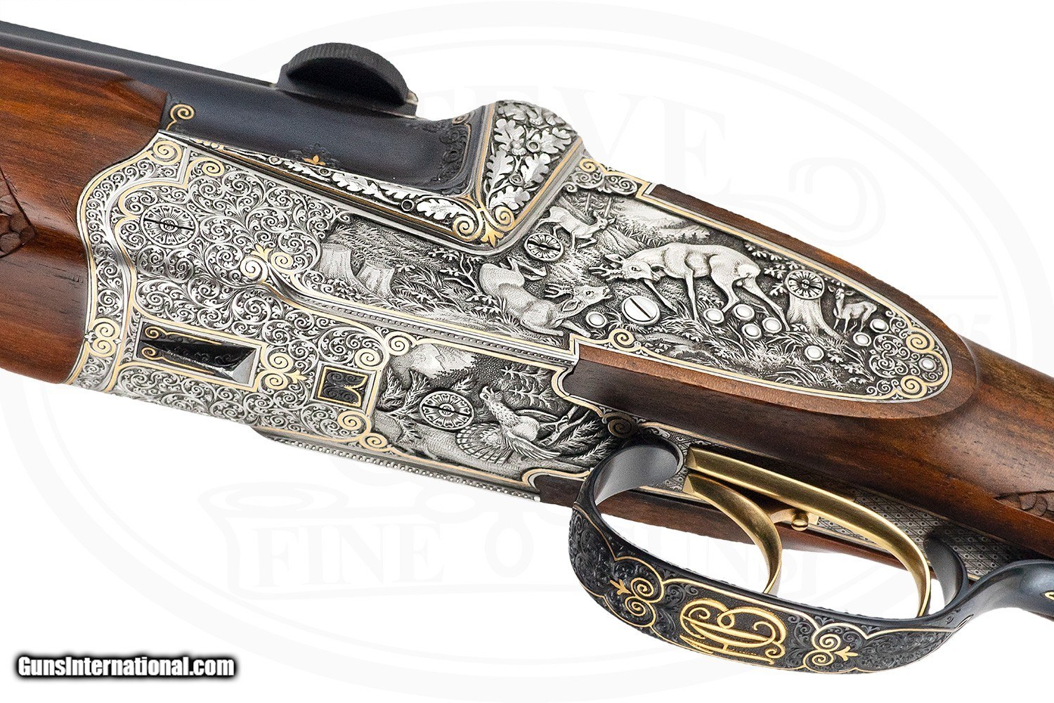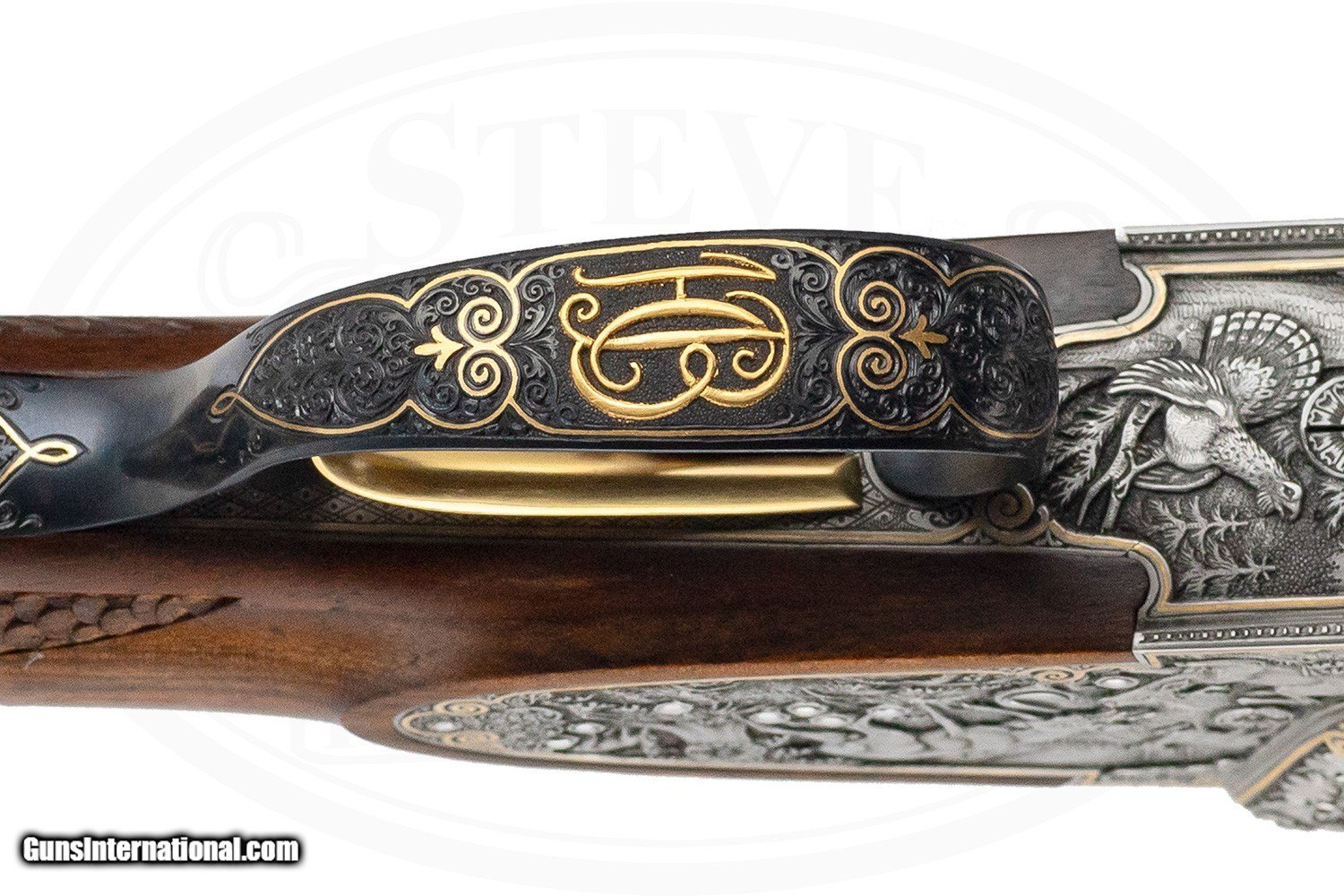 Description: SN# 19XXX PROOFED 1987 ENGRAVED AND GOLD INLAID 25 5/8" BOHLER RASANT STEEL BARRELS WITH RAMPED FRONT SIGHT AND FLIP UP REAR CLAW MOUNT ZEISS DIAVARI-Z 1,5-6X42 T* SCOPE EJECTOR DOUBLE SET TRIGGER TANG SAFETY FISH SCALED CHECKERED FIELD FOREARM RAISED CHEEKPIECE SLING SWIVELS WHITE LINE RECOIL PAD GUN IS IN EXCELLENT CONDITION WITH LIGHTEST OF HANDLING TO WOOD AND METAL FINSIHES FROM CARFEUL STORAGE AND LIGHT USE 8BLS 12 OZ 14" LOP Price: $12,500.00 Buy Now Contact Seller |