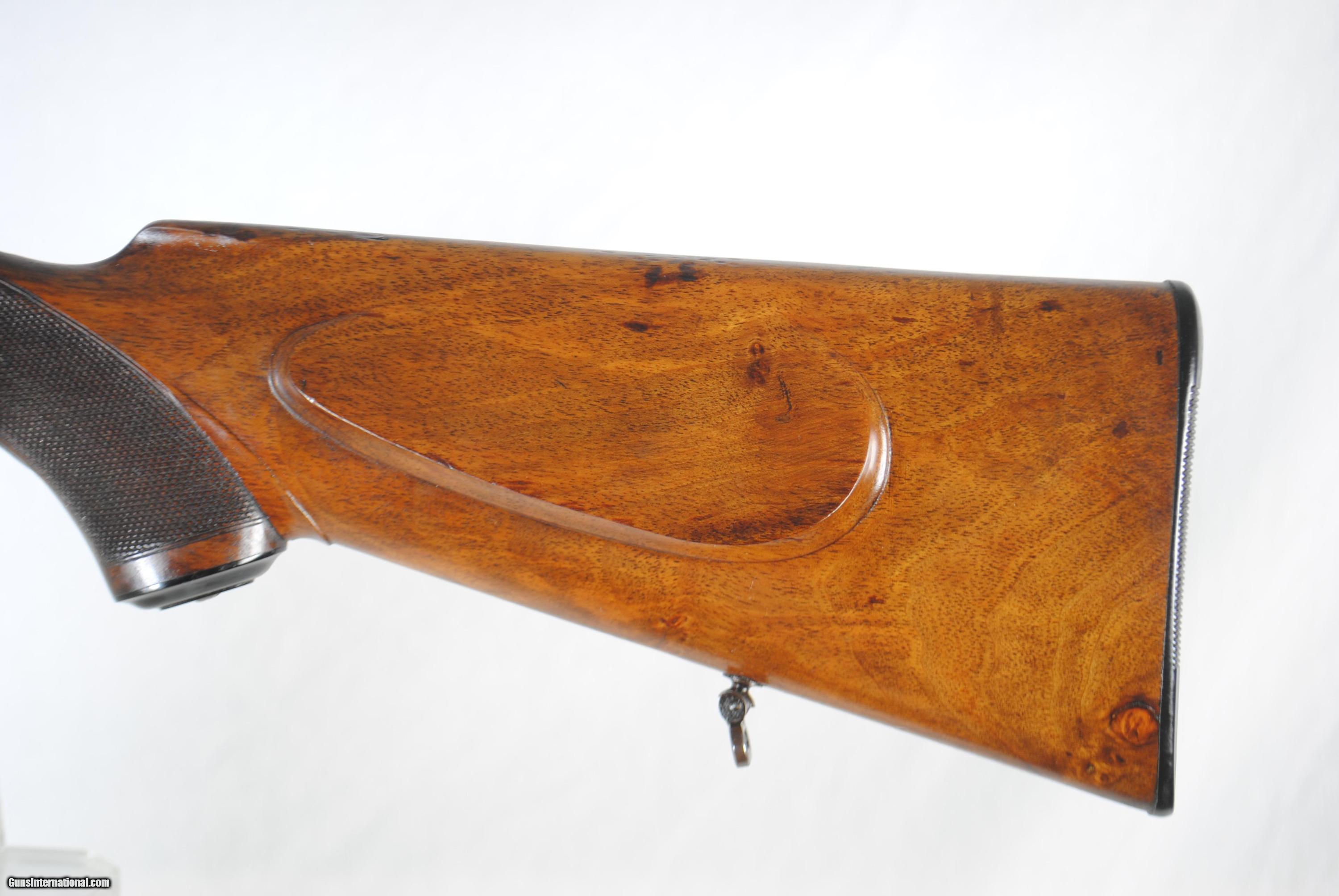Description: Modern drilling by long time German maker Burgmuller & Sonne in Kreiensen, Germany. Appears to be a post WWII made in the early 1950's. Excellent condition with light hunting use. Barrels are 23 1/2" in 16/16/8x57RS. All Nitro Proofed of course. Shotgun chambers as original at 2 3/4". Chokes are light Mod and Full. Mirror bores. Trigger plate with rifle barrel cocking on top tang. Trigger pull adjustment on front trigger. Claw mounts and Hensoldt 6 x 42 Scope. Post and reticle clear optics. Double underbite and Greener style third fastener. Gun is tight and face. Weight of gun without the scope is 7LBS 11 1/4 OZ. Scope weight is 1 LB 1/8 OZ. C&R eligible. LOP is 14 1/4". Shipping is $40. For inquiries please call Guy - 407-721-3748 SOLD |
