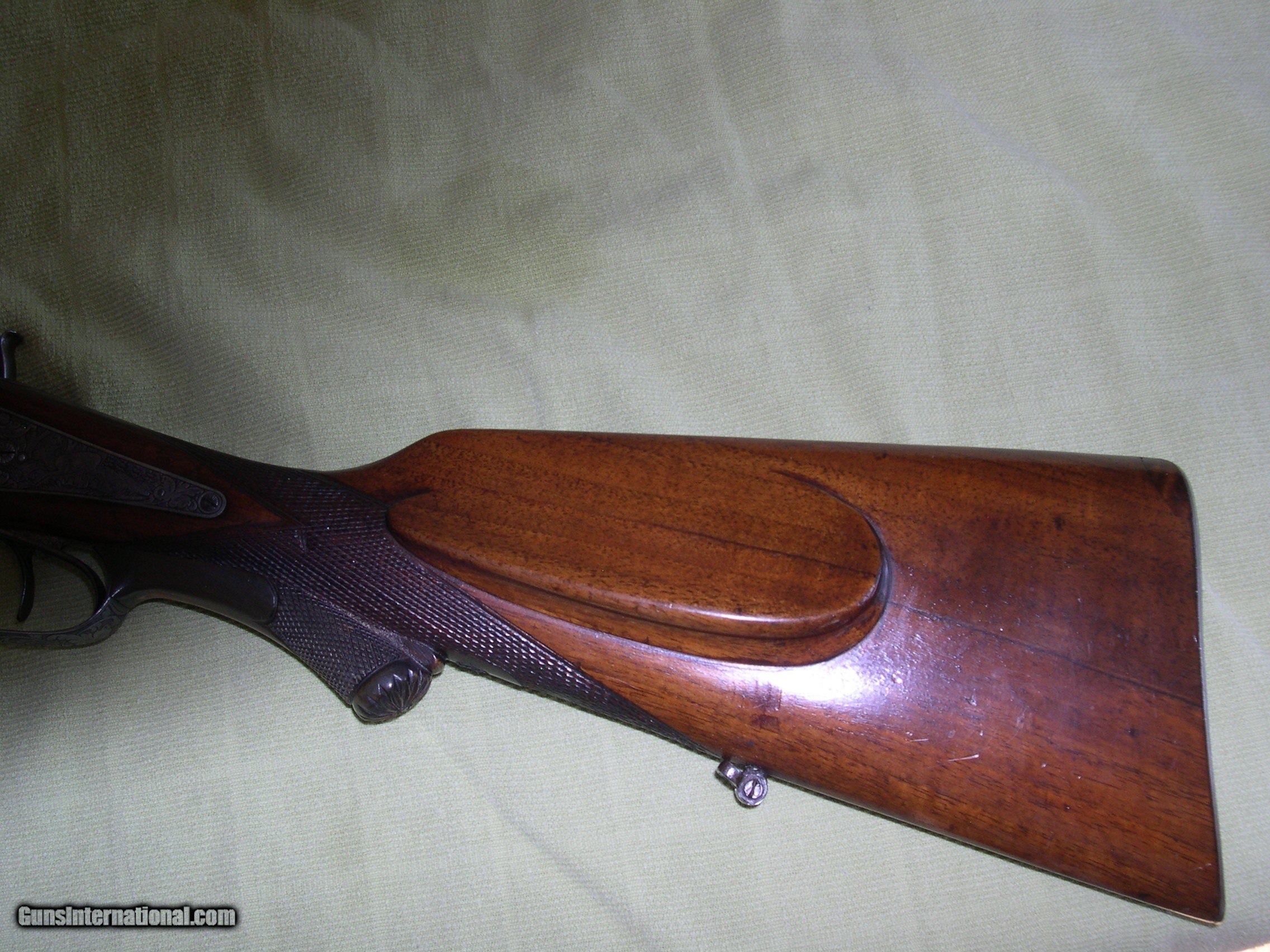 Description: SALE PENDING CARL TELCH 16 GAUGE AND 43 MAUSER CAPE GUN WITH SIDELOCKS AND REBOUNDING HAMMERS This is a nice early cape gun in 16 ga and 43 Mauser or 11.15x60 Mauser. The action is very nicely engraved fully covered in oak leaf a nice buck on 1 side and a doe on the other. It is a underlever gun that locks up real tight the lettering and engraving on the barrels are silver enlayed and the barrel looks as though it was recently blued. The stock is nice and doesn’t look like it has been redone with a nice steel butt plate and horn trigger strap.. $1950.00 plus shipping. Call Bud at 509-465-8406 for more pictures or information. FFL not required. The 11mm Mauser was a black-powder cartridge developed for the Mauser Model 1871 rifle, and used later in the 71/84 variant. It is no longer in production, however it is available from custom loaders (Buffalo Arms) and handloading can be done to replenish spent ammunition. Wikipedia SOLD |
