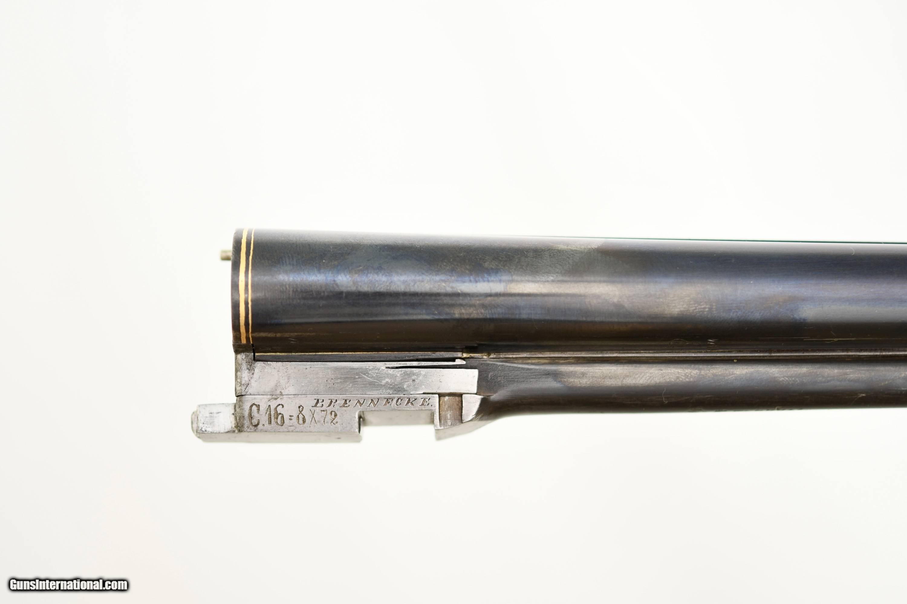 Why this is special A two-barrel set where one set is a double rifle is extremely rare — this is both a beautiful collector’s piece and a fully functional hunting rig. Exceptional engraving, excellent wood, and strong action make it a standout. Curio/Relic: Yes Rifle Caliber: 8x72mmR Shotgun Gauge: 16 Gauge Price: POR Contact Seller |