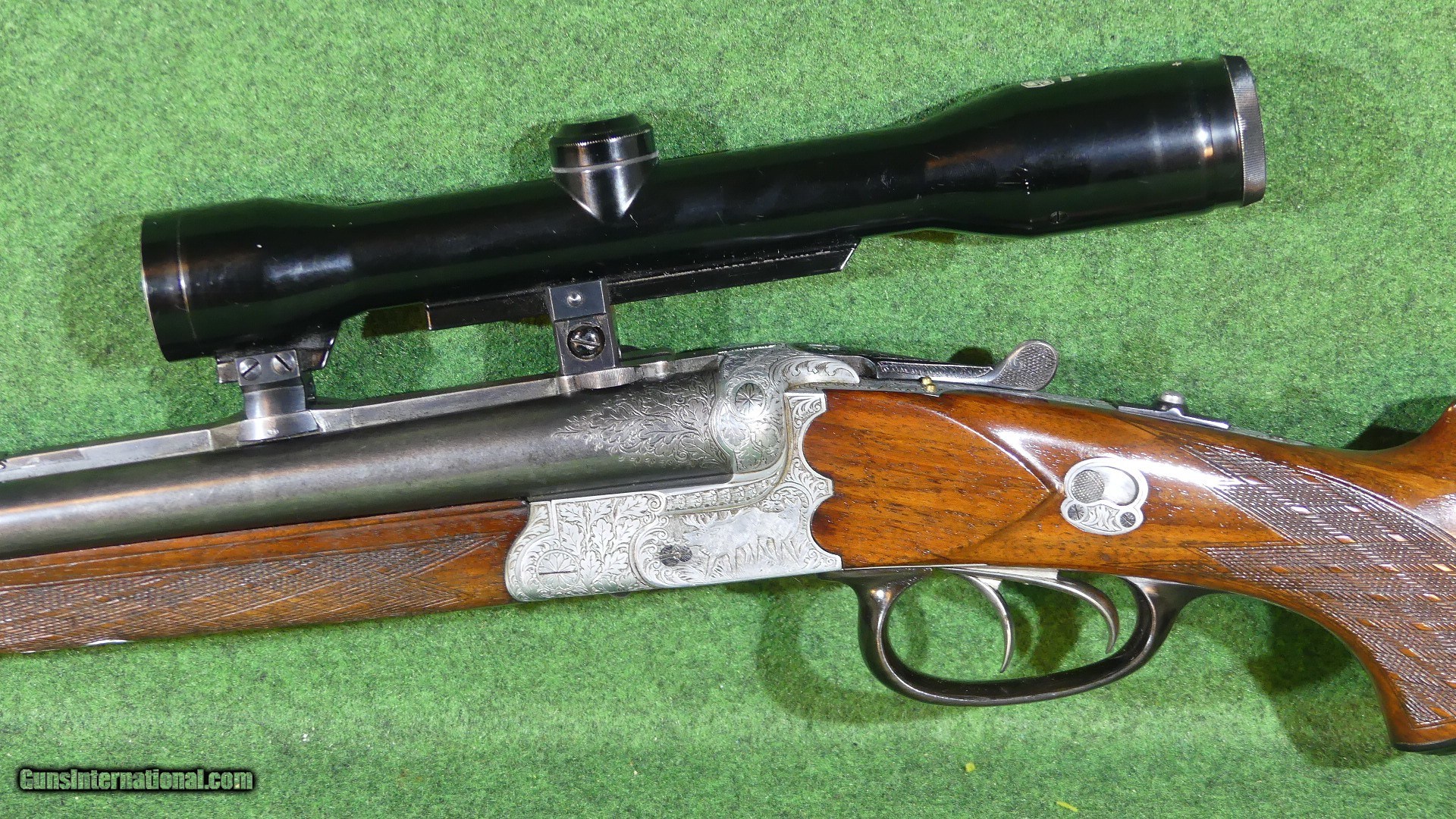 Description: Welcome to T & G German Gun Imports! Tobi and George love traditional European hunting weapons. These valuable guns were manufactured in the 1950s through the 1990’s, when high volumes were produced in Germany and Austria. Reputable companies include Sauer & Sohn, Krieghoff, Merkel, Heym, and Ferlach. Tobi, a gunsmith and dealer located in the scenic Saurlands Region of central Germany, is a former airborne weapons specialist and officer honorably discharged in 2011 from the German Army. George is a native of Mobile, Alabama and avid outdoorsman who fell in love with German hunting traditions while serving in Heidelberg, Germany as a US Army Physician during the early 1980’s. In 2017 their unlikely connection was made and the seeds of their future partnership were planted. Restrictive gun laws in Germany and a lack of demand had sent Tobi looking for a partner willing to import these weapons into the United States, where demand is high. Unlicensed inheritors of these guns are required by law to turn them over to police unless a licensed buyer is found in a specified time. Times vary from two weeks to two months depending on the laws of each German state. Once in police custody they are melted down and destroyed. George had inherited his great, great grandfathers drilling and could not find an American gunsmith able to repair and restore it. Tobi placed a Zeiss scope with a detachable pivot mount and a 30/30 Winchester insert in his right shotgun barrel, completely refurbishing and restoring George's 1902 Hollenbeck drilling. They founded T & G German Gun Imports in 2018. Since then they have made it their mission to save these guns and give them a new life in the United States. This includes drillings with scopes, over under rifle shotgun combinations with scopes, and side by side shotguns. Since many of these weapons are in metric calibres, T & G also stocks ammuntion that can be purchased directly. They provide full service repairs for all their weapons and have a large stock of spare parts and accessories. Guns are owned by us but are still in Germany,expected to arrive in roughly 2 months, each will be engraved with 1/16 inch letters as is required by the ATF, in a visible location. In addition to the purchase price there will be an $85 fee per gun for shipping 11% excise tax, you have a full 30 days to decide if you would like a full refund excluding the shipment costs within the United States. You are permitted to shoot the weapon as well as examine the action internally, provided this is done by a qualified gunsmith. Obviously if the gun is returned and damaged, the amount of the refund would be negotiable. We have ample Metric ammunition for these weapons that can be purchased as well and shipped, we use Sellier & Bellot and typicallyThe ammunition is in the $16-$20 plus shipping,per 20 round box ,If later you need repairs to your guns we have a qualified German gunsmith and a supply of spare parts. Please visit our webpage german-gun-Imports for a narrative of our story, “save the guns “ SOLD Manufacturer: HUGO FIRN MASTER GUNSMITH GERMANY Serial Number: 5120 Caliber Info: 8x57JRS 16GA Choke Left: full Choke Right: full Proof:Nitro: YES |