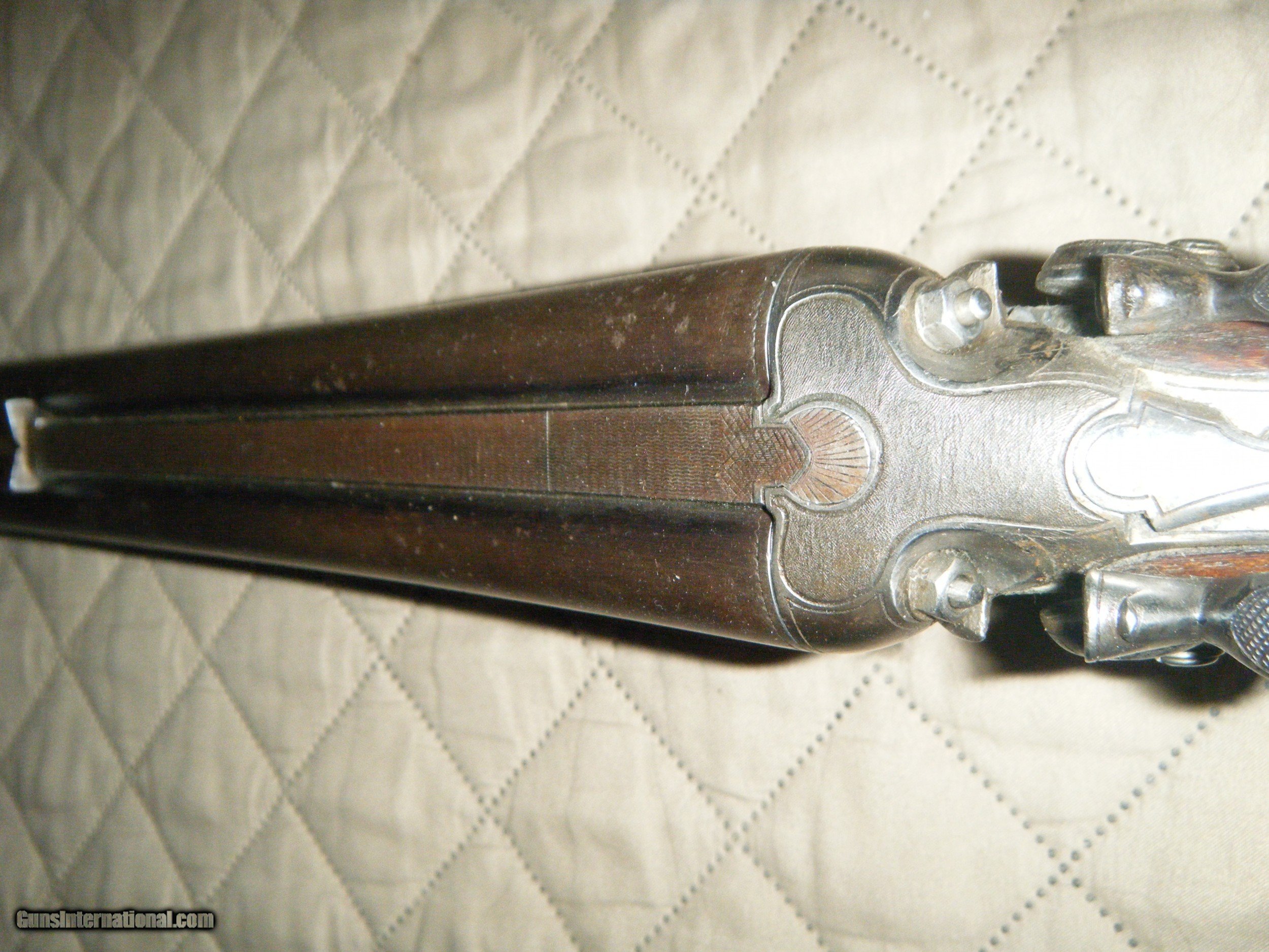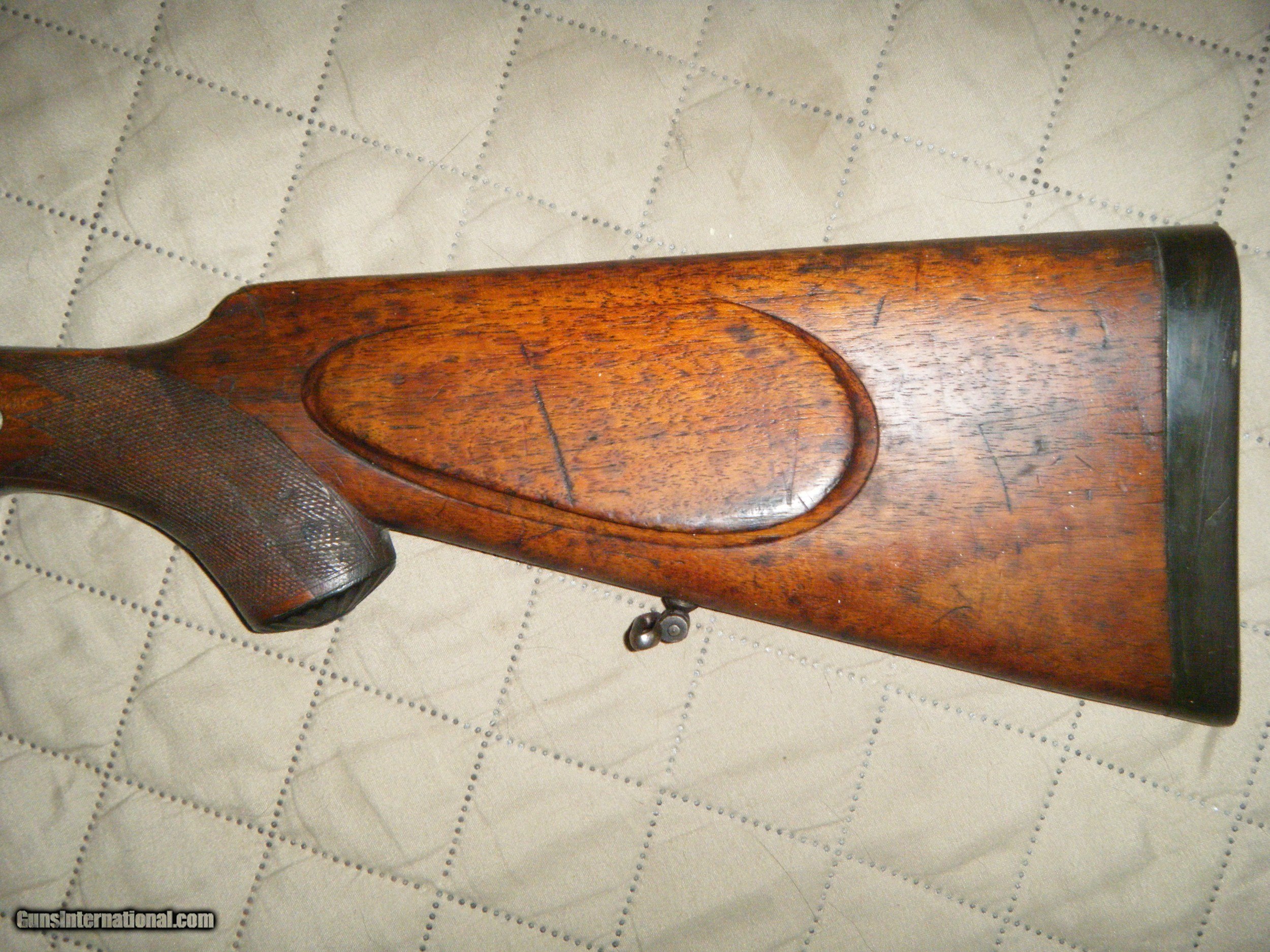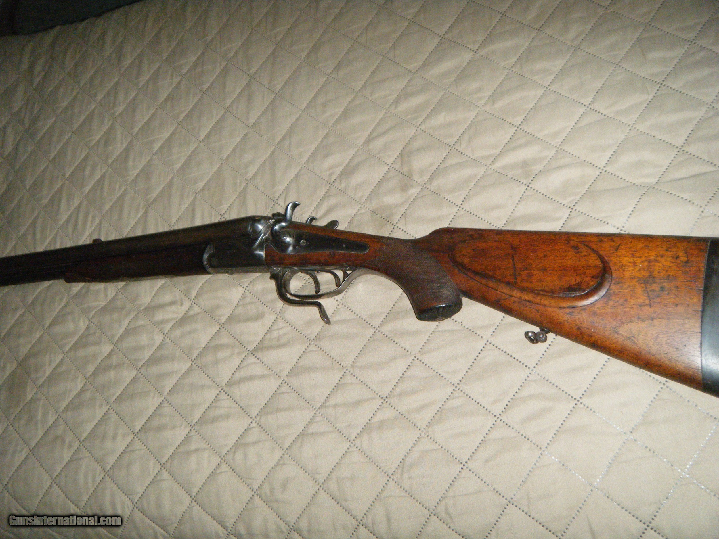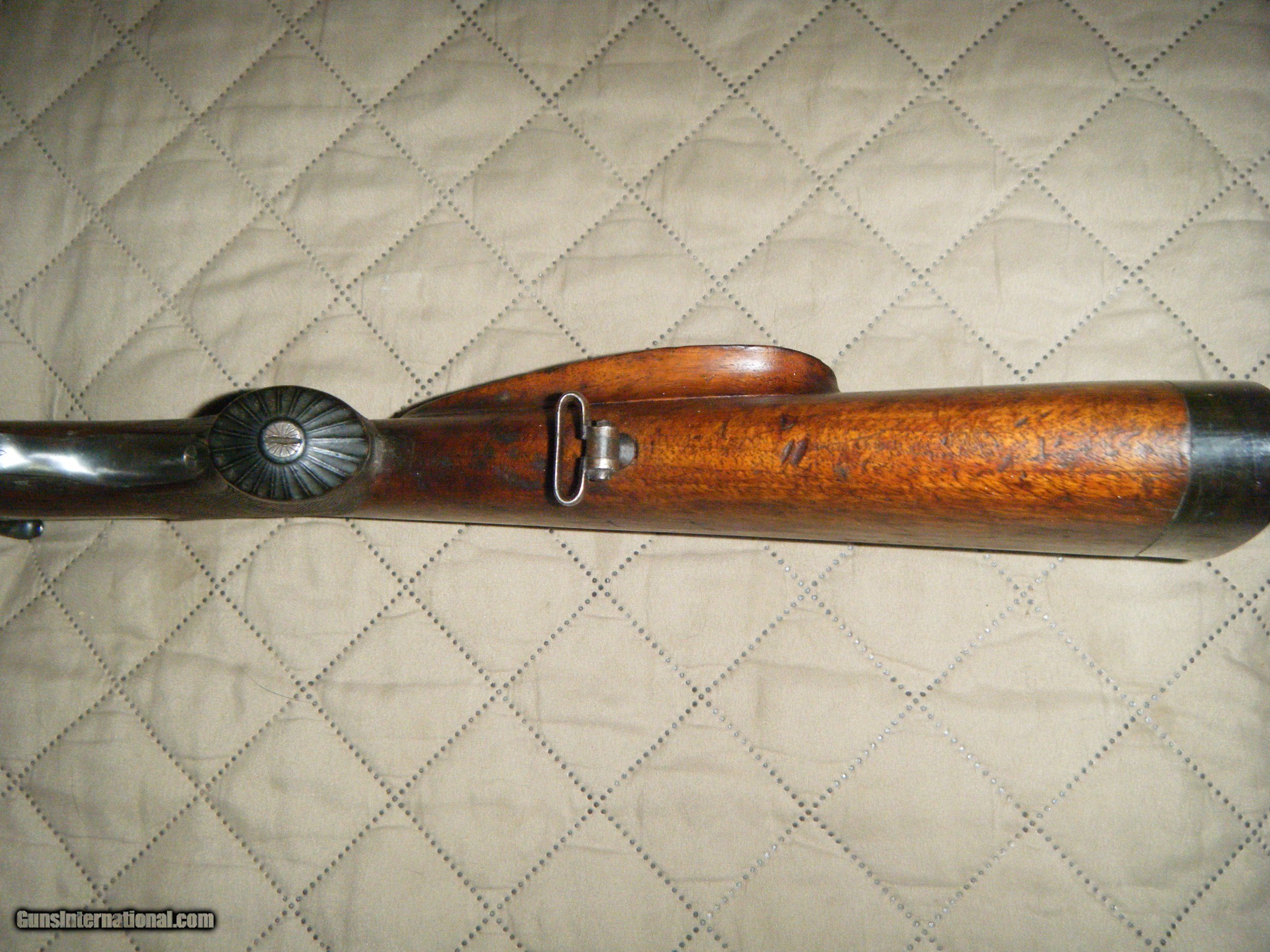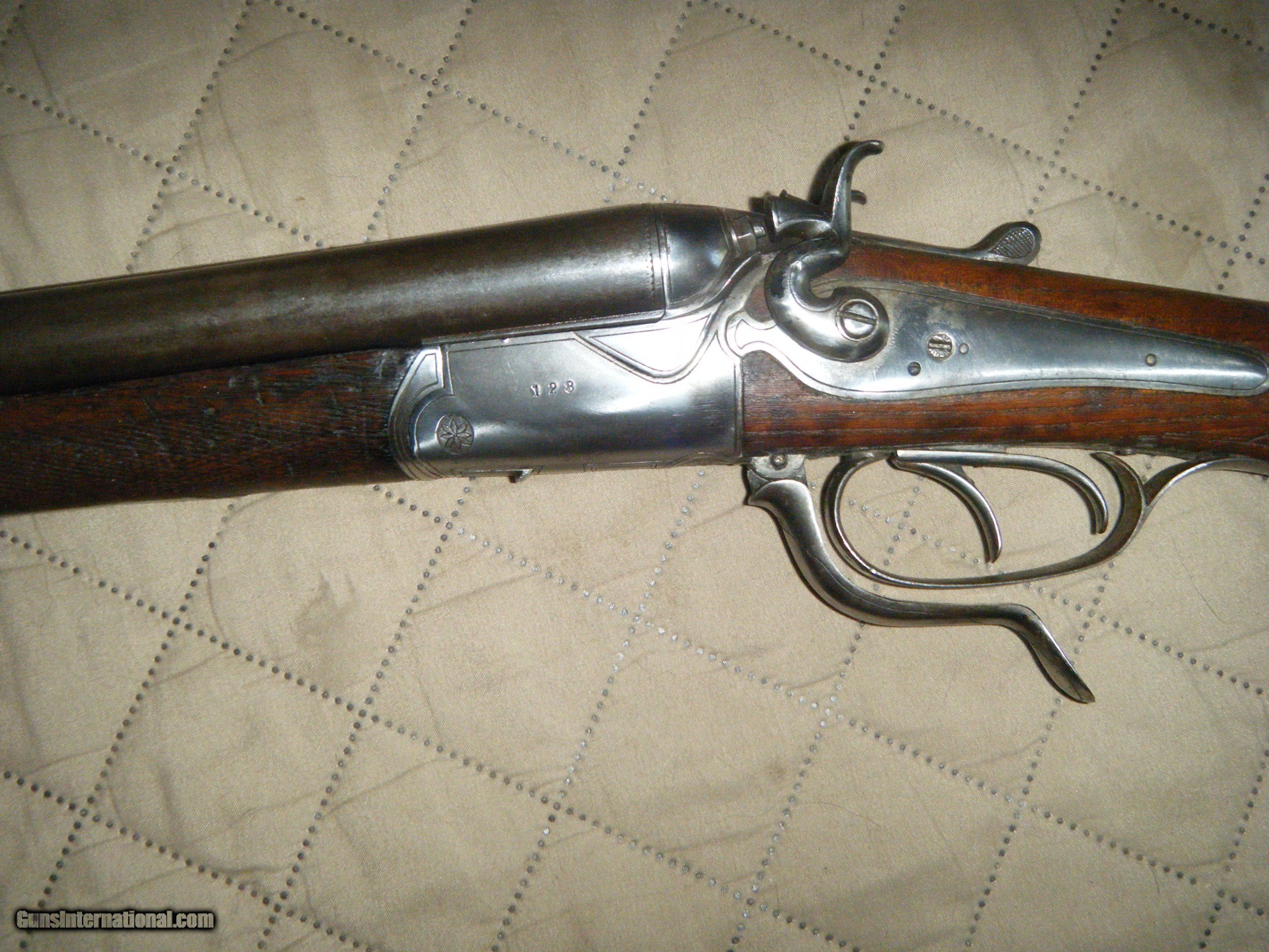 Description: Offered is drilling in what I believe is 16Ga. over 8MM x 48MM. No makers name and the caliber is my guess. Barrels are 27 1/2'. Blue is thinning and dulling with a few places of light freckling. There is a shallow dent in the right barrel that does not appear on the inside (see pictures). The shotgun bores are shiny with some very light erosion. I see no erosion in the rifle and the rifling is strong. The gun should shoot well. The wood has dings and scratches with a crack in the fore wood. I'm not sure what's going on at the top of the stock near receiver (see picture) but I don't think it's significant. It seems very good, mechanically. The right hammer fires the rifle when the top lever is moved to the left to select it. If you figure out the caliber, it should be a decent shooter. Antique so no paper work. $45 shipping. SOLD Antique: Yes Shotgun Gauge: 16 Gauge |