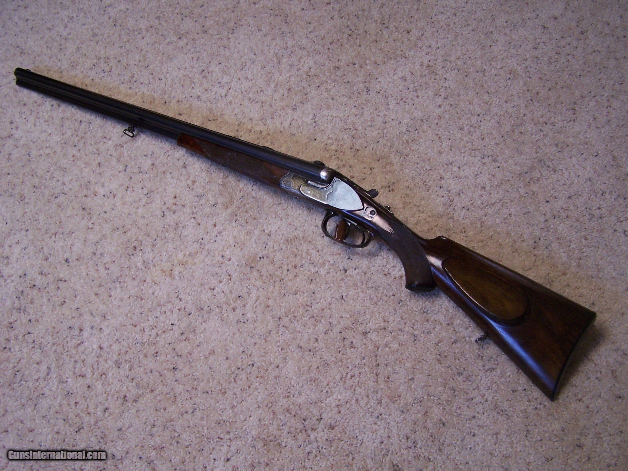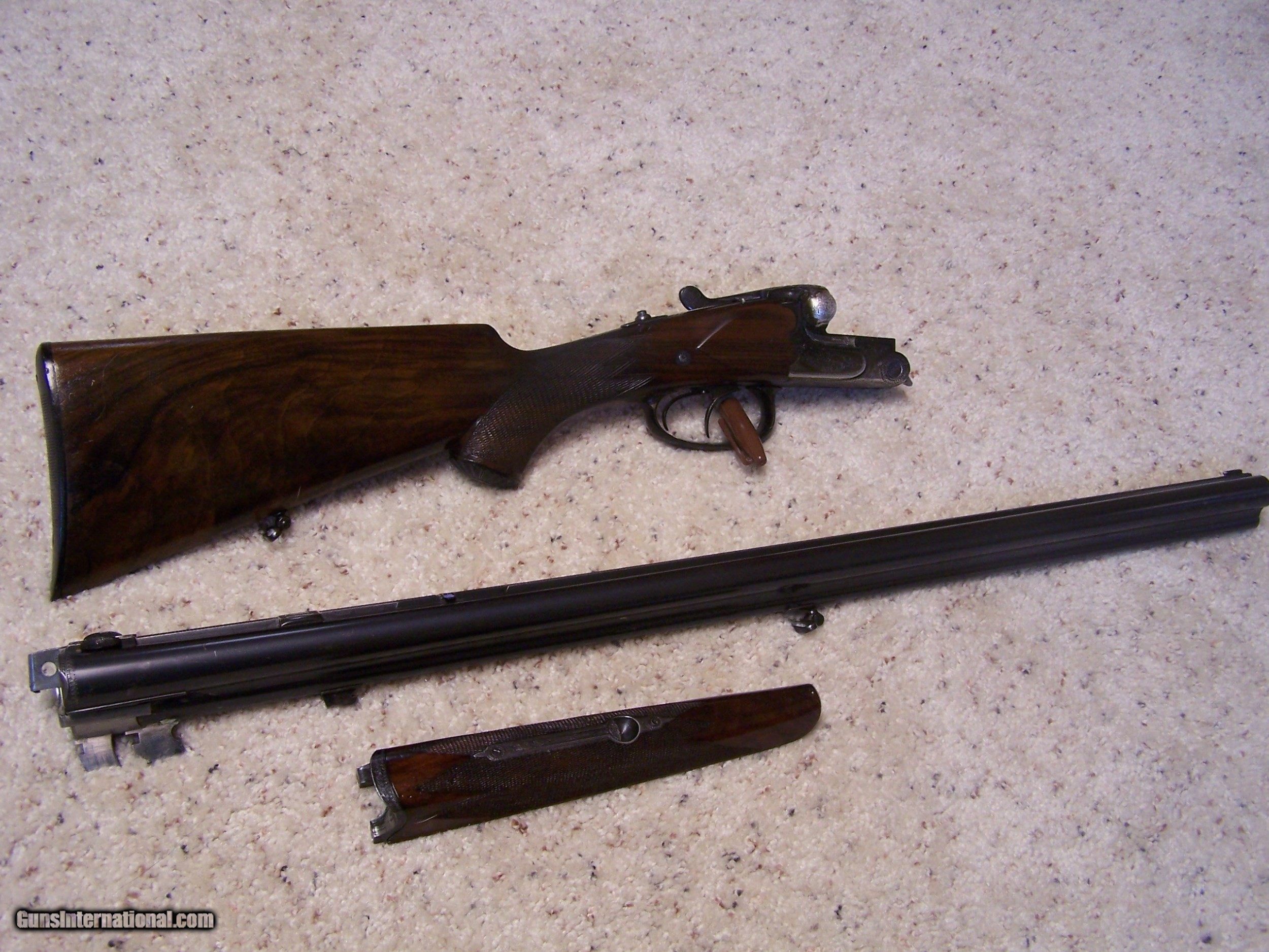 Description: Ernst Kerner Dural Drilling in excellent condition. Dural frame drillings are fairly rare and make for an extremely light and fast shooting gun. This is a pre-war gun made in November of 1935. The worksman ship is top quality with beautiful 100% fine scroll engraving;. It has a horn trigger guard, buttplate, and grip cap. This gun has a beautiful piece of walnut and is in very good condition with no chips or cracks.. The barrels ring like a bell and the bluing is in excellent condition with only minor wear at the muzzle and on the left side of the breech. There are no dents in the barrels and the bores are in great condition. The barrels are choked IM and F. The flip up front sight works perfectly. This gun weighs in at only 6 lbs. It has 25 5/8" barrels and a length of pull of 13 7/8". The stock drop at the heel is 2 1/2" and 1 1/2" at the comb. If you want a beautiful drilling to own and display or a great gun to take to the woods for grouse or big game then this is the one. Please call me at 218-729-5496 or e-mail if you have any questions at all. Thanks. Ron SOLD Manufacturer: Ernst Kerner & Co. Suhl, Germany Model: Dural Drilling Caliber Info: 8/57 jr Ejectors: none Condition: excellent Metal Condition: excellent Wood Condition: excellent Bore Condition: excellent Action: Boxlock Gauge Info: 16ga Stock: Walnut Stock Dimensions: 13 7/8 LOP Stock Comb: 2 1/2 Stock Heel: 1 1/2 Butt Pad: Horn Weight: 6 lbs Manufacture Date: 11/35 Choke Left: Full Choke Right: IM Engraving: fine scroll |