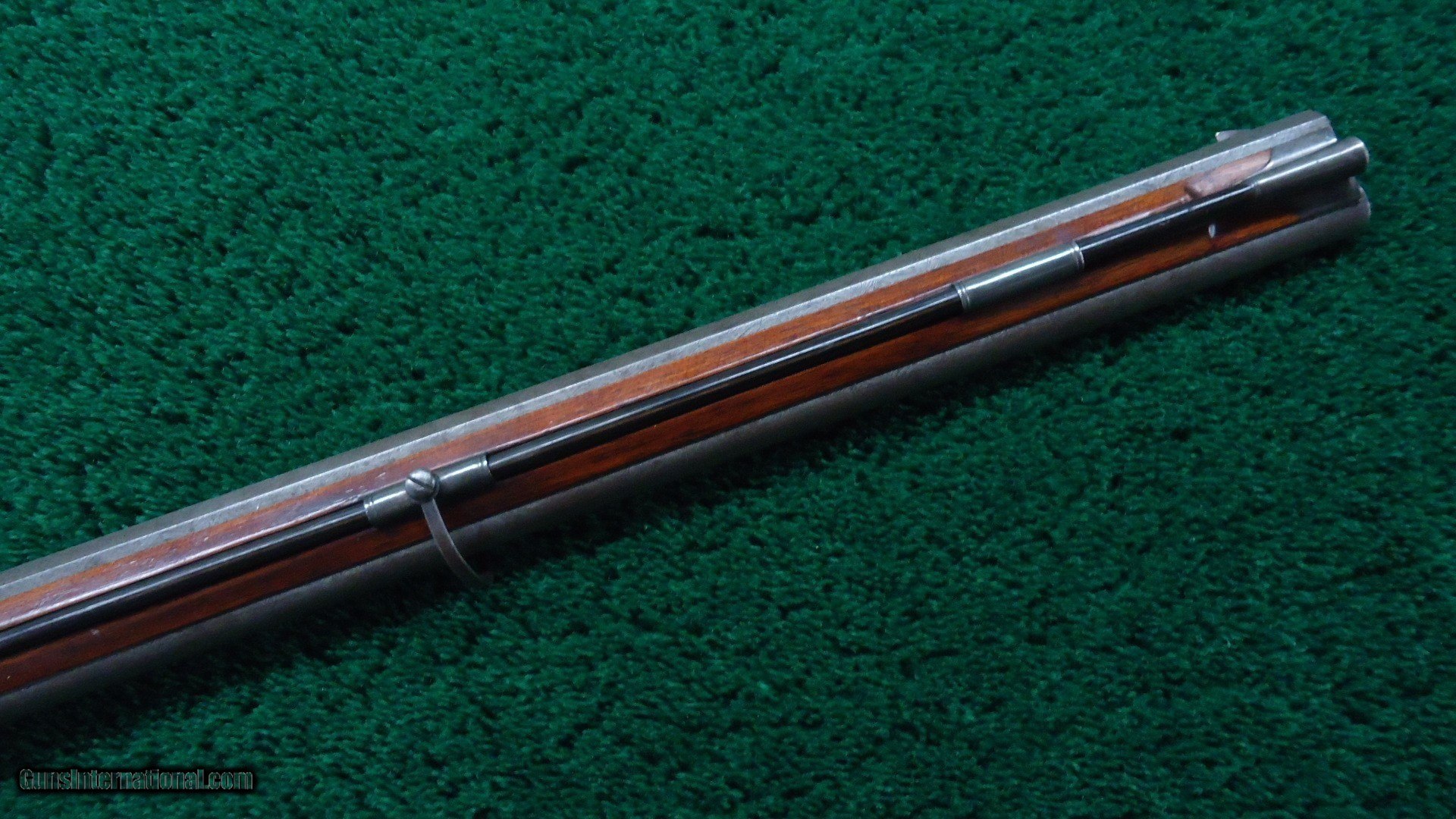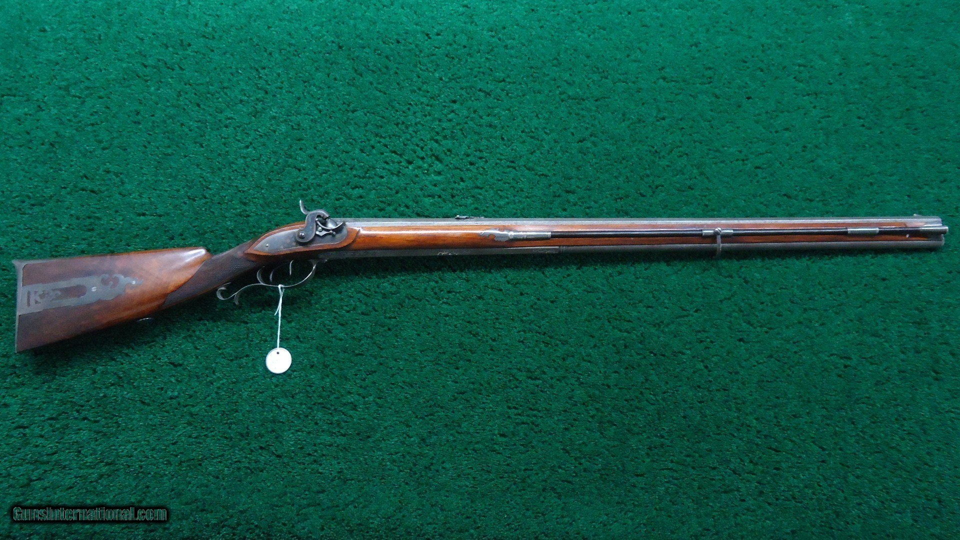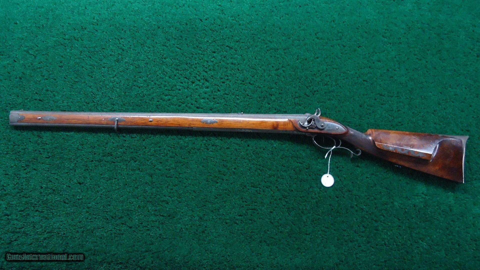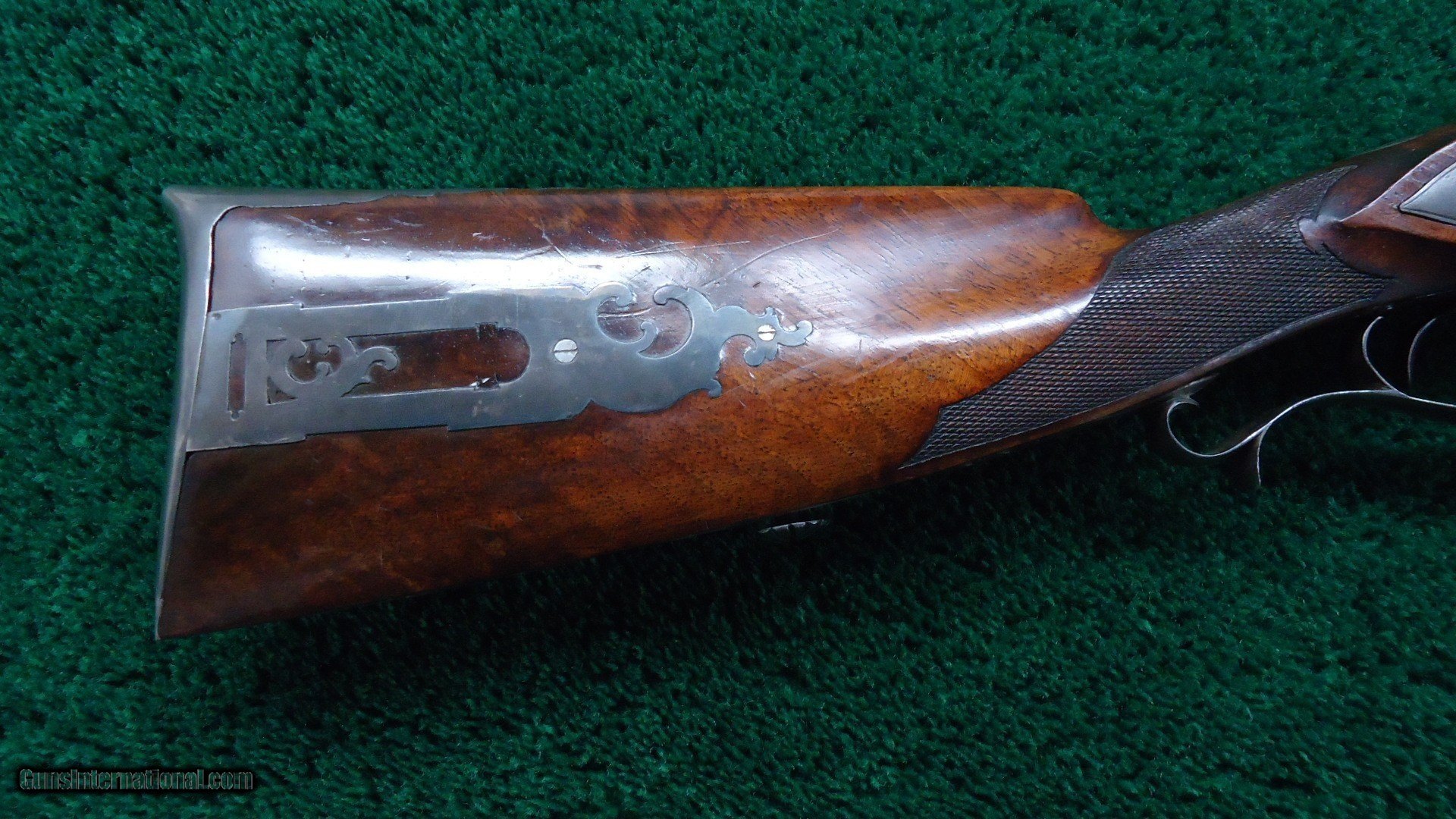 Description: FANTASTIC SILVER MOUNTED PERCUSSION COMBINATION GUN BY KUCHENREUTER PRICE REDUCED Description: This gun has a couple dozen silver inlays. Trigger guard is silver as is the buttplate. Both upper and lower barrels have silver inlays as well as the name "Kuchenreuter". Bores are 52 caliber rifle over 58 smoothbore. 30 inch Rifle barrel is full octagon and shotgun barrel is half octagon. Sights include silver blade front sight and flat top rear sight. Lock plates are super imposed over each other. Condition is great overall. Hammers have most all original case colors. Wood is excellent with most original varnish and sharp checkering. This is a very fancy ornate gun with a royal crown on the top of the wrist. You don't find craftsmen like this anymore. Just a fantastic gun! PRICE REDUCED!!!! SOLD |