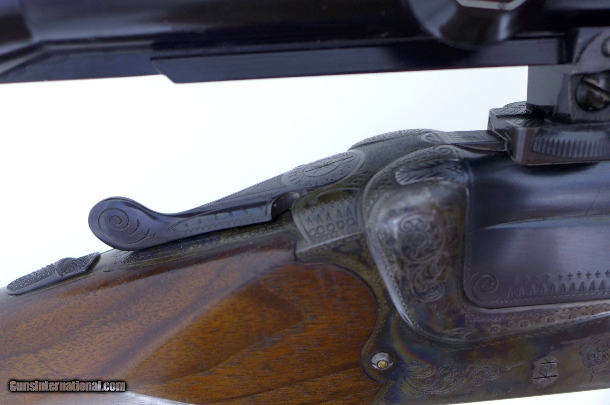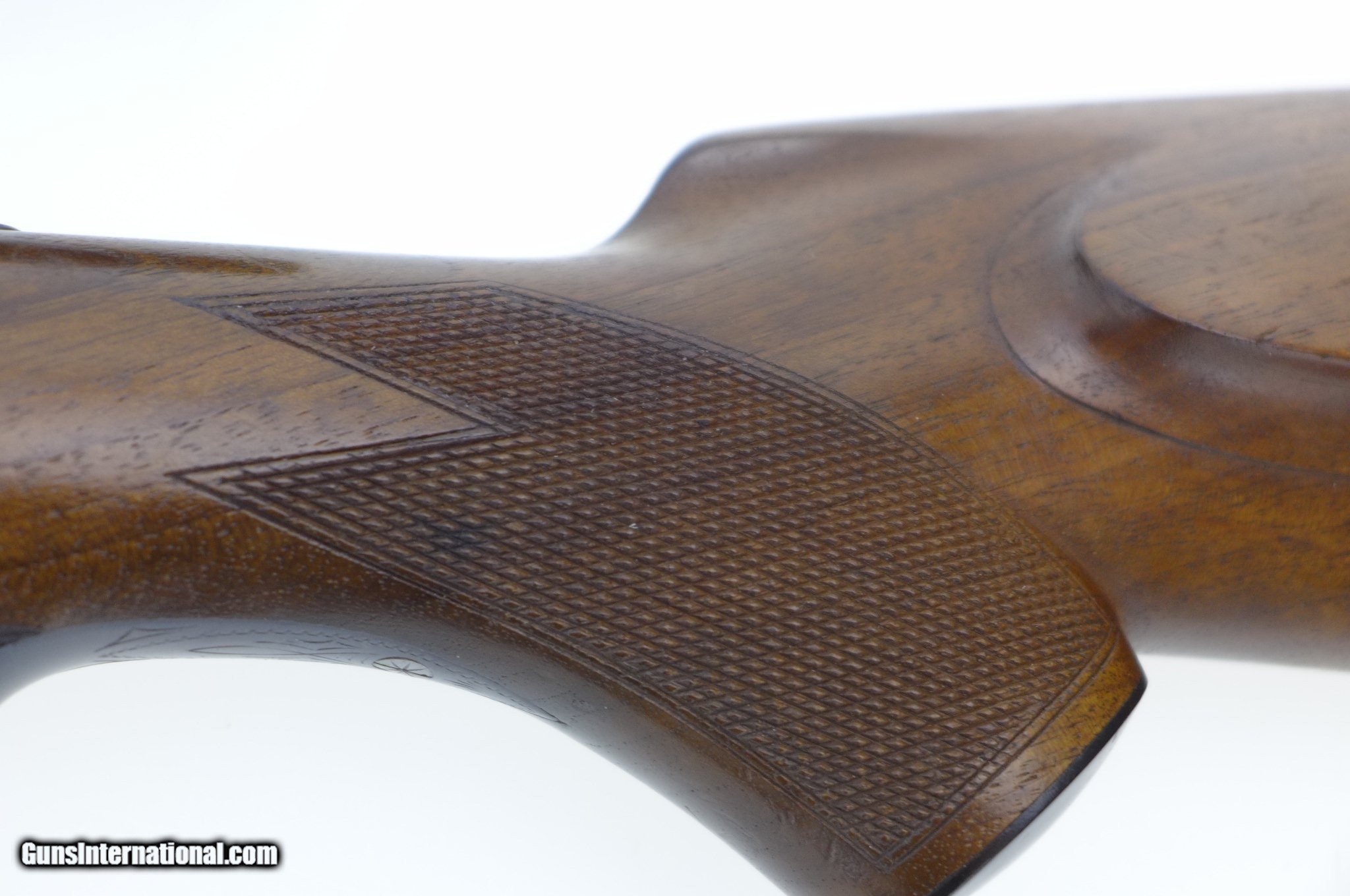 Description: AUGUSTUS FINE ANTIQUITIES GmbH SWITZERLAND EXCELLENT E.GERMAN ALBER WILHELM WOLF O/U COMBINATION GUN, DATED JANUARY 1972 ! MIRROR BRIGHT 12GA 70MM SHOTGUN BARREL ON TOP OF RIFLE BARREL CHAMBERED IN 5,6x50R MAGNUM. GOOD WEST GERMAN ZEISS DITAL Z 6x42 SCOPE ON SUHL STYLE MOUNT. DOUBLE GREENER WITH EXTRACTORS. NICE WALNUT STOCK WITH CRISP CHEQUERING AND ONLY FEW HANDLING MARKS. CASE HARDENED RECEIVER WITH FINE SCROLL ENGRAVING. ABOUT 95% + ORIGINAL FINISH. BRAIDED LEATHER SLING, BARRELS: 650MM, OAL=1090MM,LOP=370MM, WEIGHT=3.90KG. PRICELESS OLD WORLD CRAFTSMANSHIP !!!!! TOTAL COST OF SWISS EXPORT, US IMPORT, CUSTOM FEES AND US (CONTINETAL) DOMESTIC SHIPPING IS USD 495. MY US IMPORTER MMB IMPORTS LLC IS GOING TO COLLECT ALL FUNDS FOR THIS TRANSACTION. CREDIT CARDS (+ 3% charge),USPS M.O. PAYMENTS AND CASHIER'S CHECKS WELCOME! By placing buying this item you acknowledge and agree to the following: a. you have reviewed the description and photos provided; b. you have asked any and all questions PRIOR to ; c. you have used your knowledge and experience in making this buying decision d. you understand the item may be import marked and avarage import time is 8 weeks; e. you understand that the described item is being sold "as is" and that this sale is final with no returns or refunds. PLEASE NOTE: It is the responsibility of the buyer to know and abide by the Gun Laws in your State ! SOLD Manufacturer: A.W. Wolf Condition: Excellent Metal Condition: Excellent Wood Condition: Excellent Bore Condition: EXCELLENT |