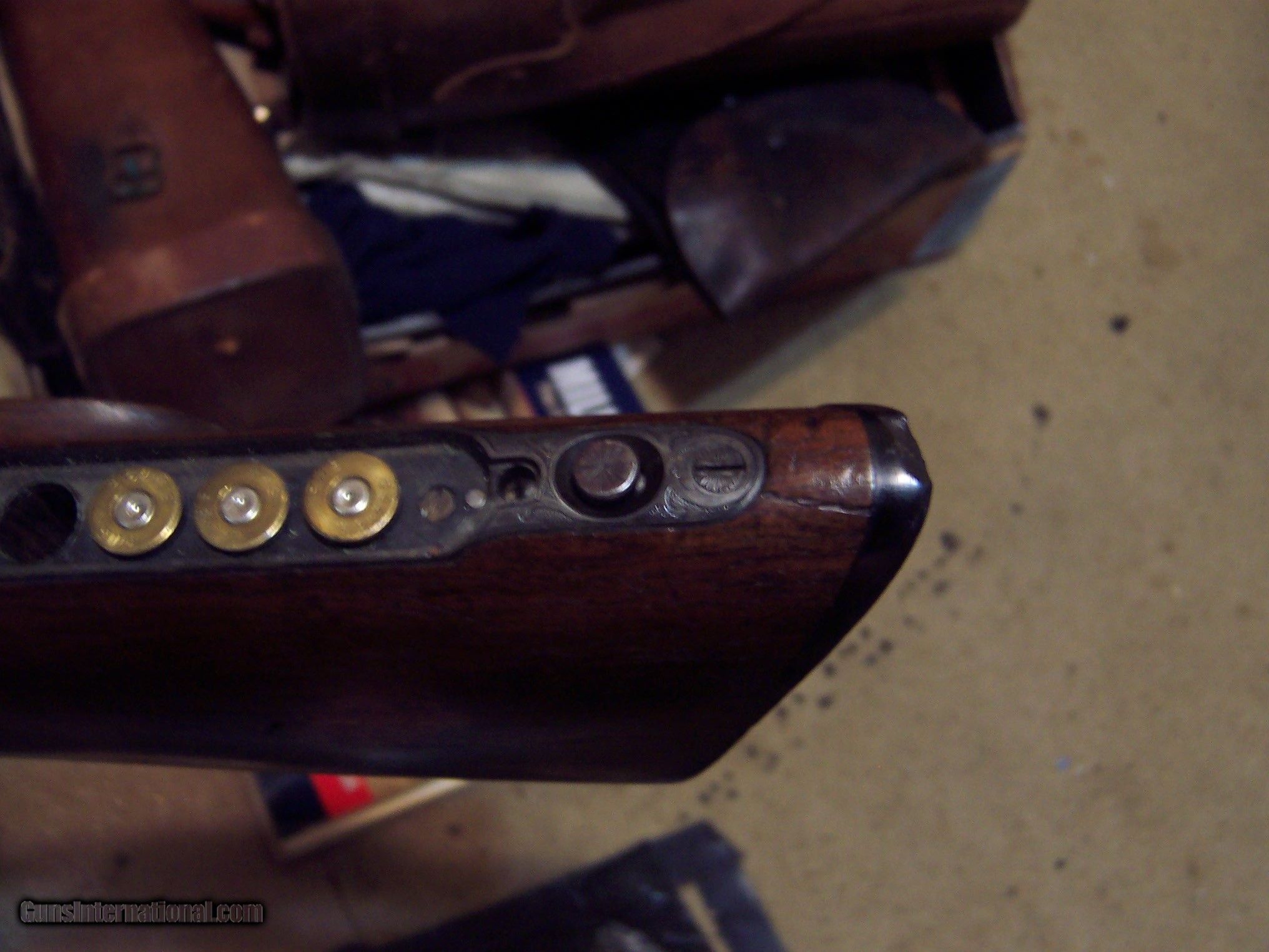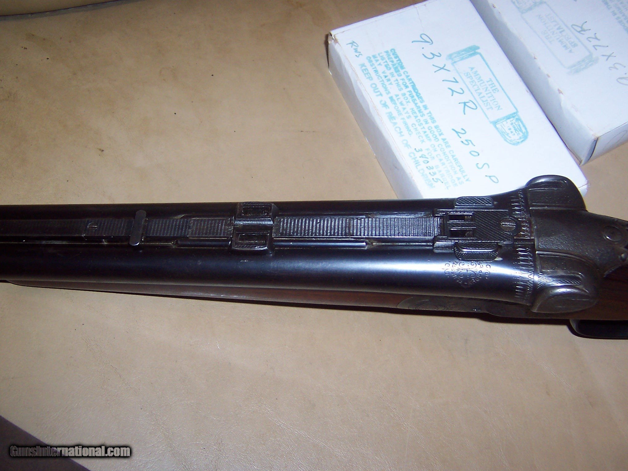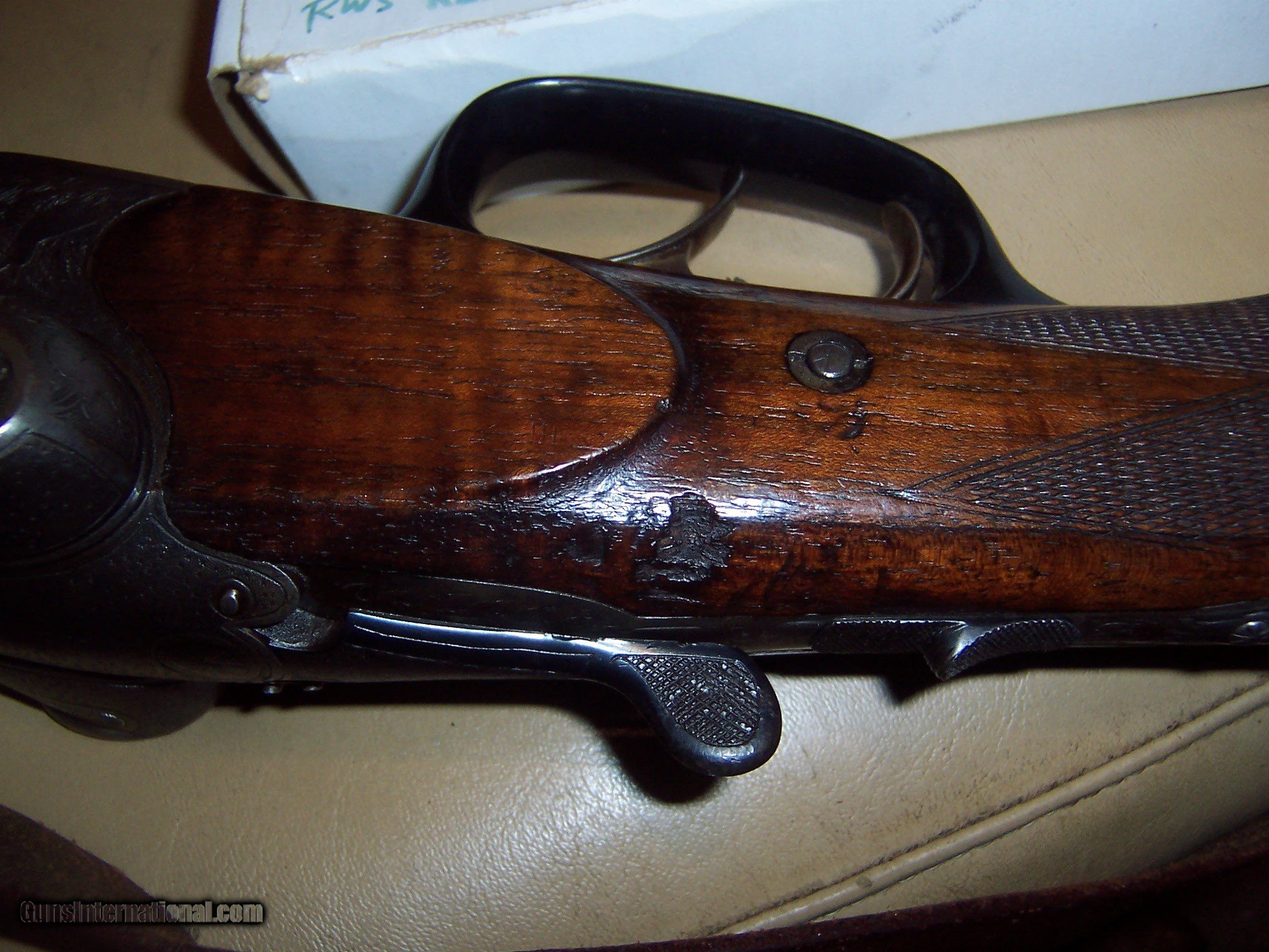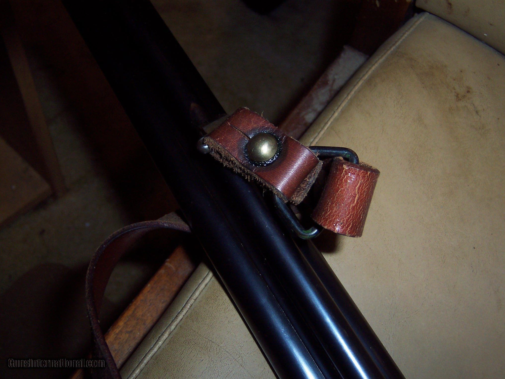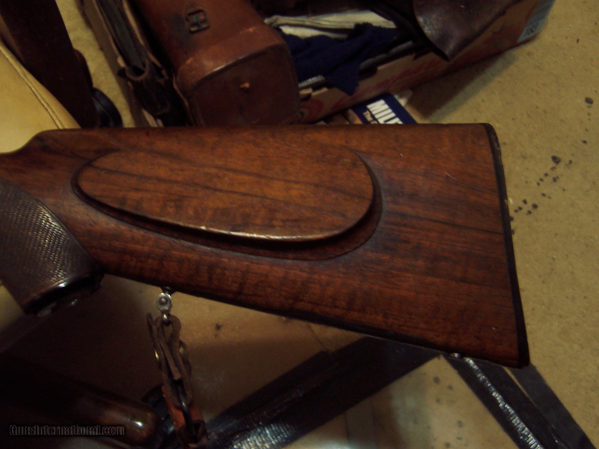 Description: nice drilling smal crack in toe and chip to butt plate see picture // 2 boxes 40 rounds of ammo / bores very nice // locks up tight as new // every thing works // remote flip up sight / cocking indicators / gouge in stock by tang // horn trigger guard // snap caps / maker name on barrel rib O.HARTENSTEIN SCHLEIZ /// original barrel blue about 95% receiver blue 95% ///scope mounts on barrel // / nice gun should make an excellent hunting weaspon // 28 inch barrels // crown u proofs $68 sh // made before 1940 // factory swivels & sling The surname Hartenstein was first found in Westphalia, where the name emerged in mediaeval times as one of the notable families in the western region. From the 13th century onwards the surname was identified with the great social and economic evolution which made this territory a landmark contributor to the development of the nation. SOLD Curio/Relic: Yes Manufacturer: german Model: drilling |