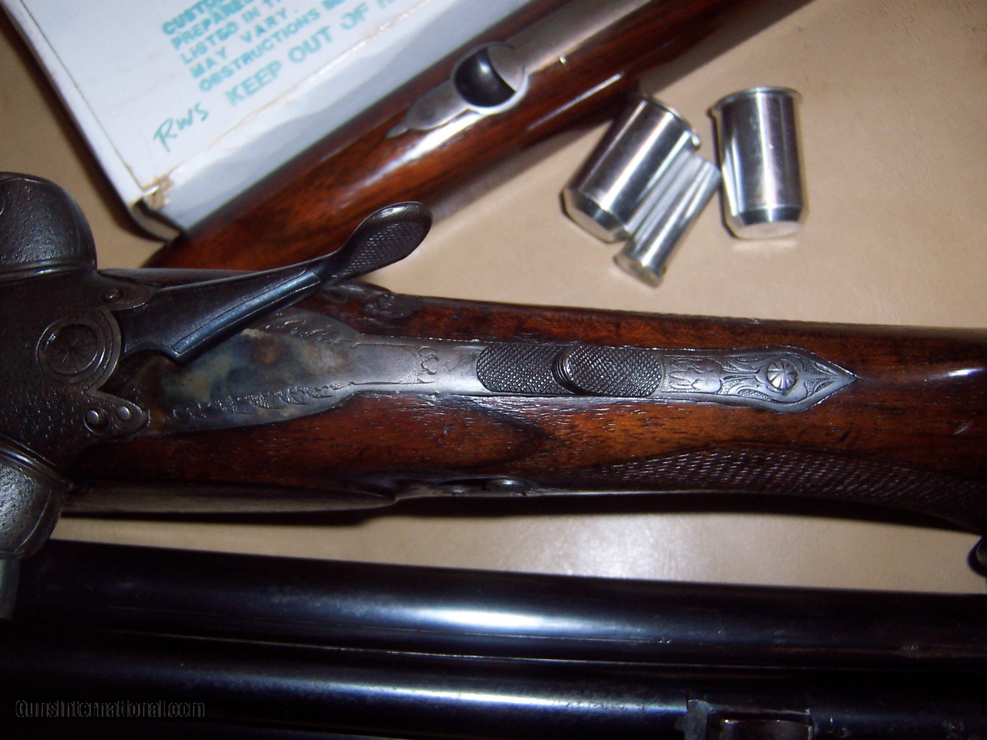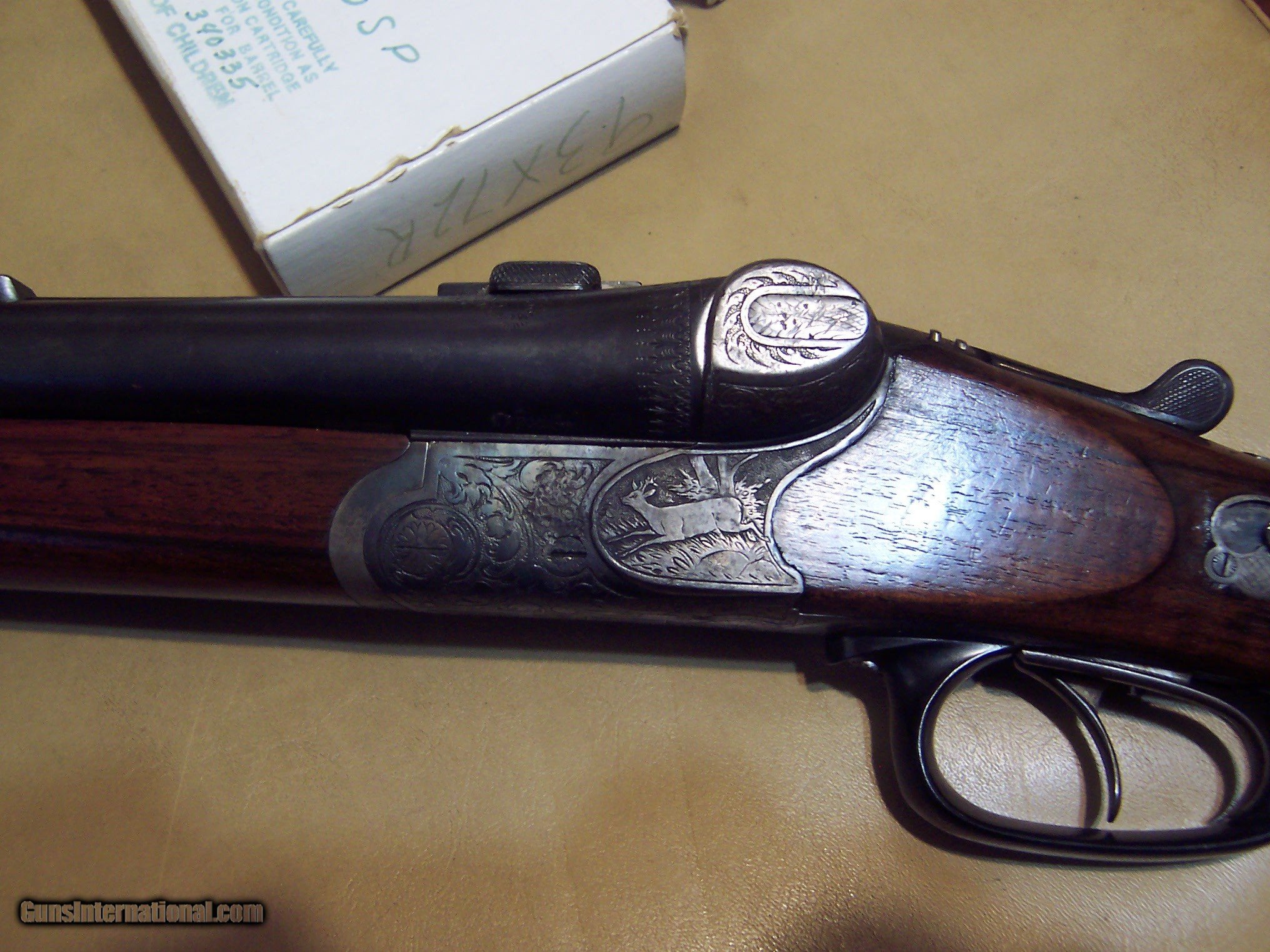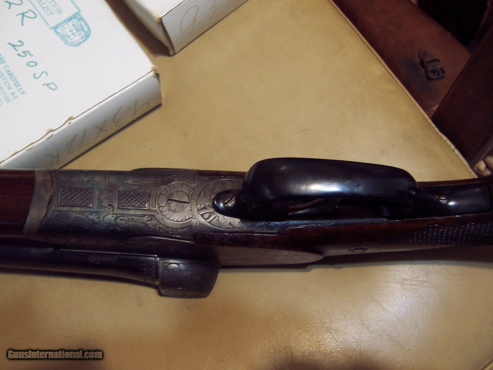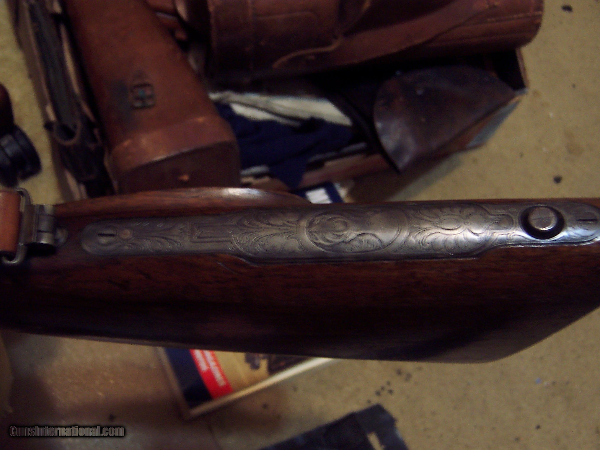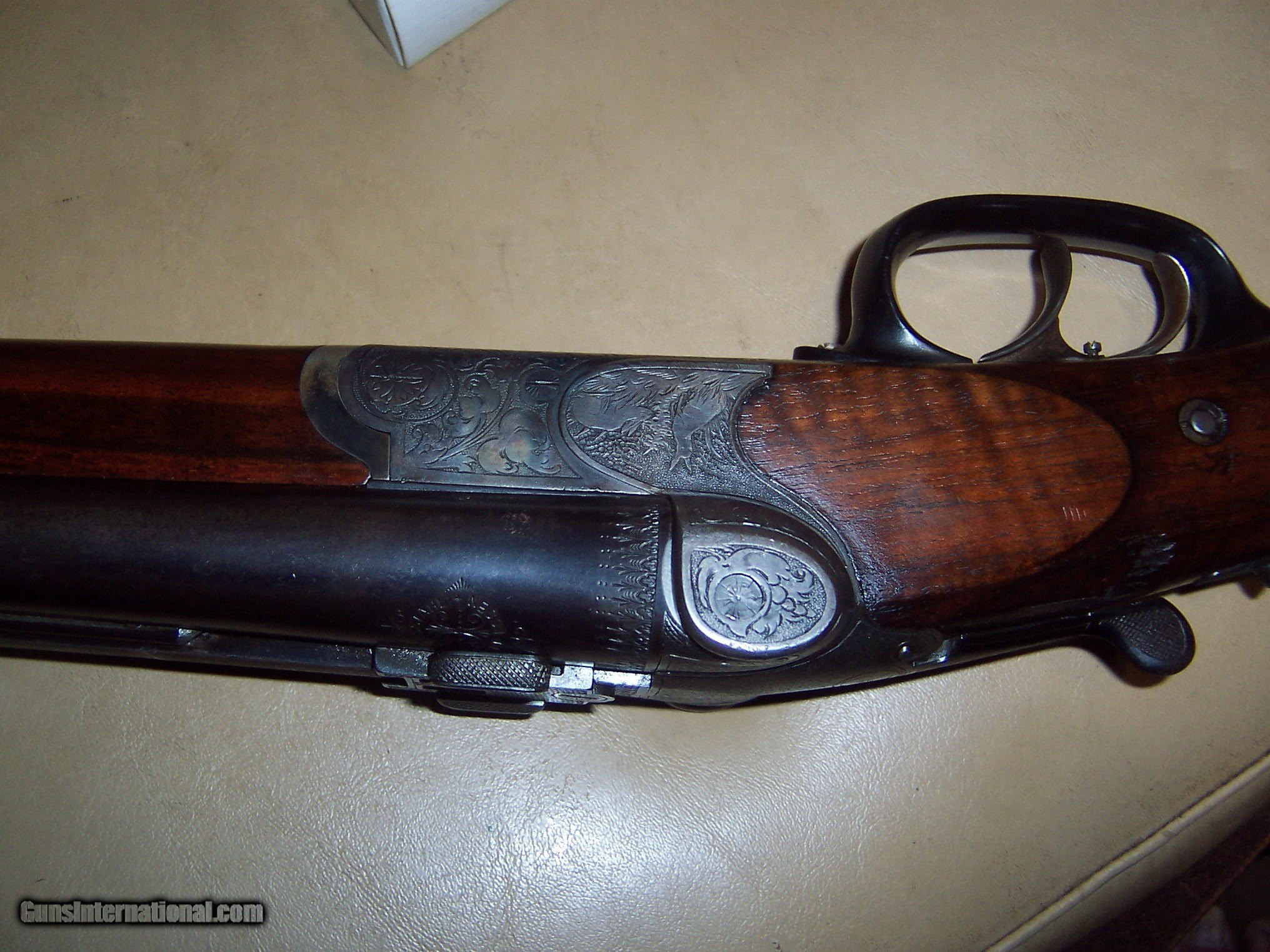 Description: nice drilling smal crack in toe and chip to butt plate see picture // 2 boxes 40 rounds of ammo / bores very nice // locks up tight as new // every thing works // remote flip up sight / cocking indicators / gouge in stock by tang // horn trigger guard // snap caps / maker name on barrel rib O.HARTENSTEIN SCHLEIZ /// original barrel blue about 95% receiver blue 95% ///scope mounts on barrel // / nice gun should make an excellent hunting weaspon // 28 inch barrels // crown u proofs $68 sh // made before 1940 // factory swivels & sling The surname Hartenstein was first found in Westphalia, where the name emerged in mediaeval times as one of the notable families in the western region. From the 13th century onwards the surname was identified with the great social and economic evolution which made this territory a landmark contributor to the development of the nation. SOLD Curio/Relic: Yes Manufacturer: german Model: drilling |