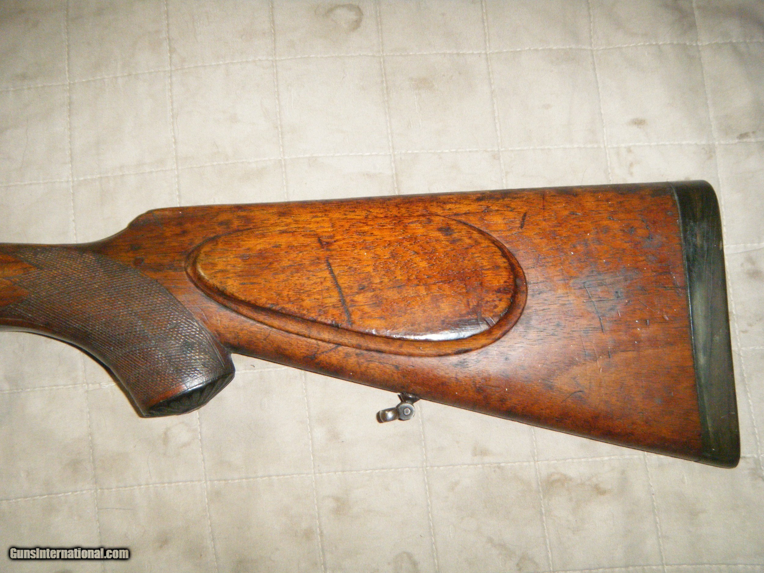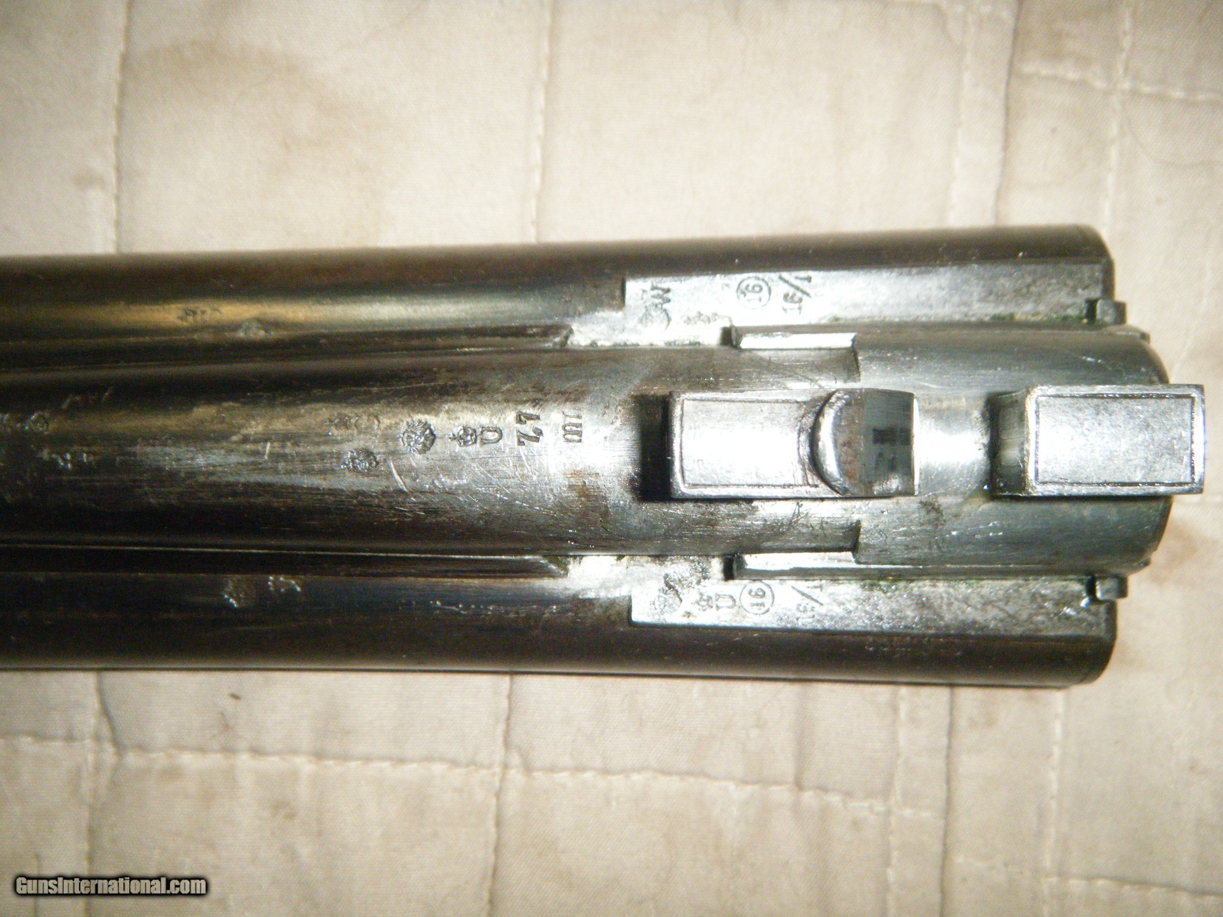 Description: There is no identity as to the maker on the gun and I assume it was a guild gun. Blue is thinning and the front site has been ground to a bead. The wood shows wear with expected dings and scratches but is sound without cracks or breaks. The action is excellent with the top lever selecting the rifle option and an under lever to cock and open . The bores are all very good with strong rifling in what I determine to be 7.7mm (so marked) by 60mm. rifle. I have not shot the shotguns but they do chamber a full sized 16ga shelland are marked "Nitro" for smokeless powder. I have shot the rifle with modified 32 x40 cases The shells were 1/4" short and despite the strong rifling, the grouping was poor. I believe cases could be provided by RMC in Co. and I'm including a cast of the chamber to the start of the lands to facilitate that option. C&R okay. $50 shipping. SOLD Curio/Relic: Yes |
