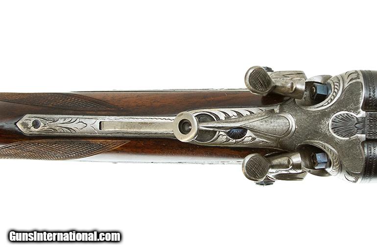 Description: MADE 1928 UNDER LEVER TOP LEVER COCK 26" BARREL AND HIDDEN FLIP UP TANG SIGHT WITH FULL LENGTH RIB AND A HENSHOLDT 4X SCOPE IN QD MOUNTS DOUBLE SET TRIGGER EXTRACTORS SPLINTER FOREARM PISTOL GRIP EXCELLENT ORIGINAL CONDITION WITH LIGHT WEAR 7LBS 6 OZ X 13 1/4 LOP SOLD |
